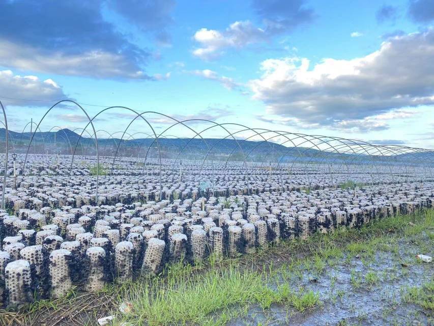 木耳菌包:100%用柞树、桦树等阔叶锯沫为原料生产,将锯末灌成菌袋,在菌袋上扎眼控制木耳生长的大小,让其均匀钻出。这种小朵秋耳,要求在菌袋上扎很小的孔培养,生长到味道最浓郁时手工摘下,此时采摘要比任其自然长成再摘下,产量下降1倍,但味道和口感却相反成倍增加。