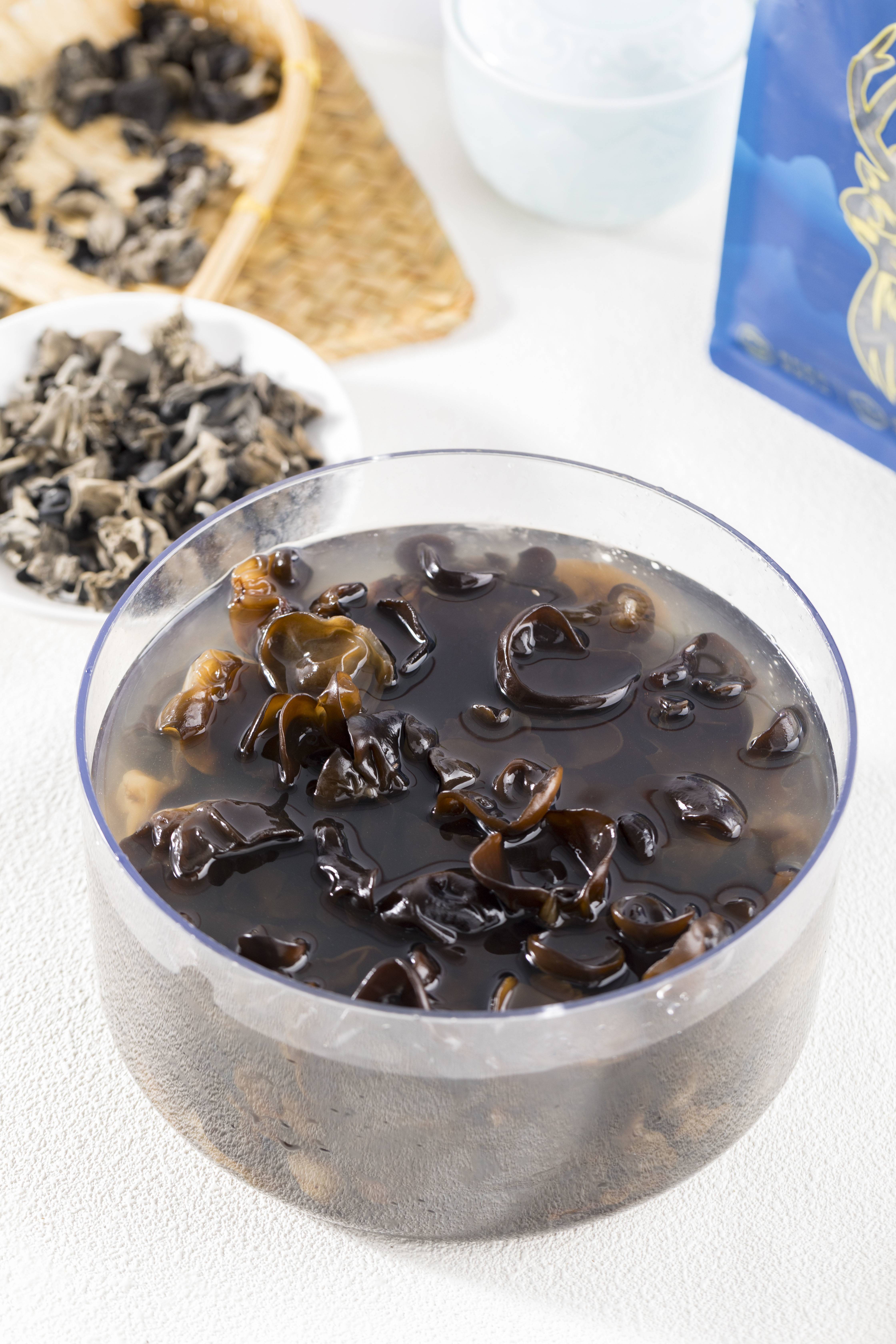 1.正确泡发木耳:咱们的木耳由于泡发率高、胶质层较厚,完全泡发需要冷水泡6-8小时,才能恢复最佳口感。切忌用热水泡,容易烫烂,吃起来一点都不清脆。天气热时,建议换1-2次水,或放到盆、碗里用保鲜膜盖好,放入冰箱冷藏。