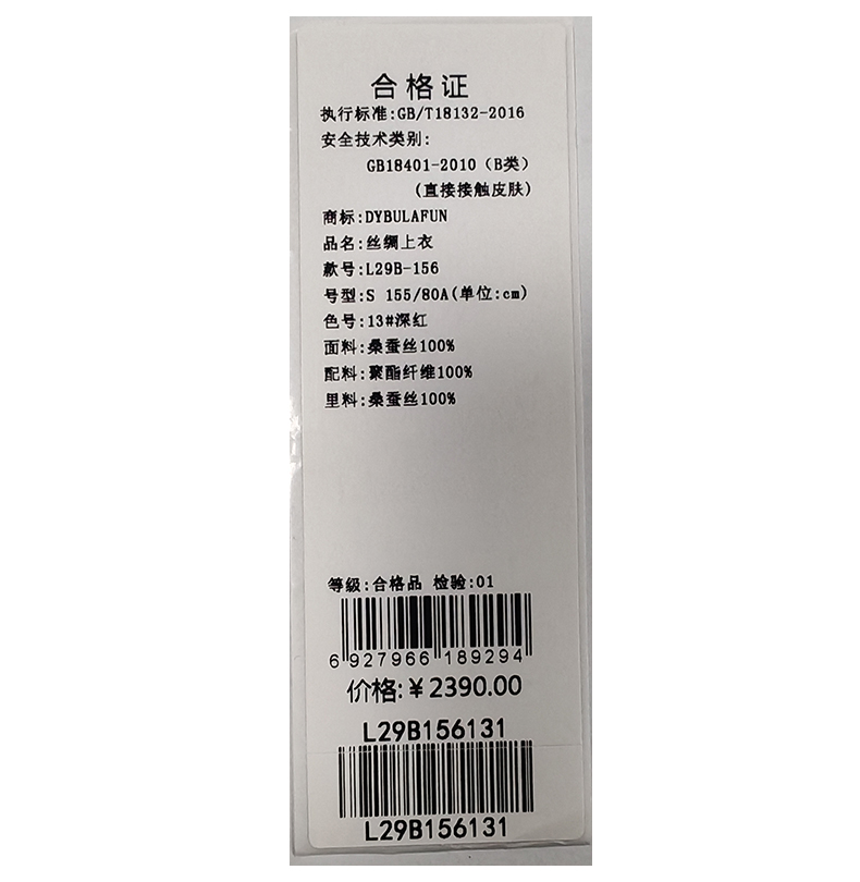戴布拉芬丝绸上衣L29B156