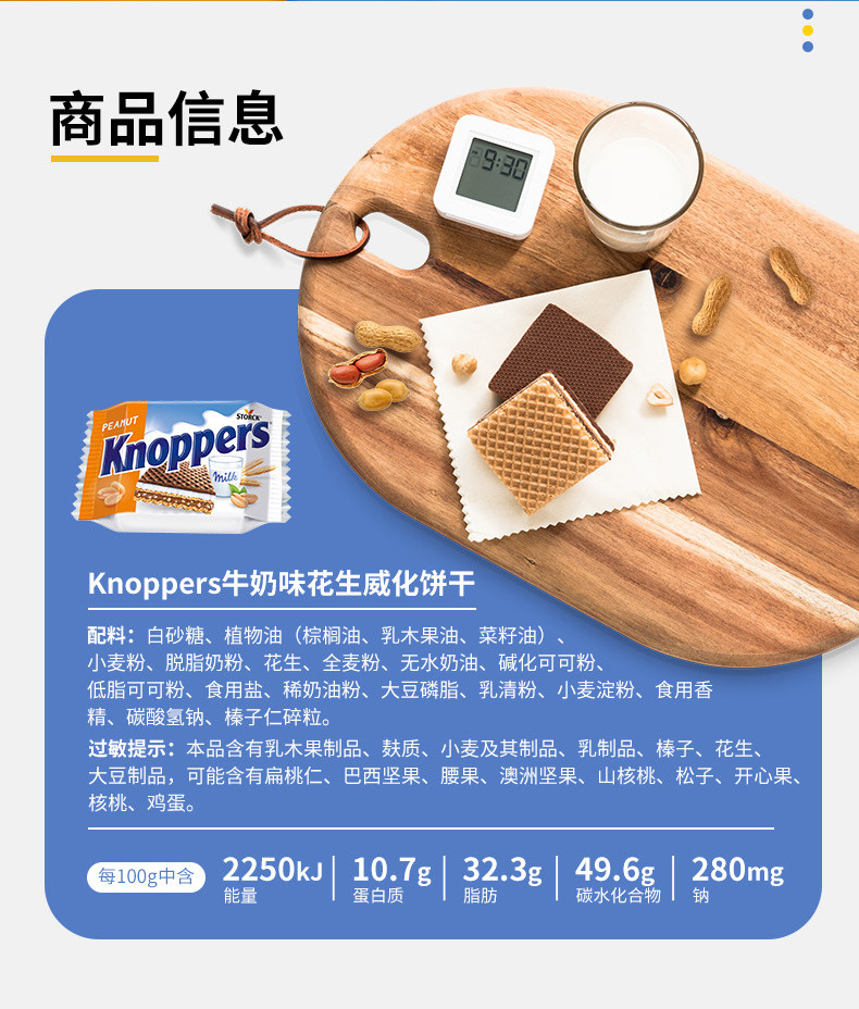健达五层牛奶味花生威化饼干250g
