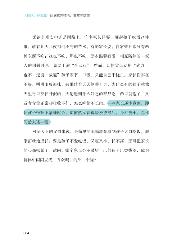 【临床营养学的落地普及】本书涉及儿童身高体重发育、蛋白质-能量营养不良症状及应对预防方法、儿童营养结构等内容,将晦涩的医学道理变得通俗易学,让每个父母都能成为孩子的专属营养师。