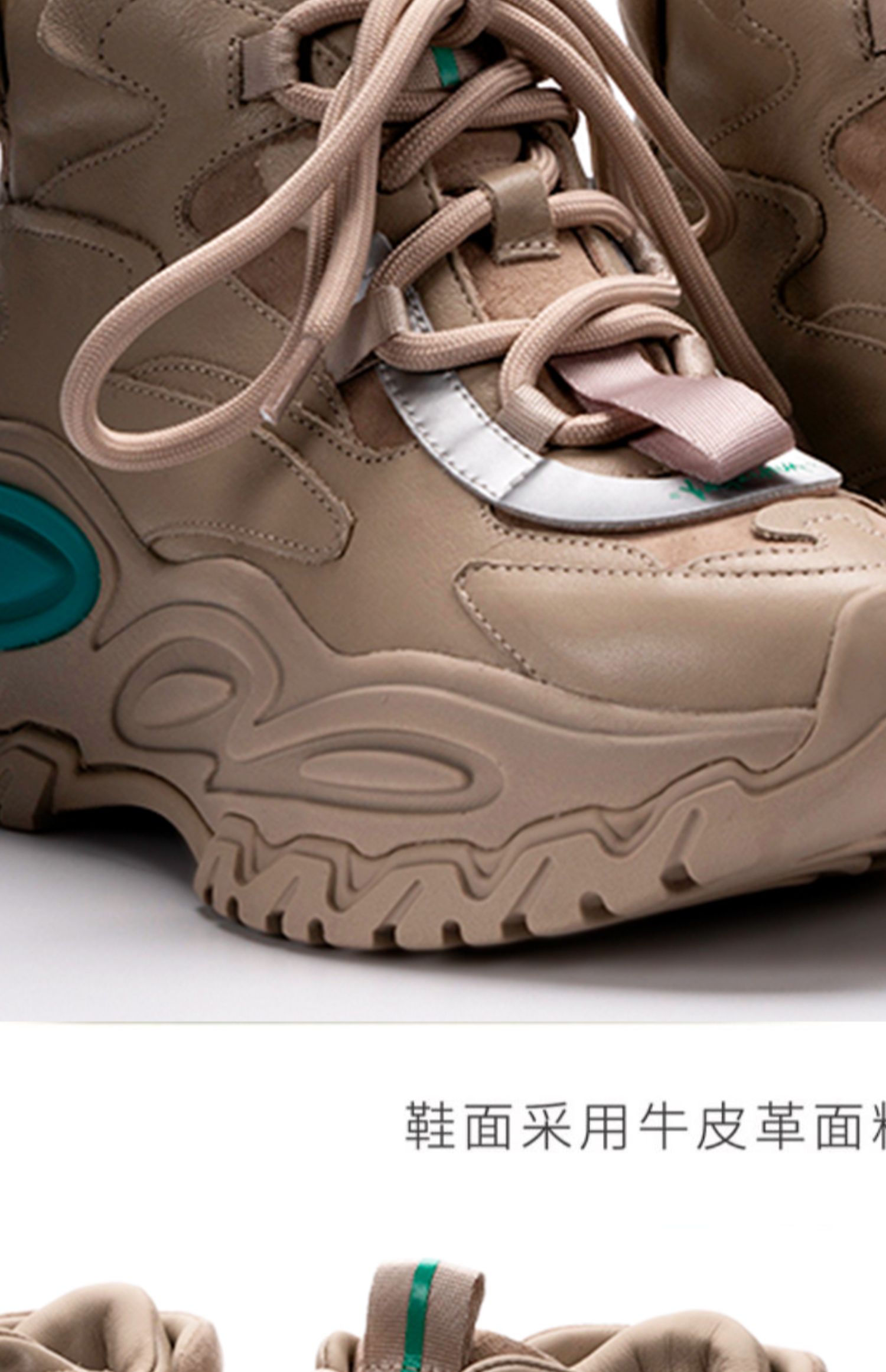 nekomomo2022年秋冬新款商场同款头层牛皮系带厚底高帮老爹鞋女