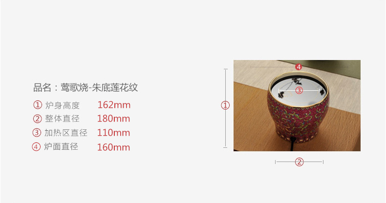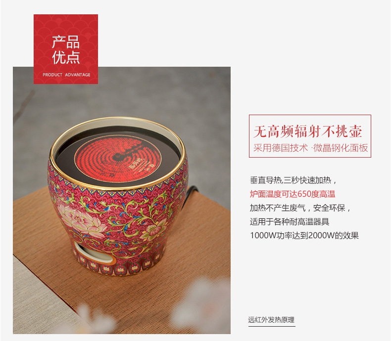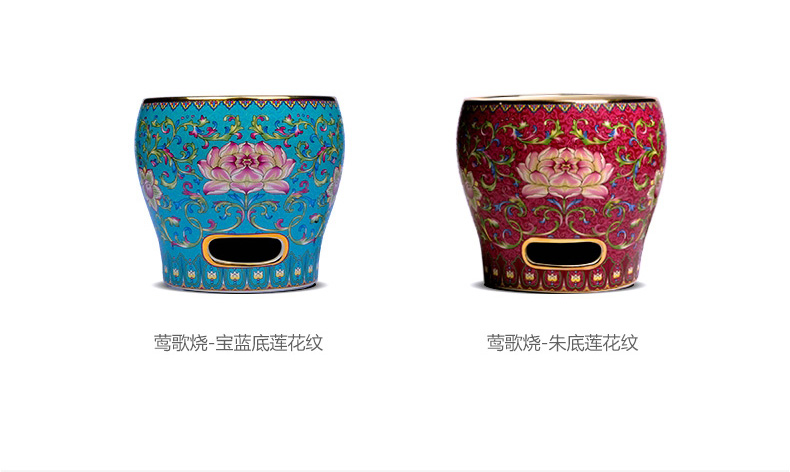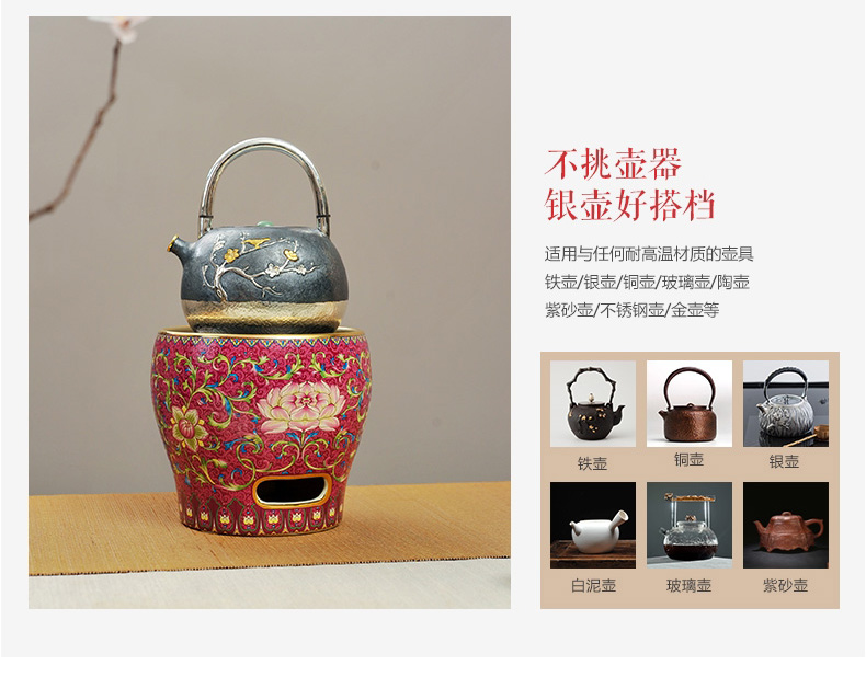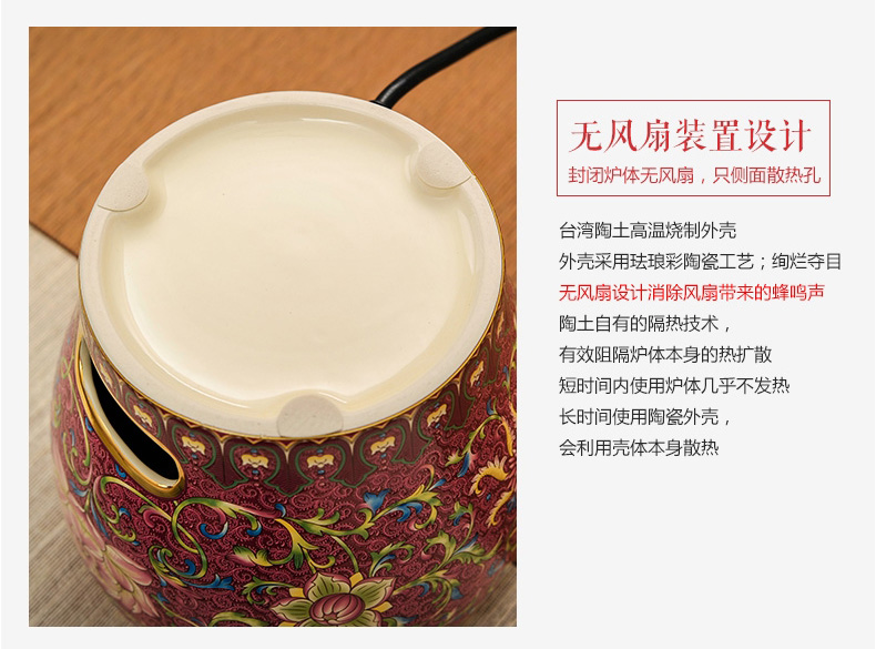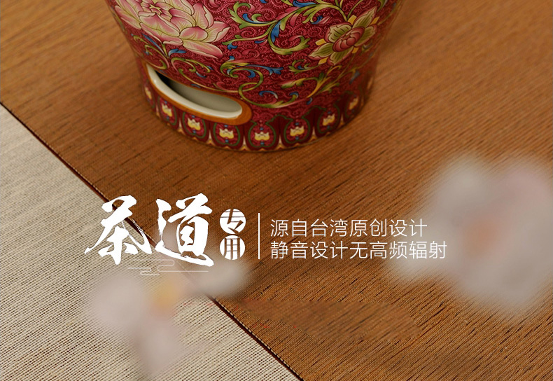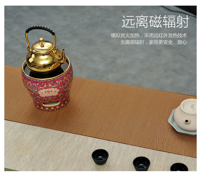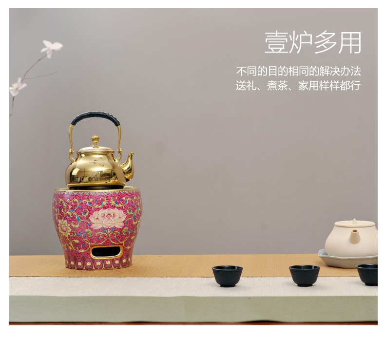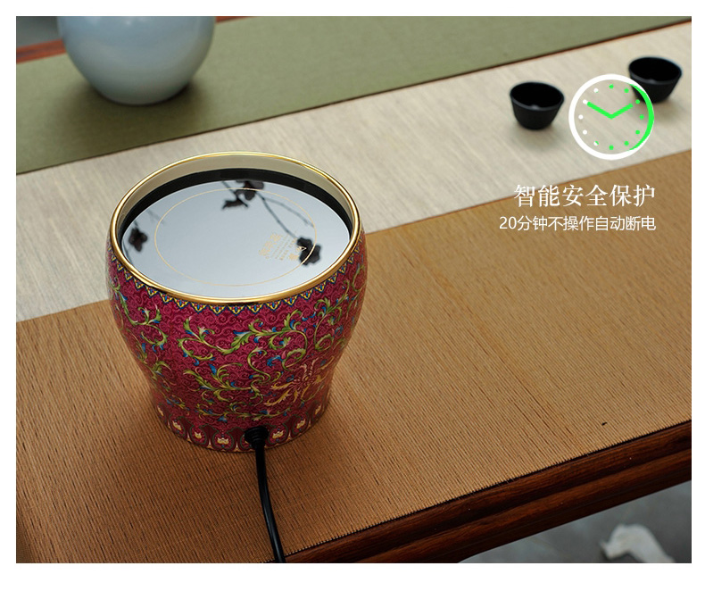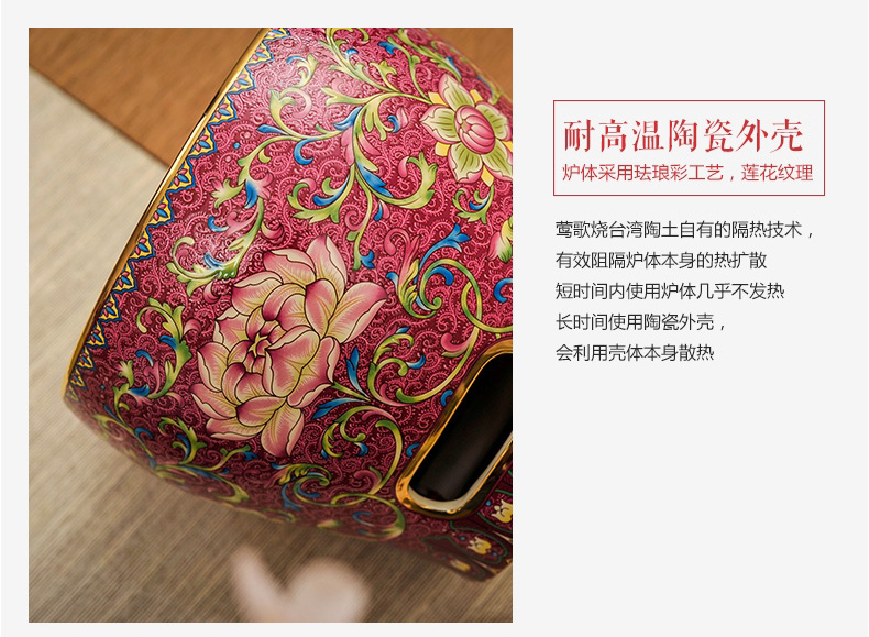 莺歌烧珐琅彩大宝蓝底 莲花纹电陶炉煮茶家用茶炉 铁壶银壶泡茶煮茶器 新品珐琅彩风炉