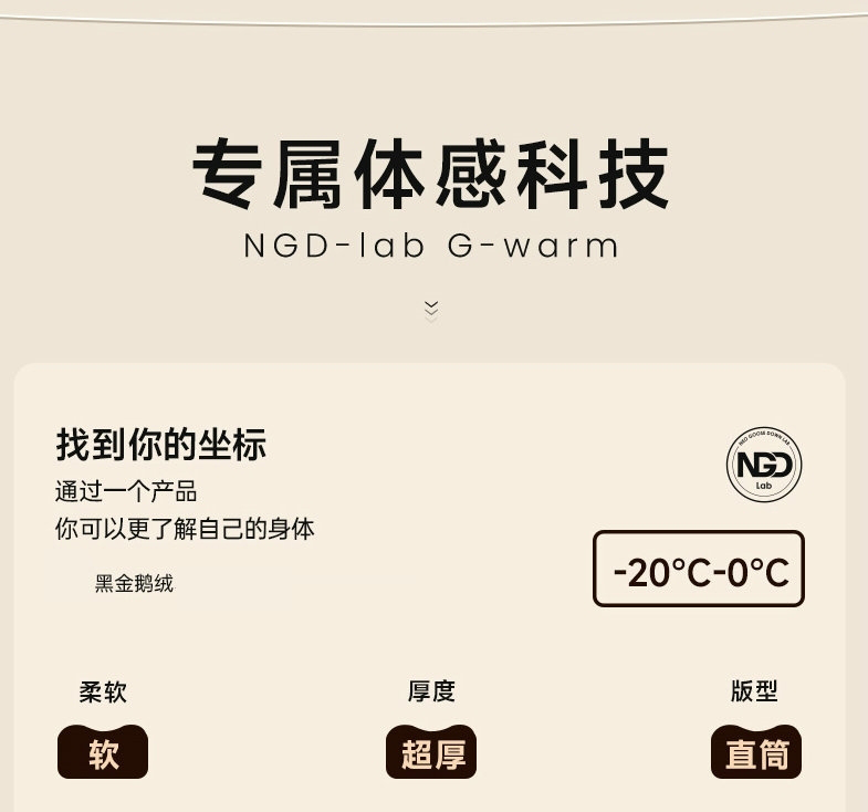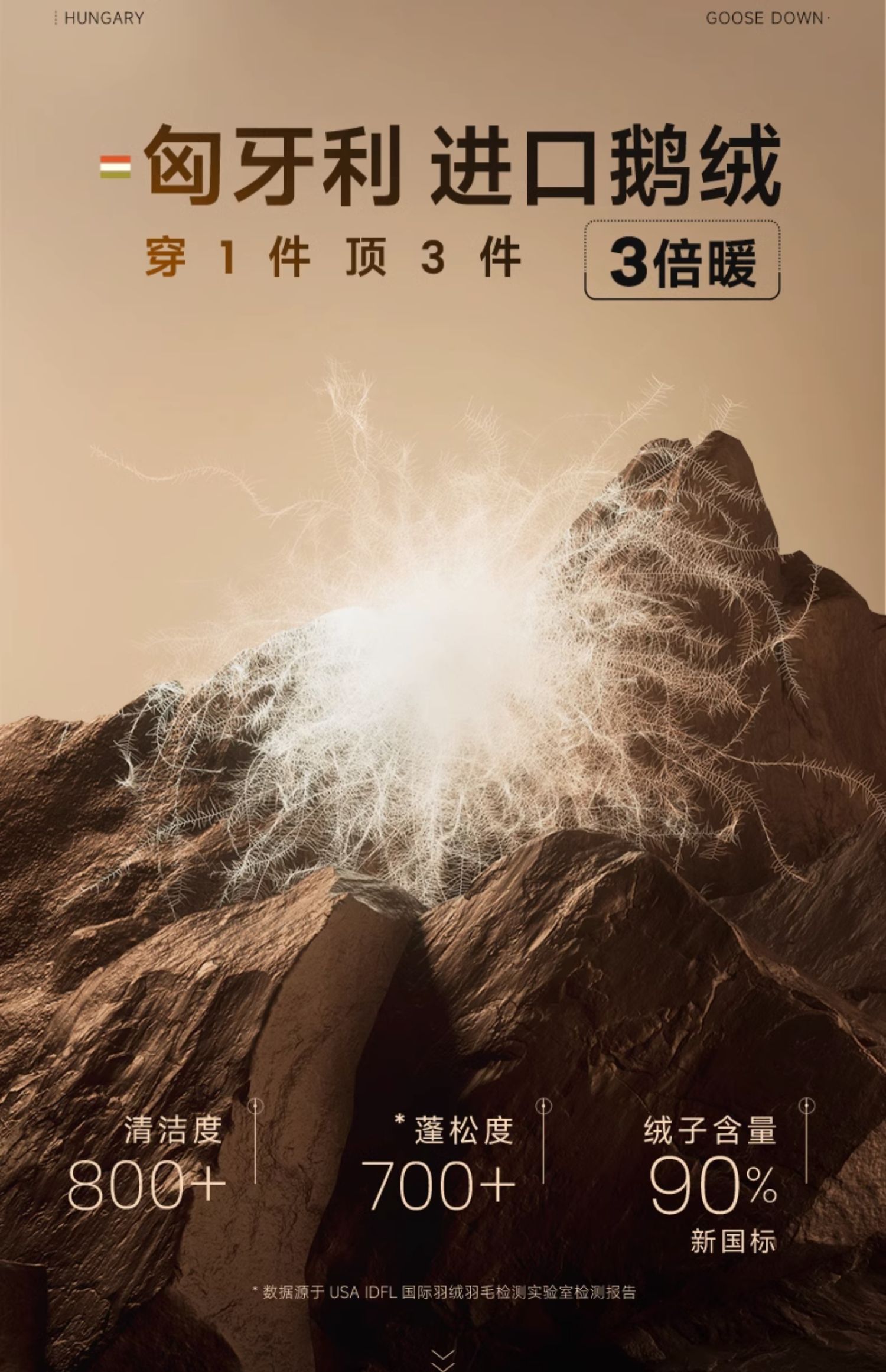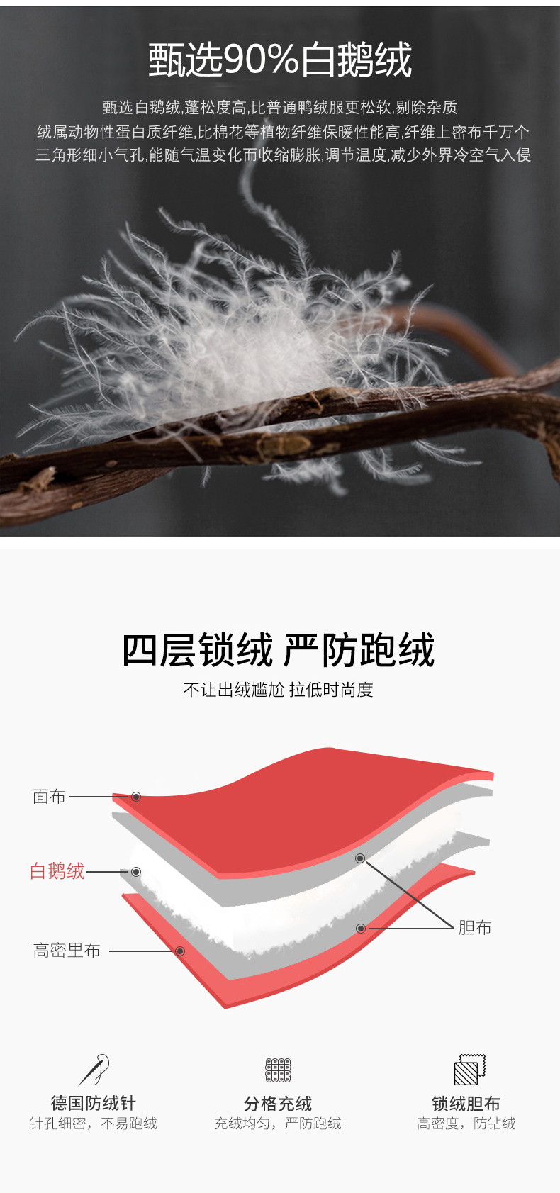特别甄选了特级90%天然鹅绒,用于羽绒的填充