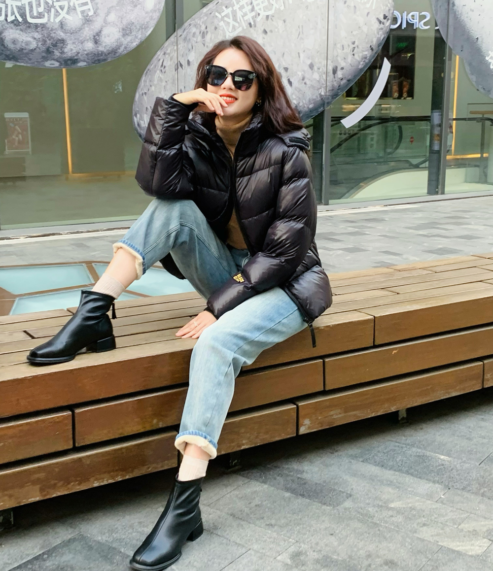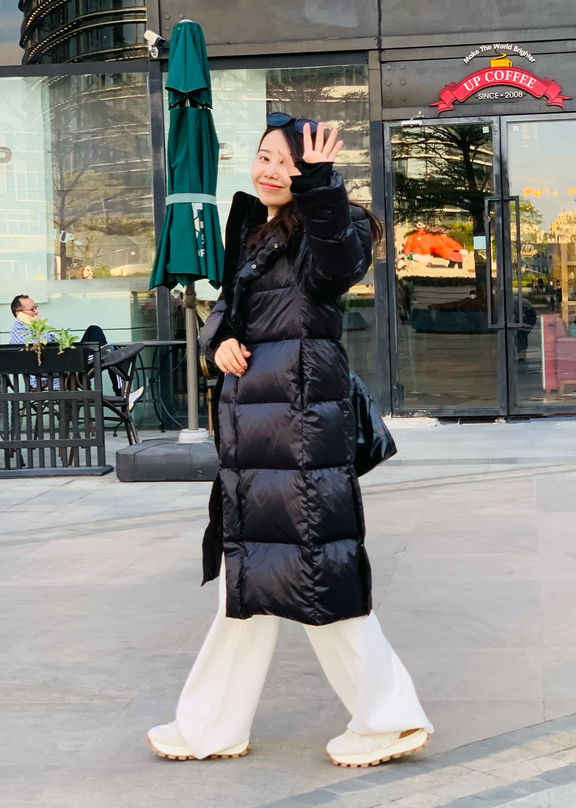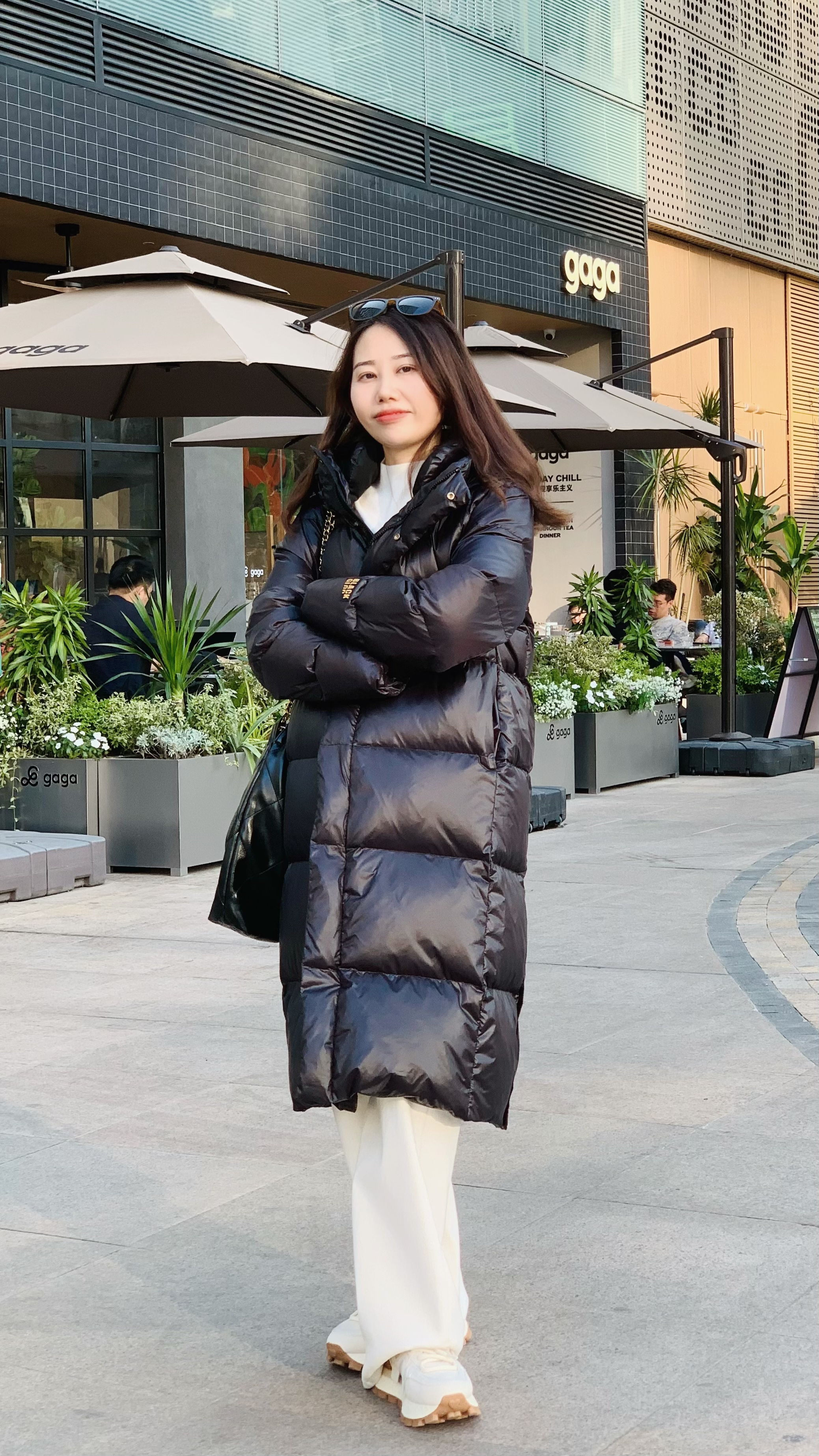 黑金羽绒服在10月份就让同事穿去长白山体验
