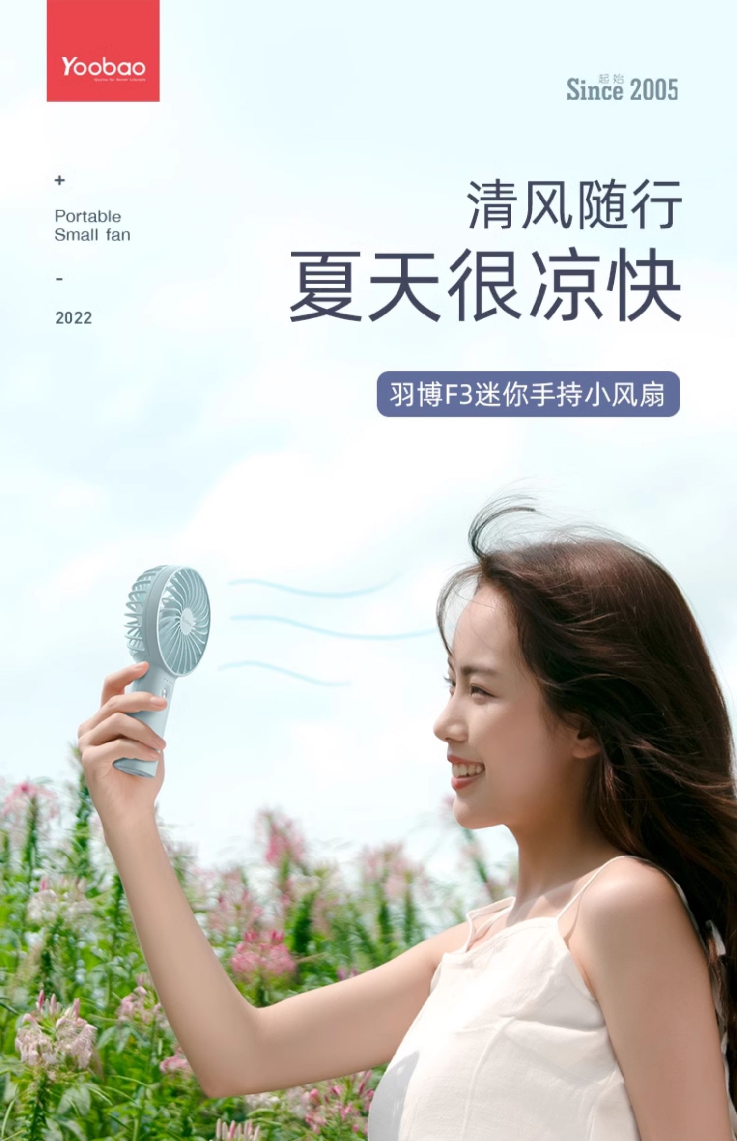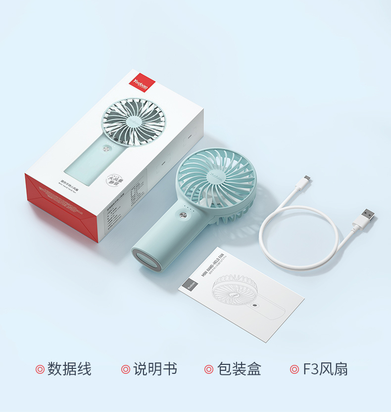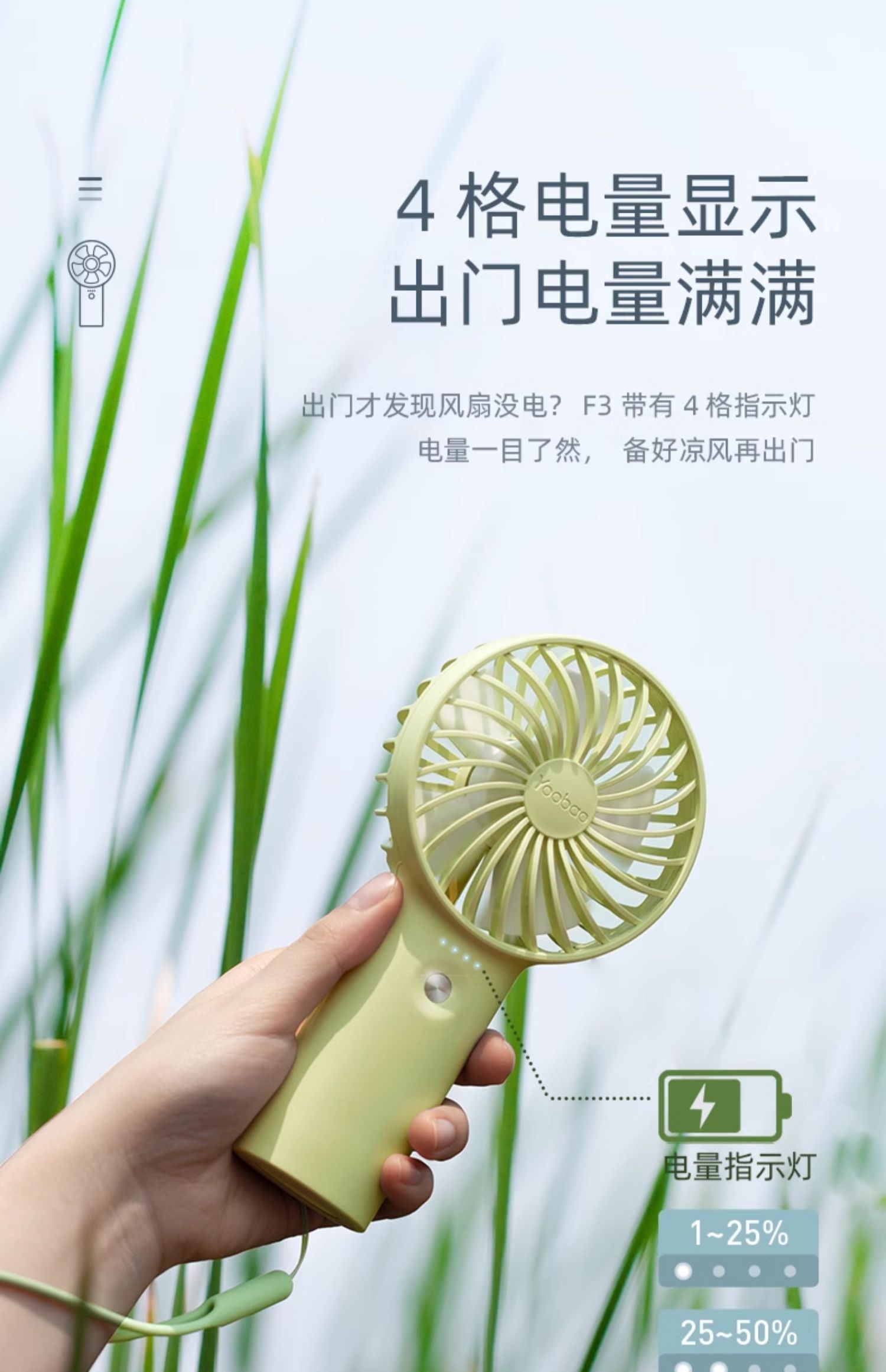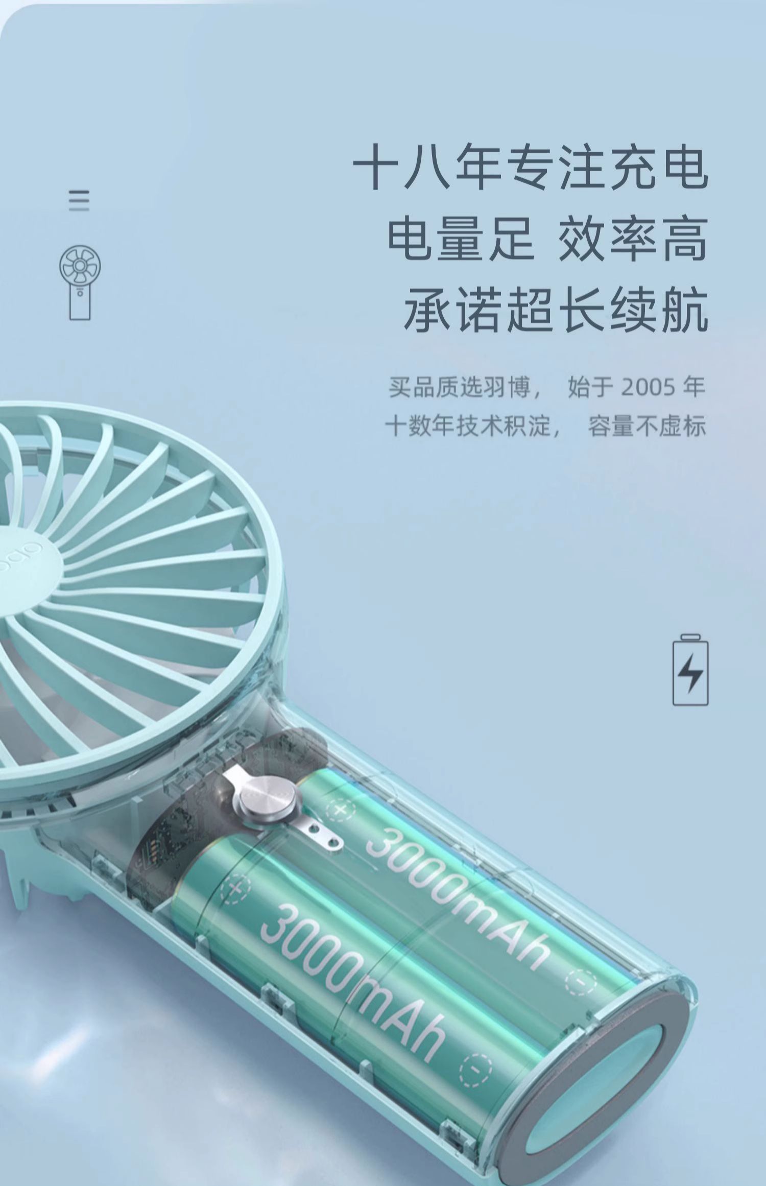 羽博F3小风扇便携式学生电风扇usb充电迷你宿舍静音办公室可充电