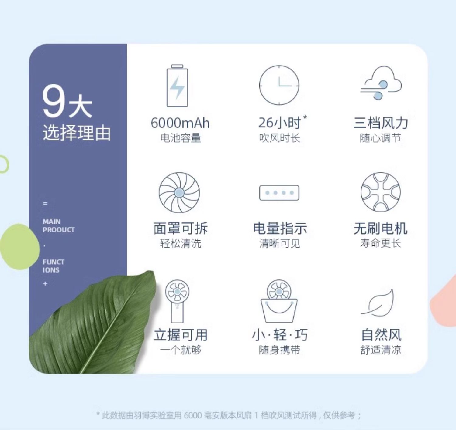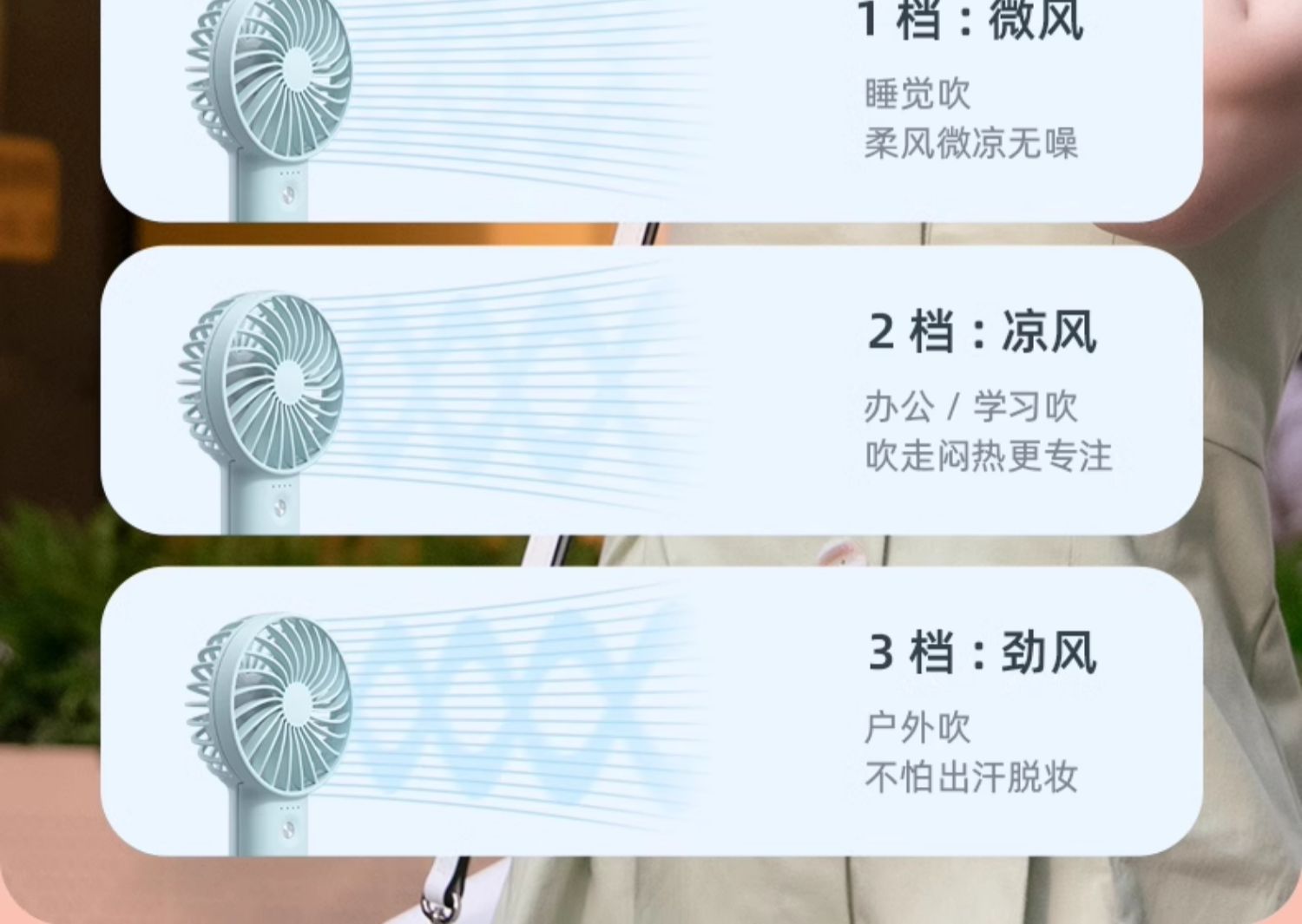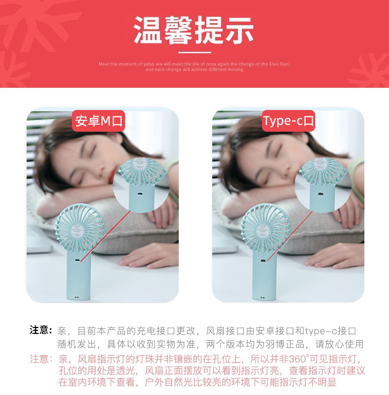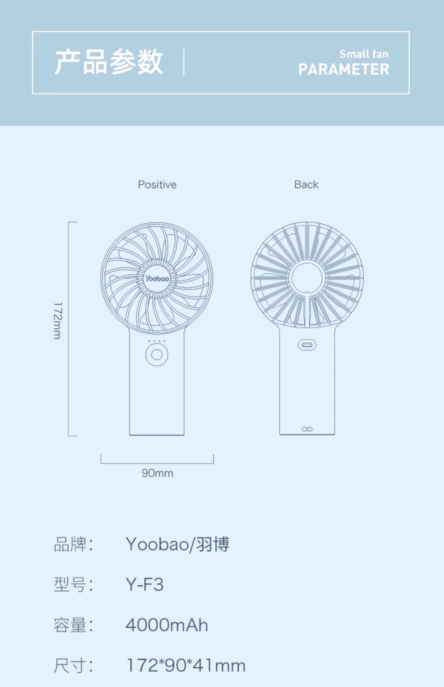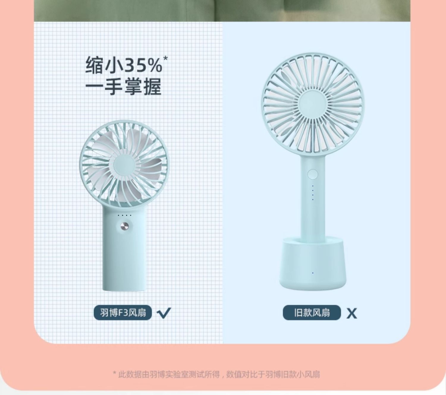 羽博F3小风扇便携式学生电风扇usb充电迷你宿舍静音办公室可充电