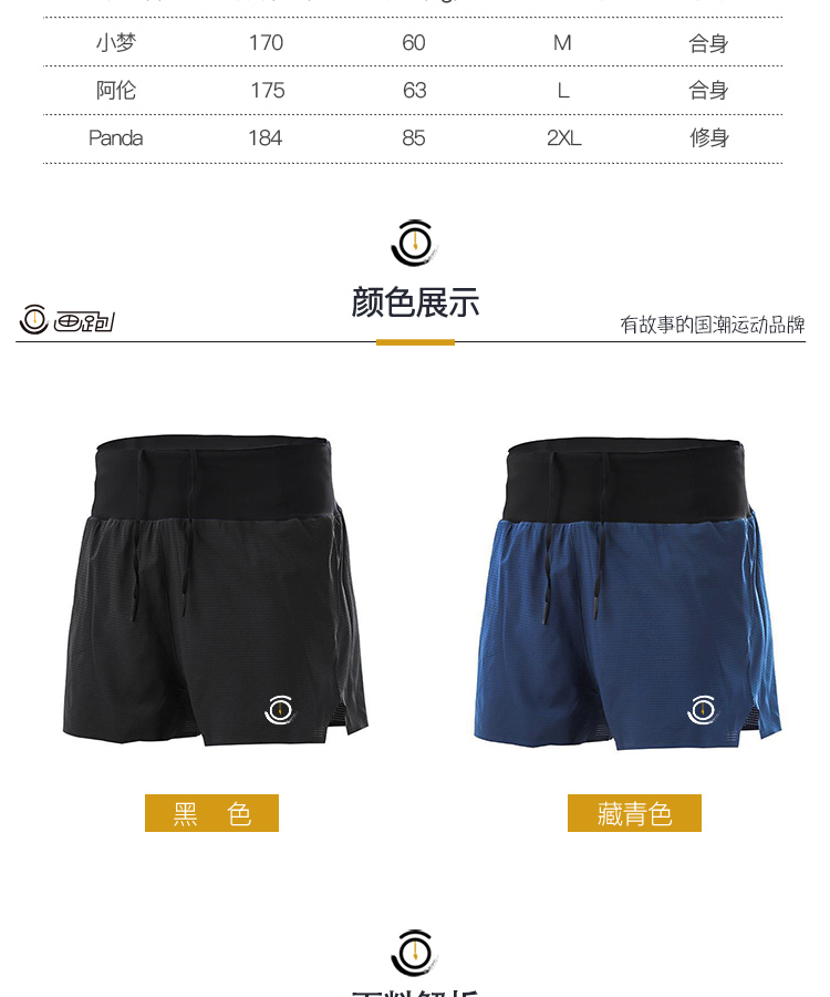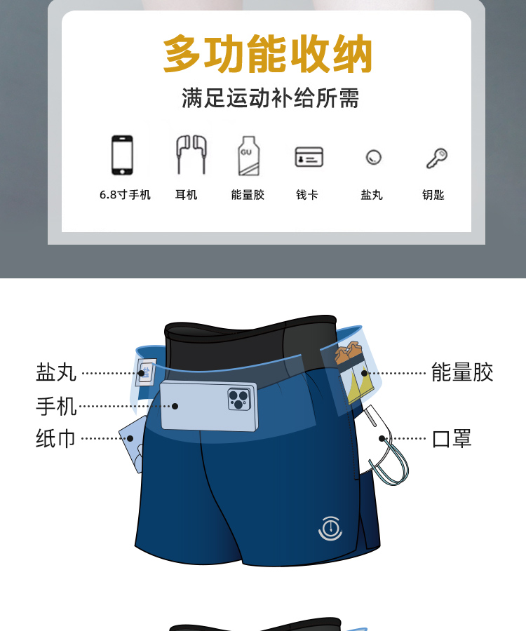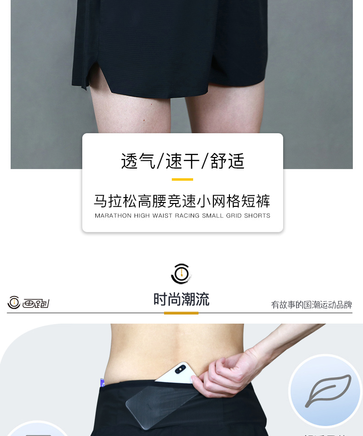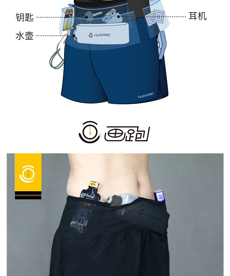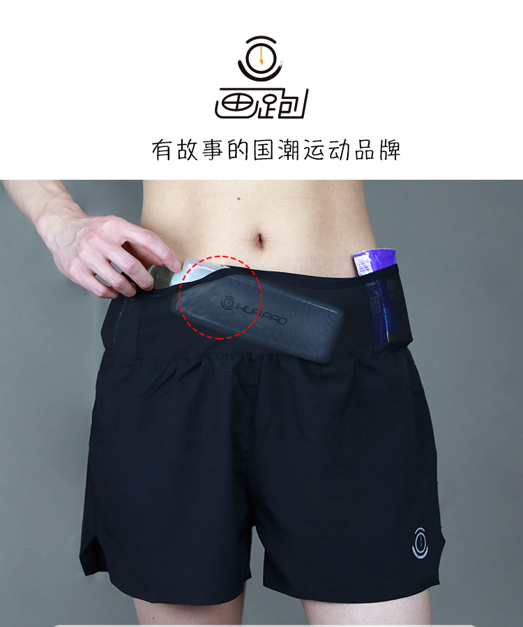 [顺丰发货】(腰包+短裤二合一,可装水壶、手机、纸巾)画跑专业马拉松速干跑步短裤