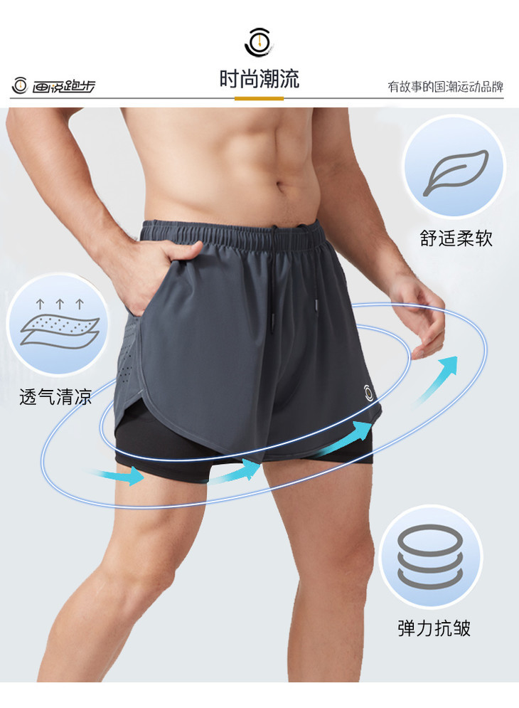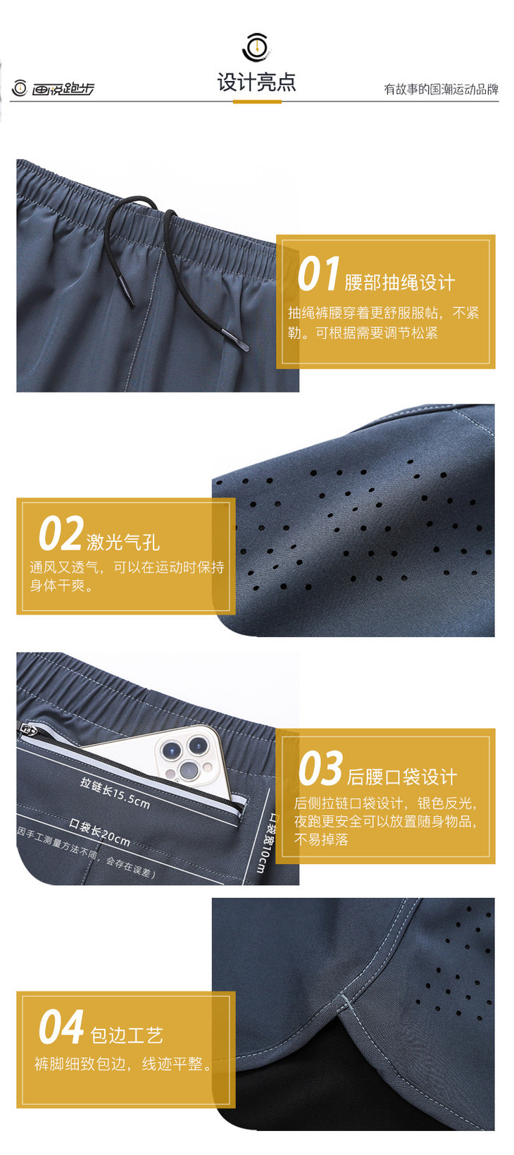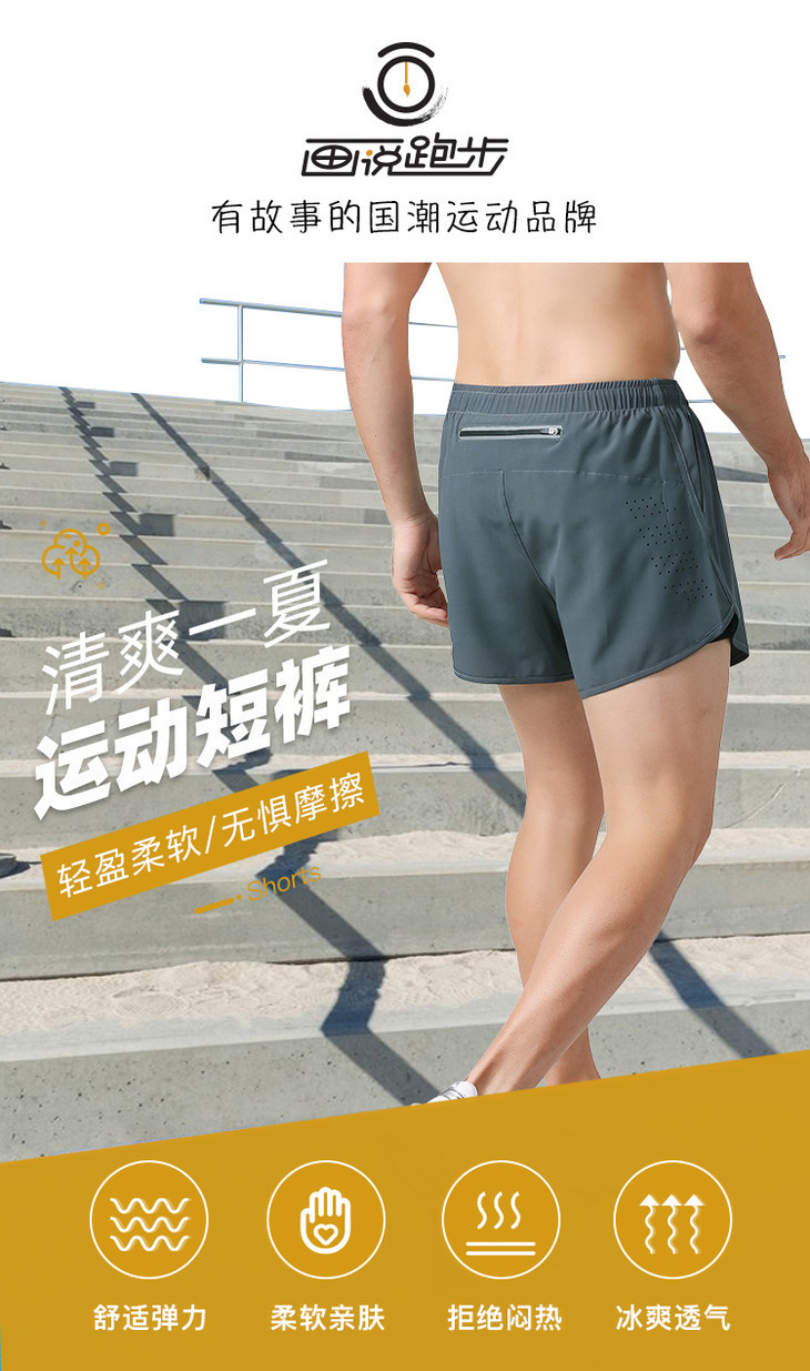 [顺丰发货】(腰包+短裤二合一,可装水壶、手机、纸巾)画跑专业马拉松速干跑步短裤