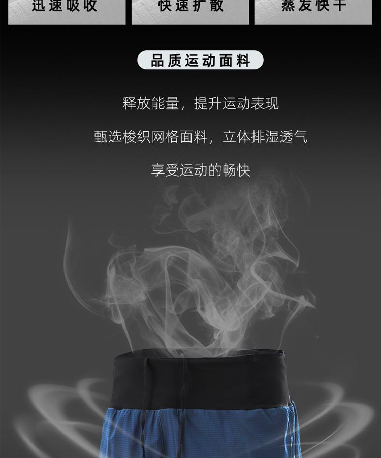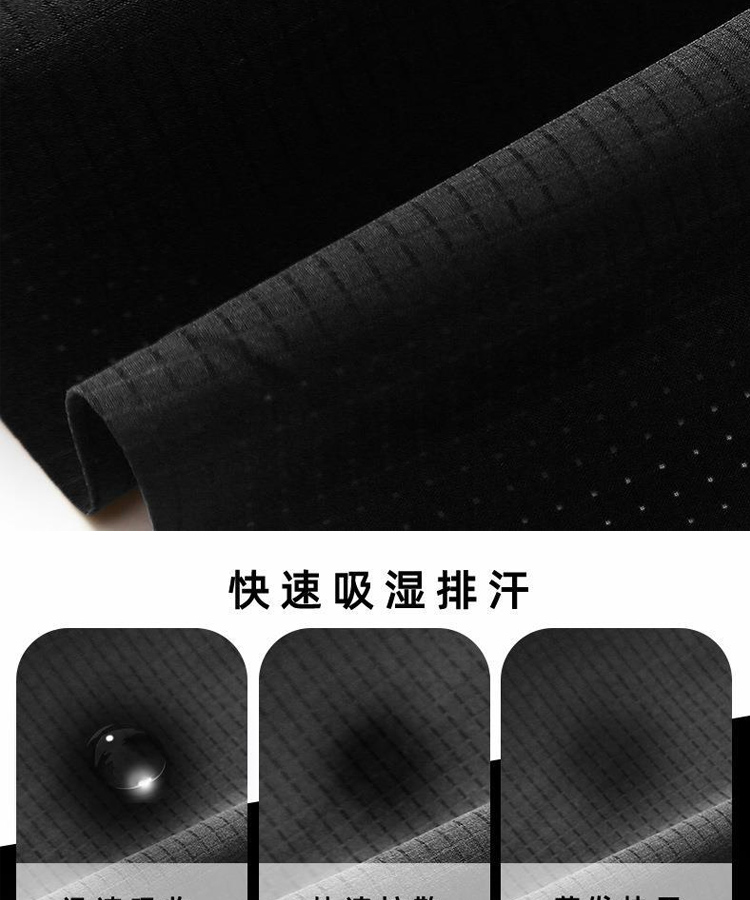 √ 优质运动面料,激光气孔,速干清爽,透气清凉。