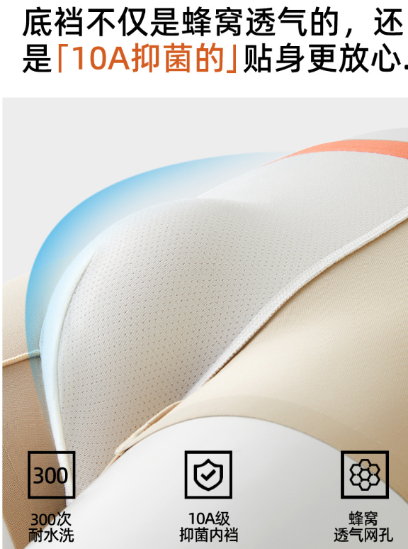 底裆不仅是蜂窝透气的,还是[10A抑菌的 !300次耐水洗! 源自于大自然的好材质,肌肤所爱~