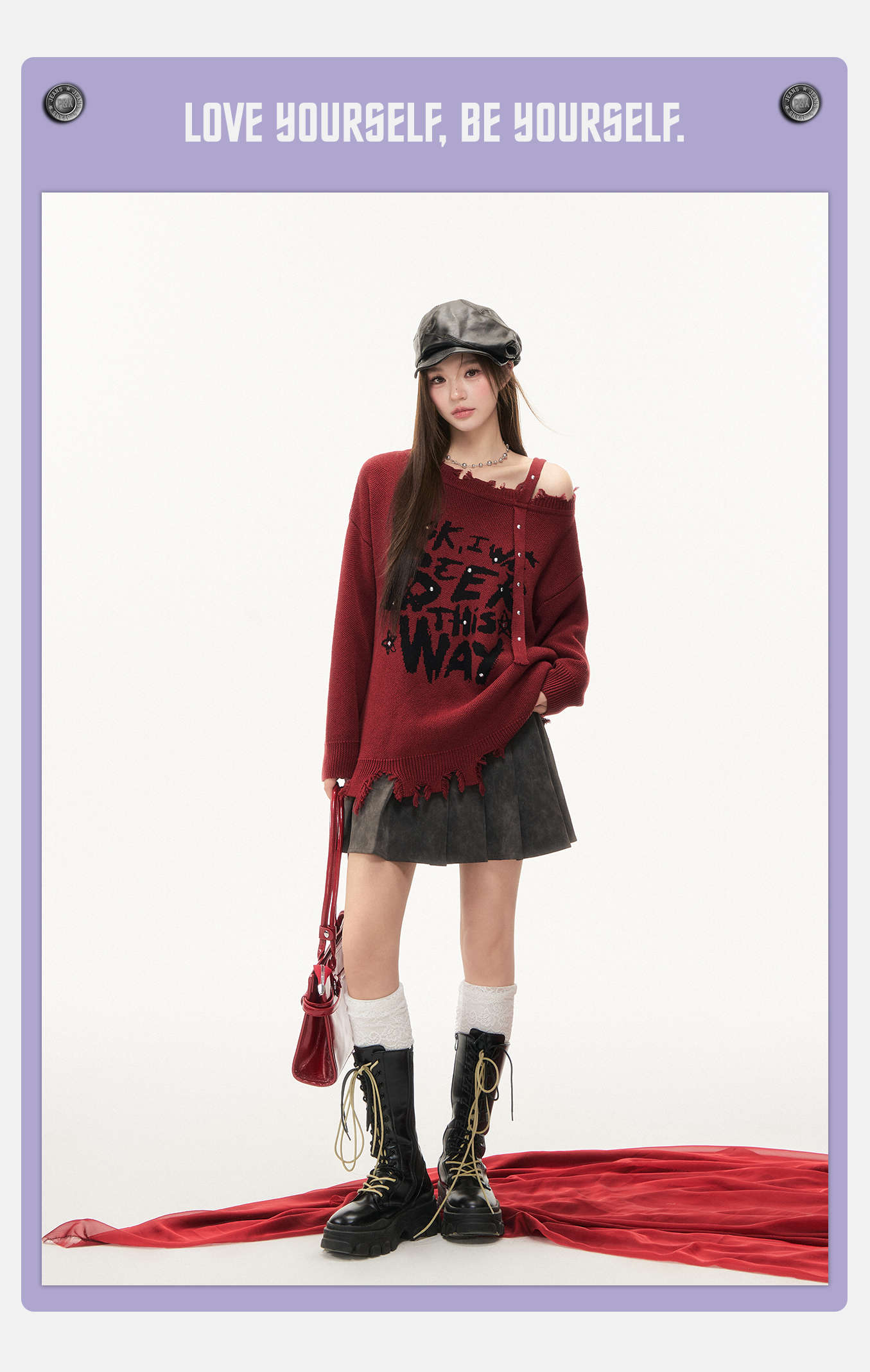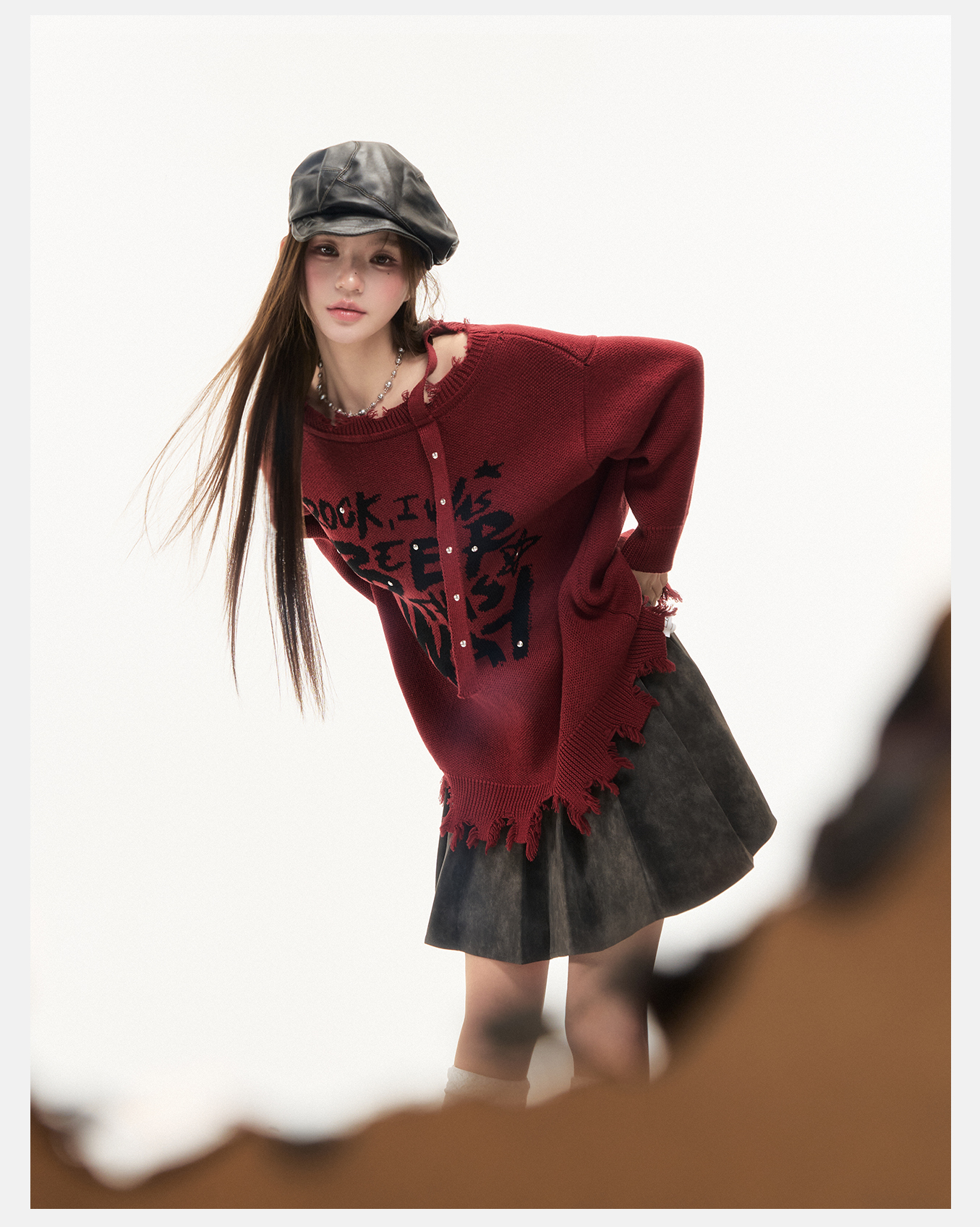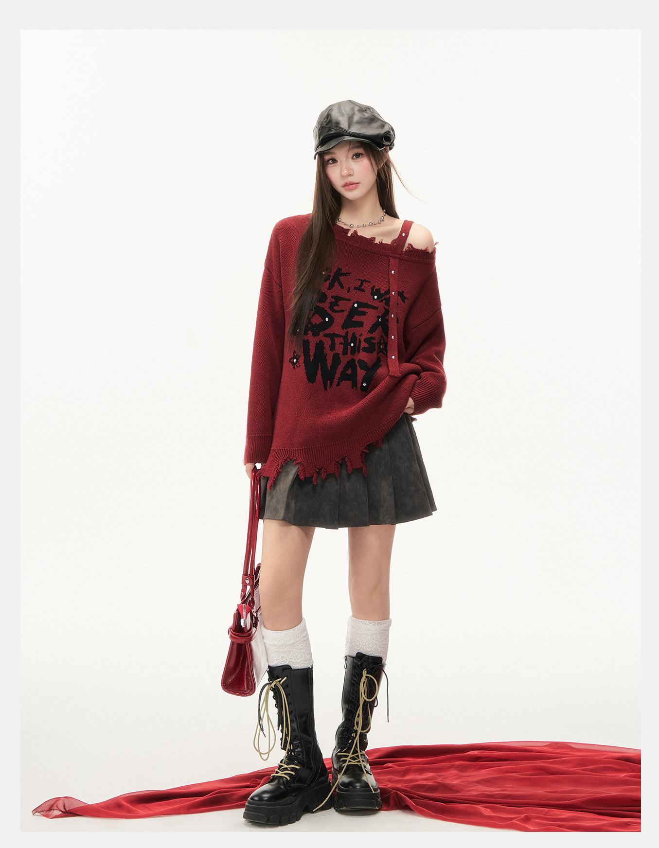 P&X设计师女装2025冬季慵懒风时尚中长款毛衣 825418190 红色