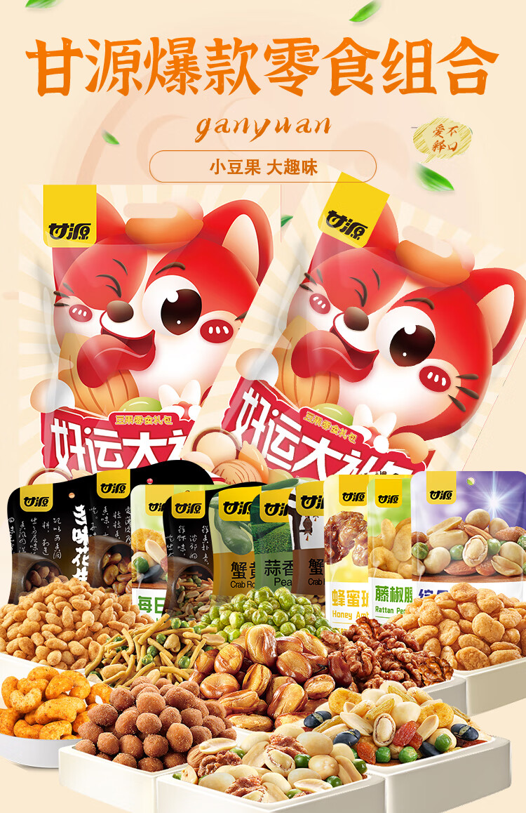 甘源坚果炒货零食送礼休闲食品 瓜子仁青豆核桃腰果休闲零食零食礼袋 甘源好运大礼包698g