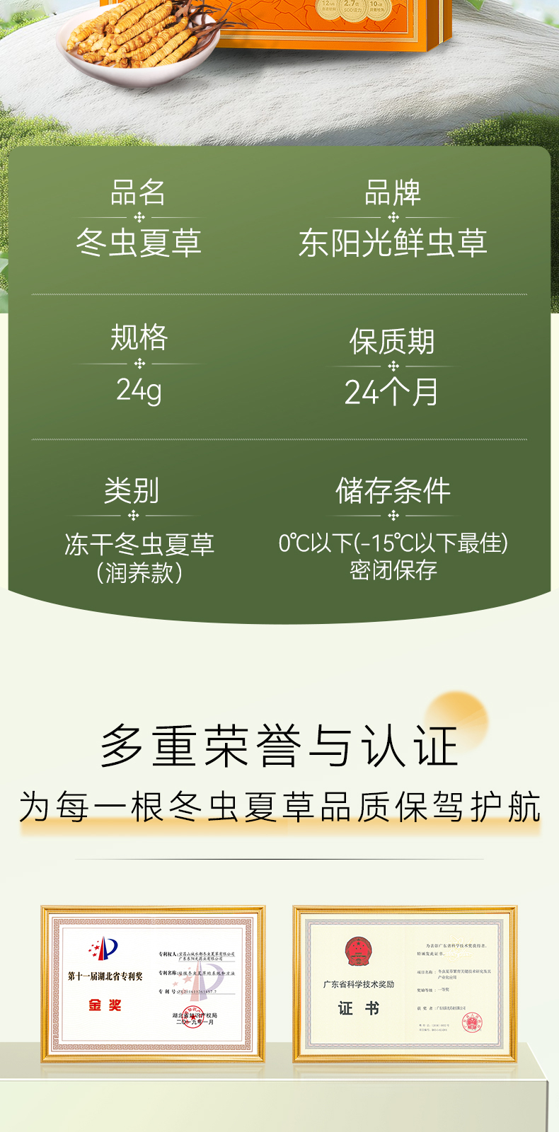 东阳光冬虫夏草 有机冻干虫草24克 3-4根/克