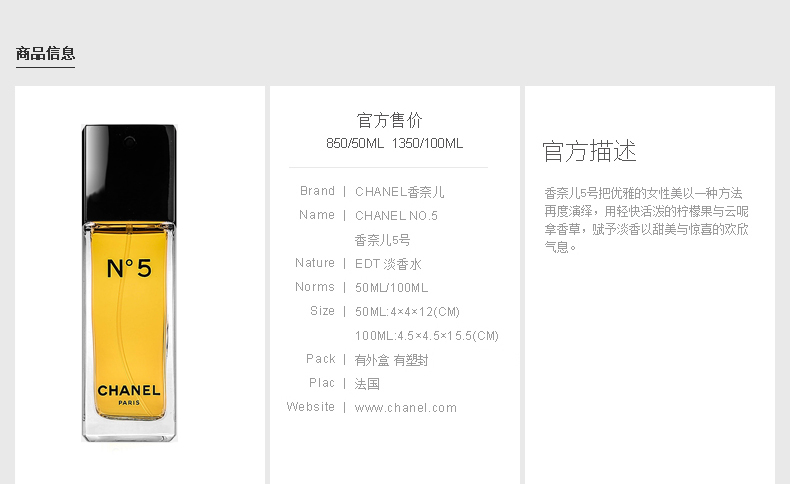 CHANEL/香奈儿 5号 喷雾淡香水 EDT 100ML