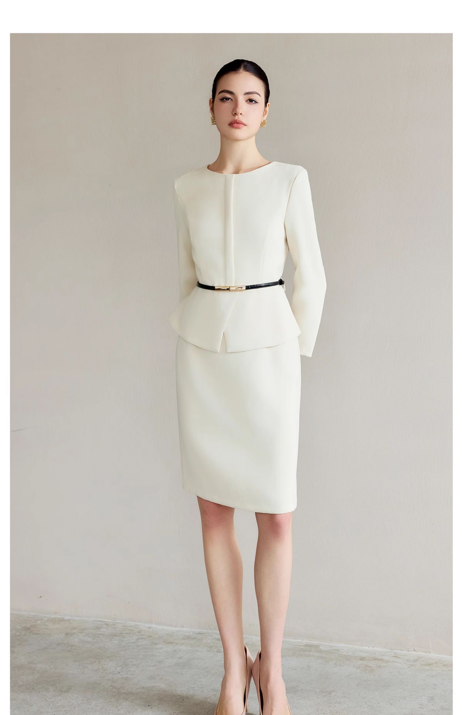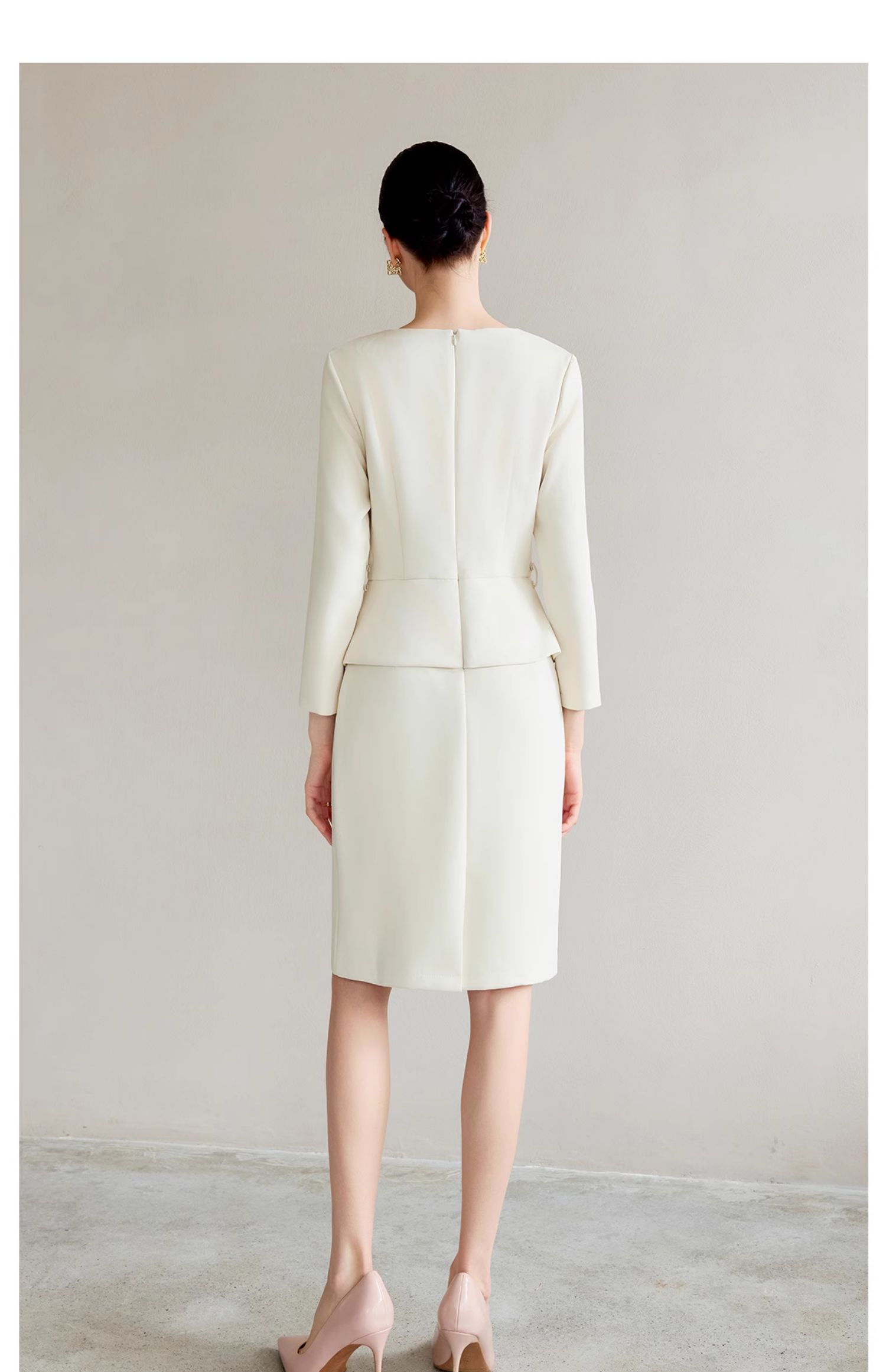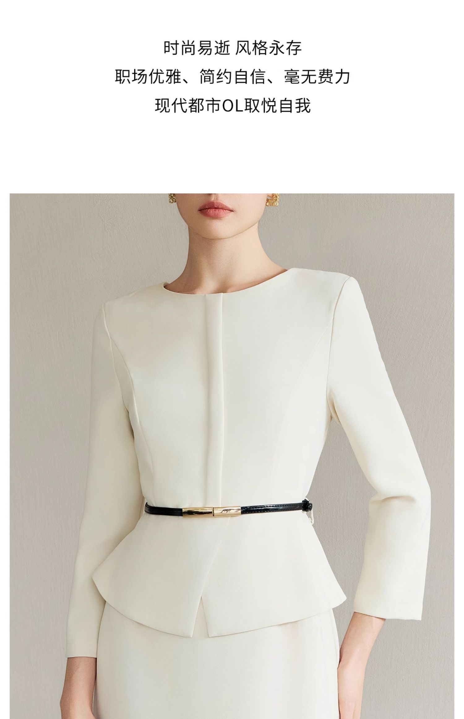 IWY/米白色假两件西装连衣裙女气质教资面试职业裙美容院前台接待正装Q1291