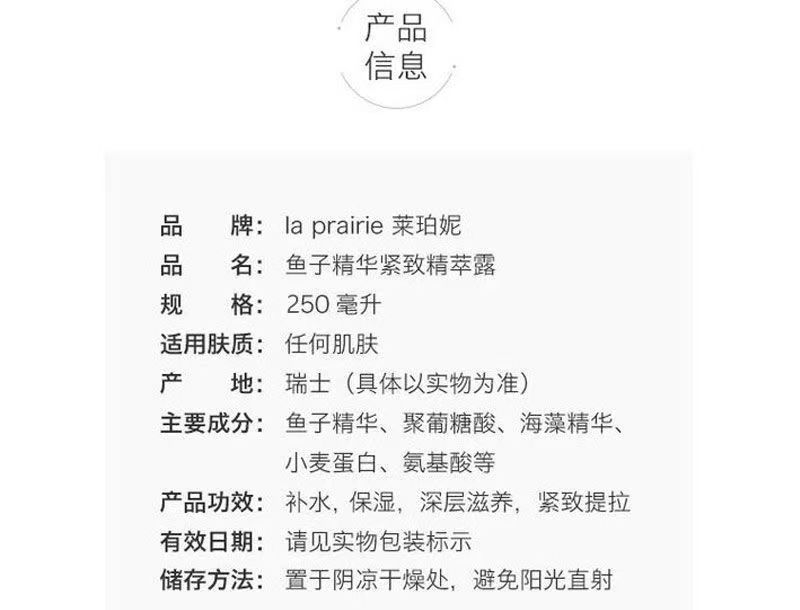【保税直发】【支持蚂蚁溯源】莱珀妮(La Prairie)鱼子精华紧致精萃露 150ml 250ml
