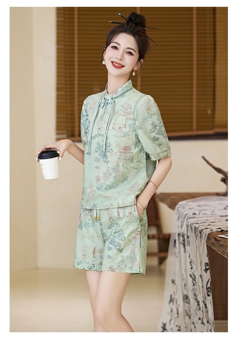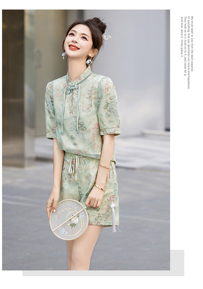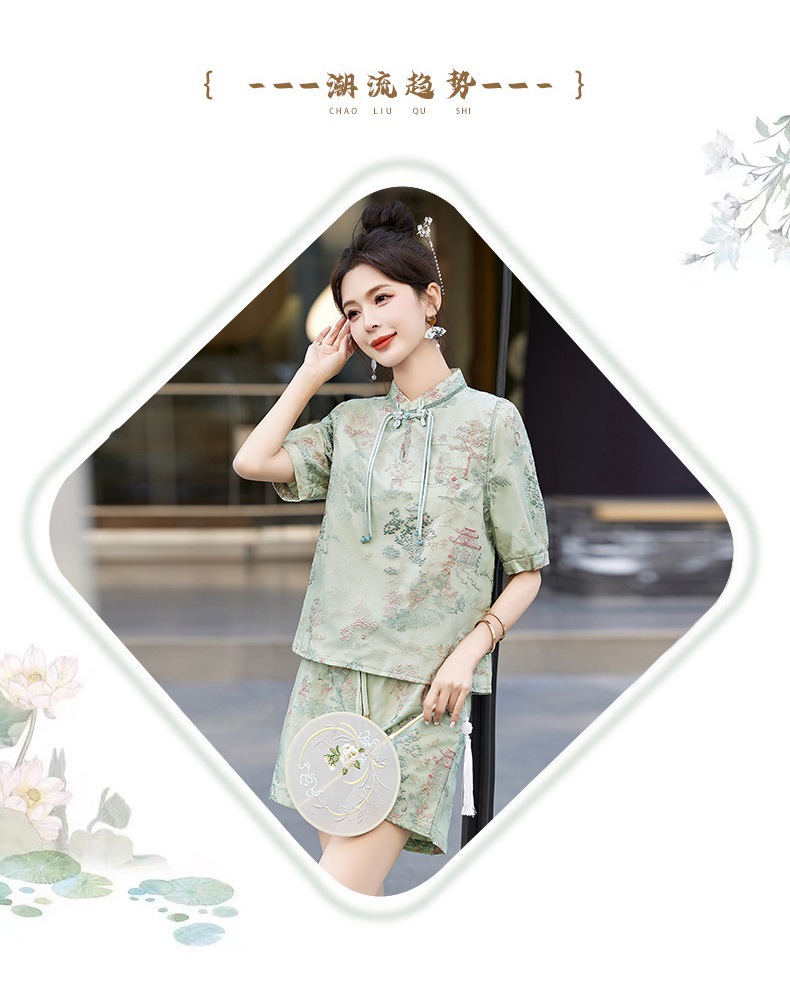 新中式国风套装气质洋气,时尚减龄显瘦短裤两件套HR-QMC6187