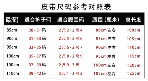 皮带码数是欧码 对照后一组 扣眼处数据即可 腰很细的爷们 需要去打孔