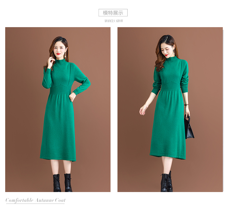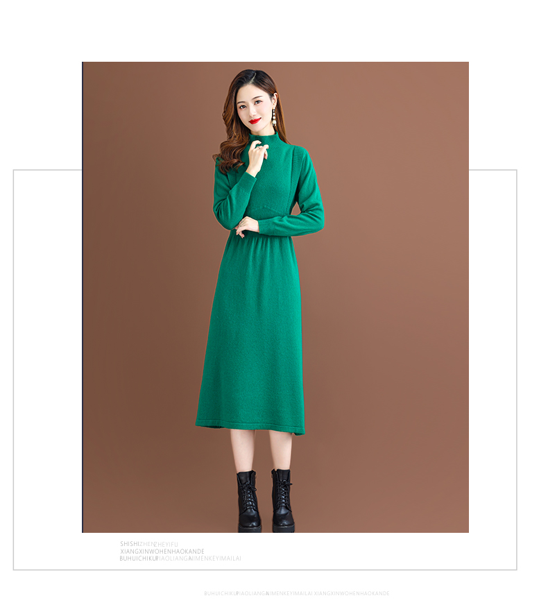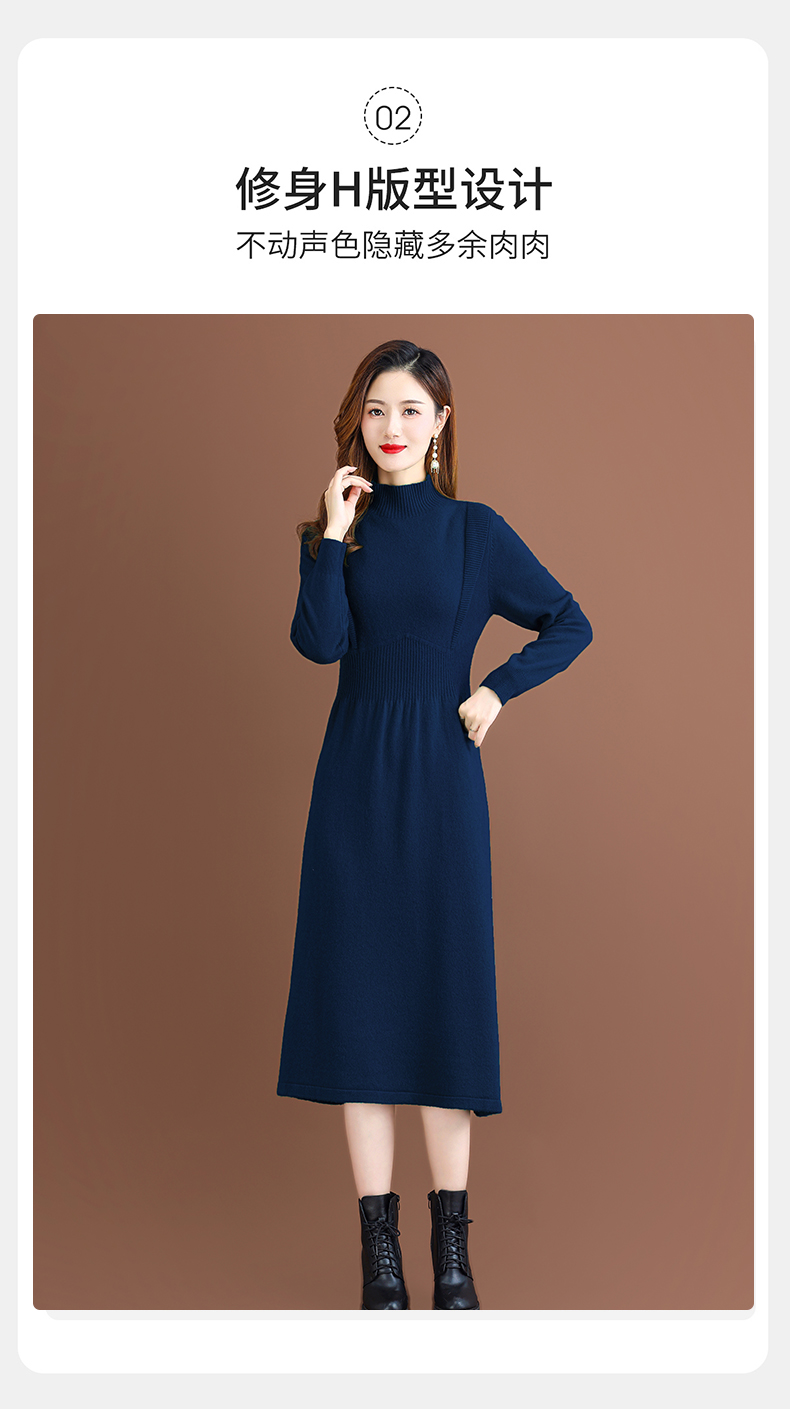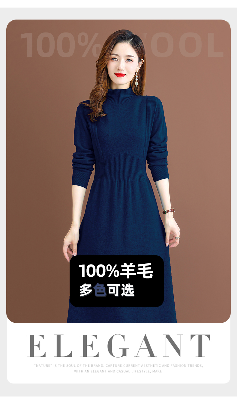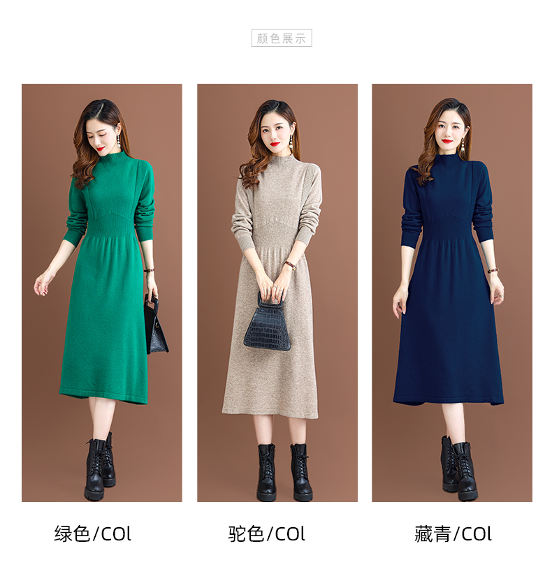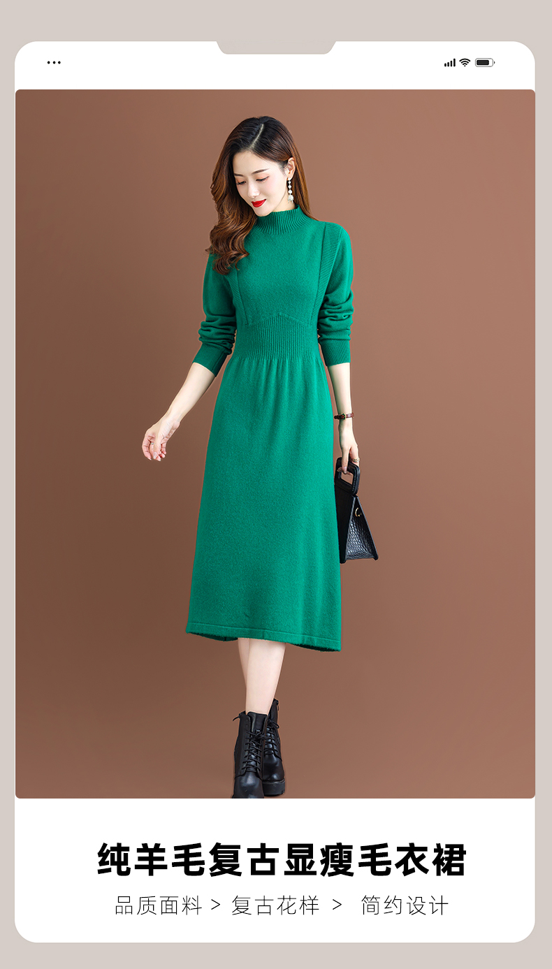 纯羊毛针织冬季内搭,半高领收腰纯色毛衣裙CC-68-1006