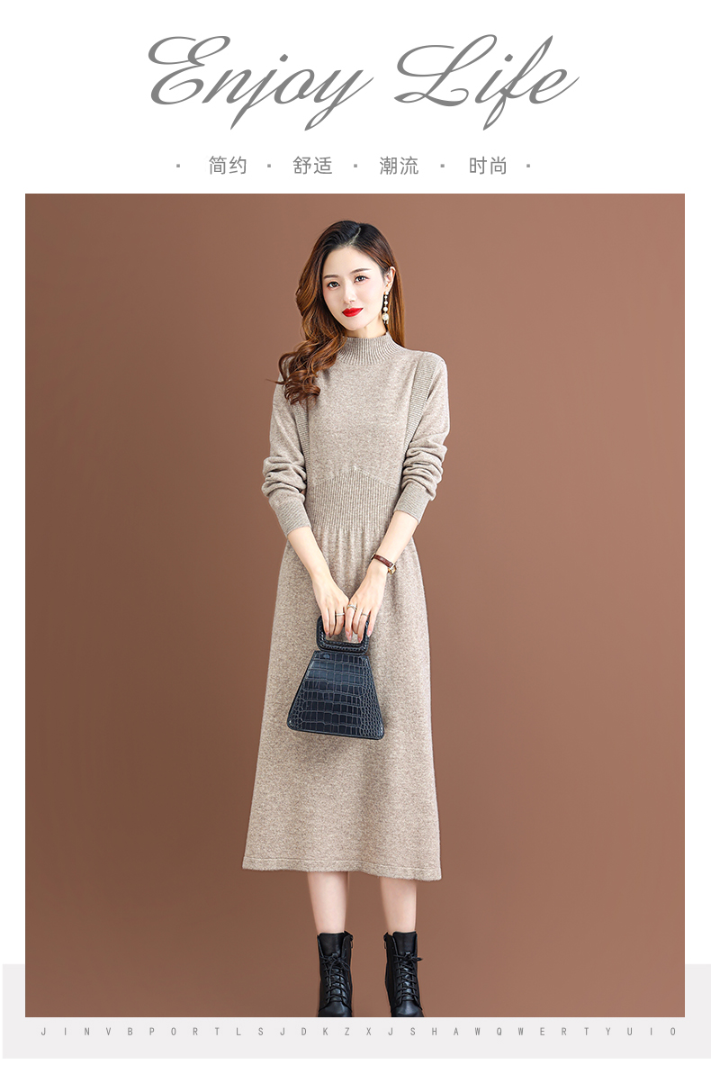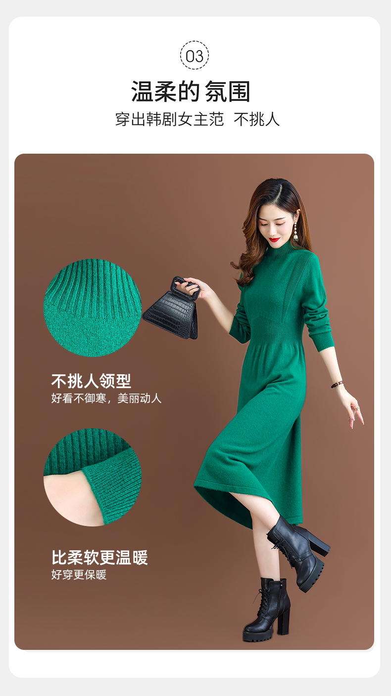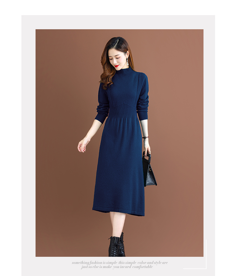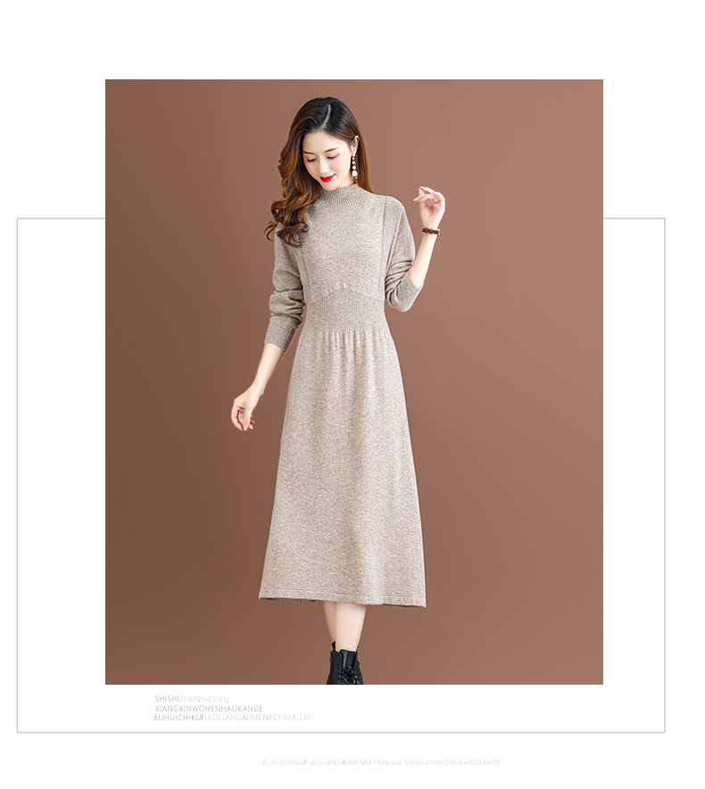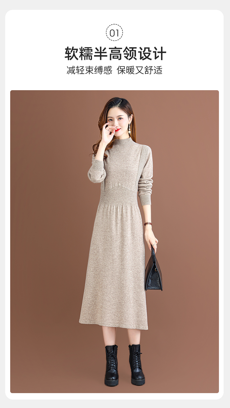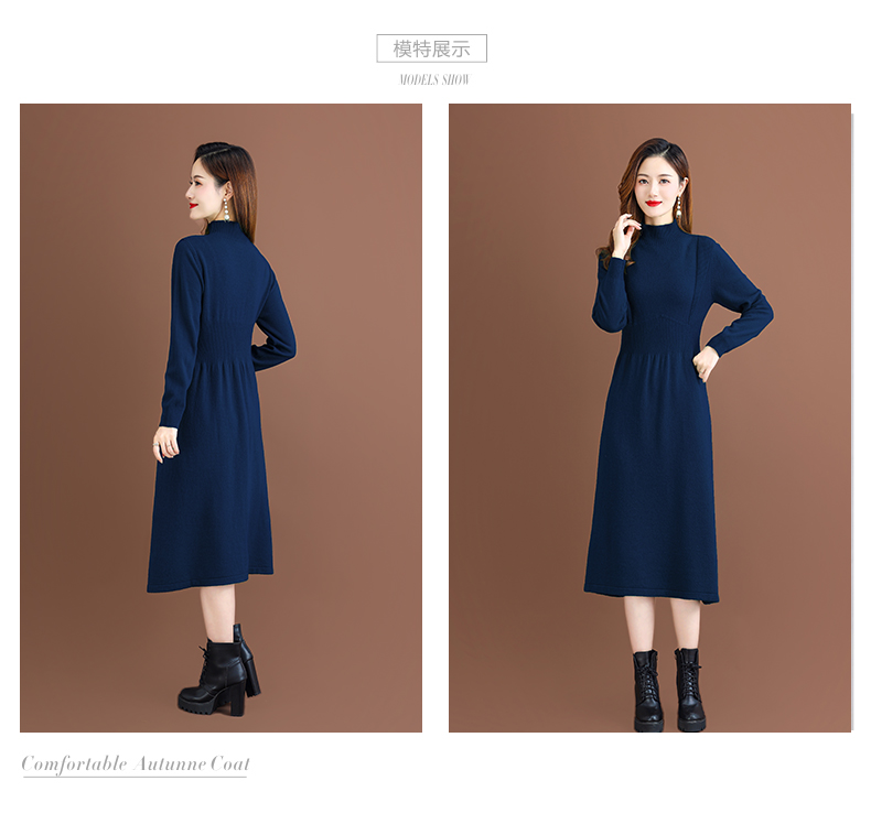 纯羊毛针织冬季内搭,半高领收腰纯色毛衣裙CC-68-1006