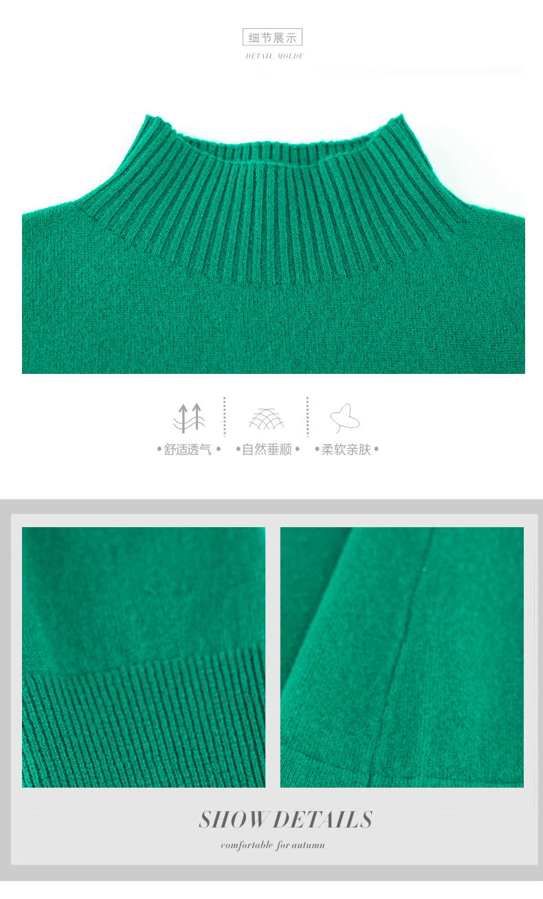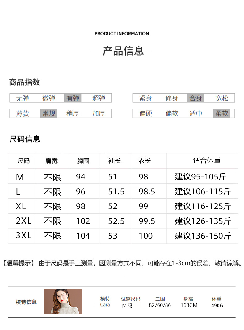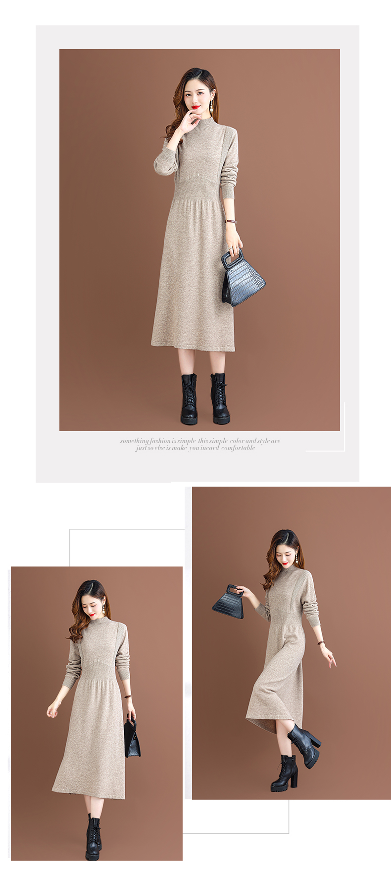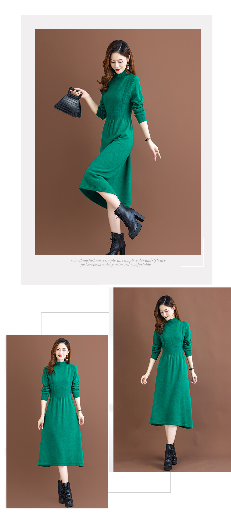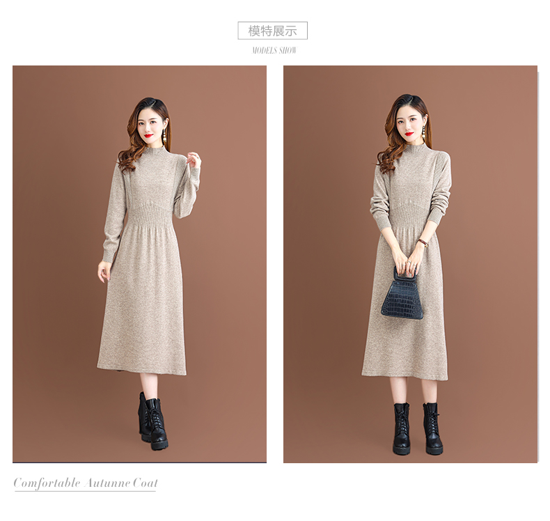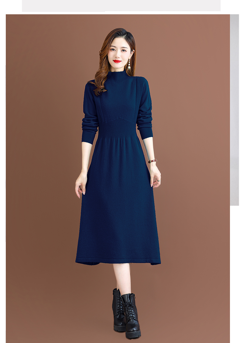 纯羊毛针织冬季内搭,半高领收腰纯色毛衣裙CC-68-1006