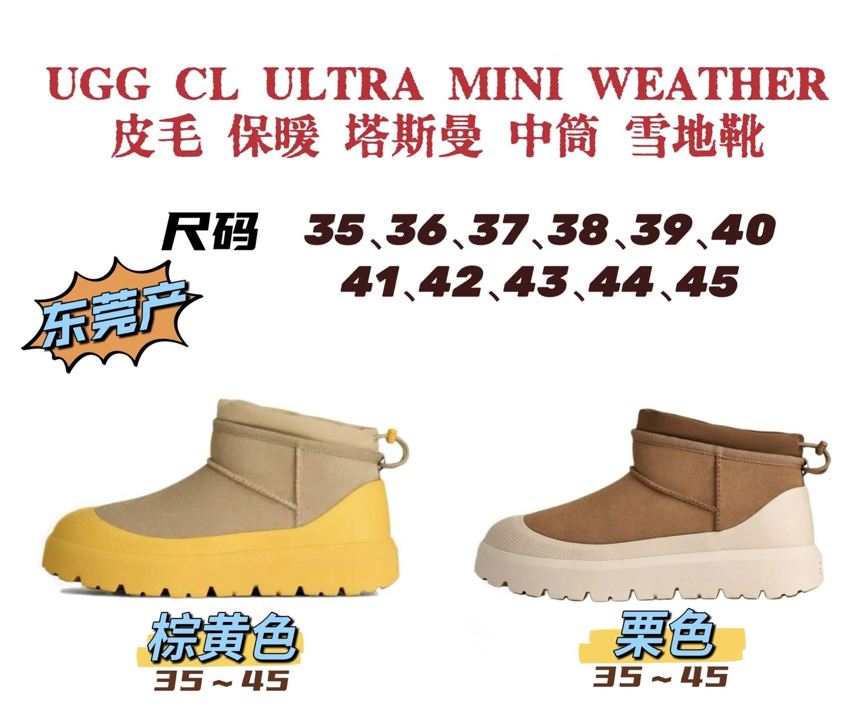 UGG CL ULTRA MINI WEATHER 是 UGG 经典短靴的“升级版”。保留了经典款式(圆头、短筒、皮毛一体)的所有优点基础上,通过 “ULTRA轻量鞋底” 和 “WEATHER防水” 两大科技,极大地提升了穿着舒适度和日常实用性。