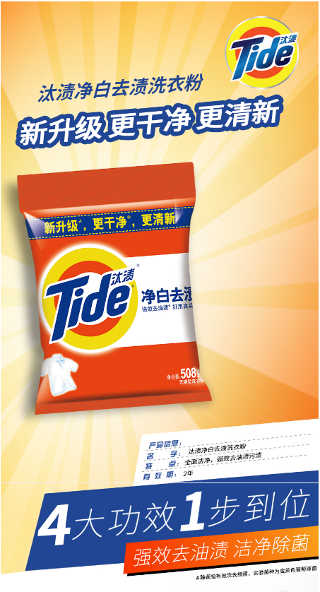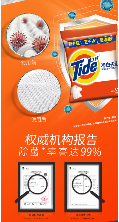 【4.25统一商品】汰渍Tide净白去渍洗衣粉 强力去污 508g袋装*10袋