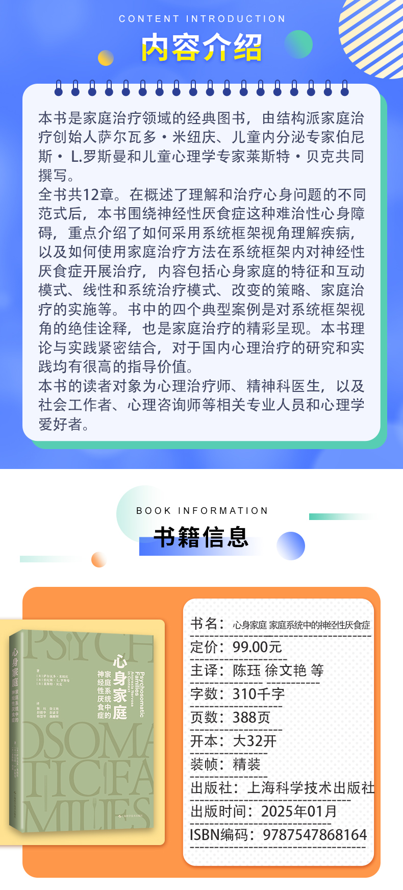 心身家庭 家庭系统中的神经性厌食症 陈珏译 家庭系统视角解构神经性厌食症心身疾病临床案例 上海科学技术出版社9787117336031