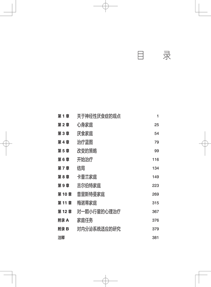 全书共12章。在概述了理解和治疗心身问题的不同范式后,本书围绕神经性厌食症这种难治性心身障碍,重点介绍了如何采用系统框架视角理解疾病,以及如何使用家庭治疗方法在系统框架内对神经性厌食症开展治疗,内容包括心身家庭的特征和互动模式、线性和系统治疗模式、改变的策略、家庭治疗的实施等。书中的四个典型案例是对系统框架视角的绝佳诠释,也是家庭治疗的精彩呈现。本书理论与实践紧密结合,对于国内心理治疗的研究和实践均有很高的指导价值。