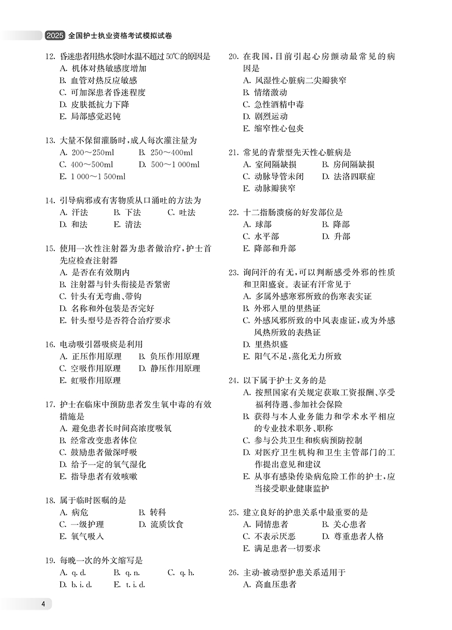 书名:2025全国护士执业资格考试模拟试卷