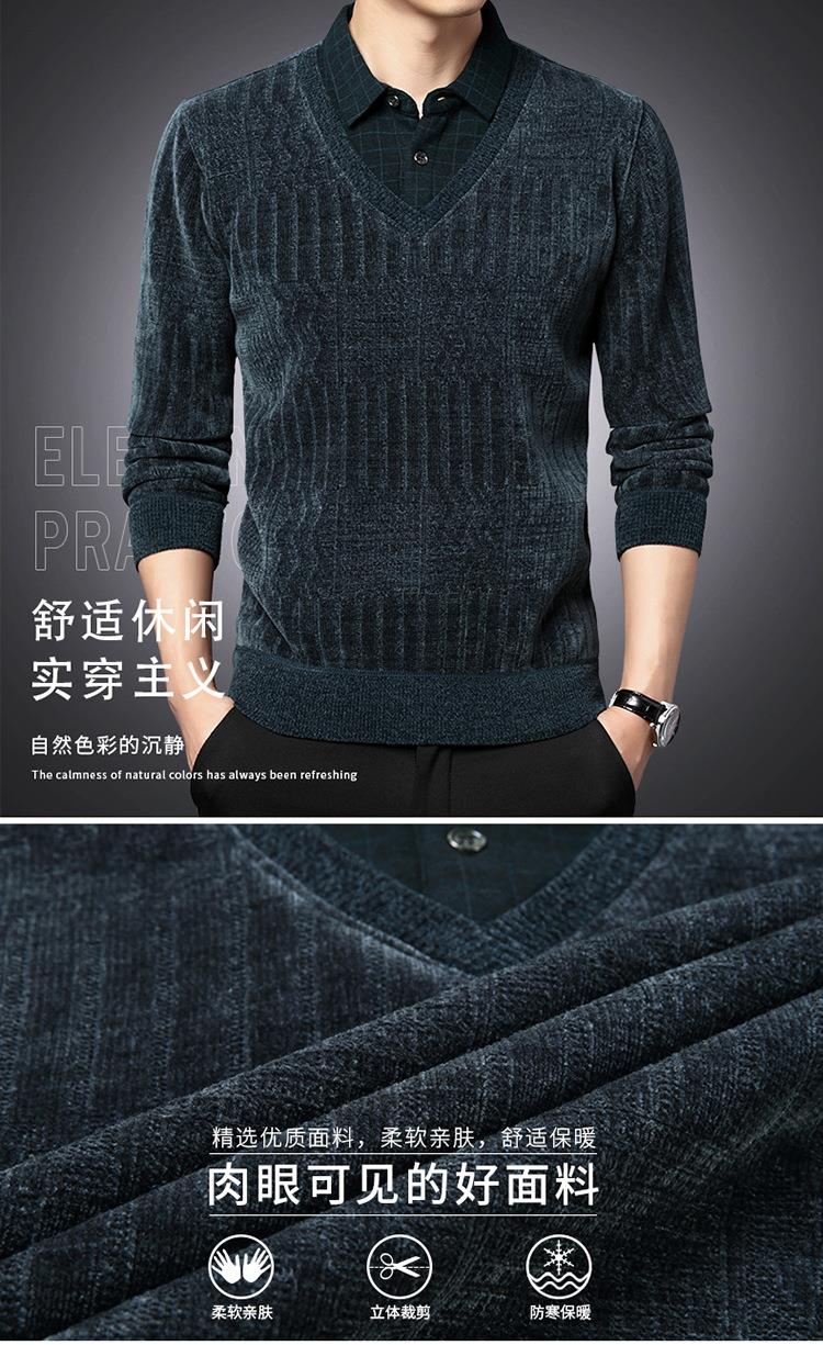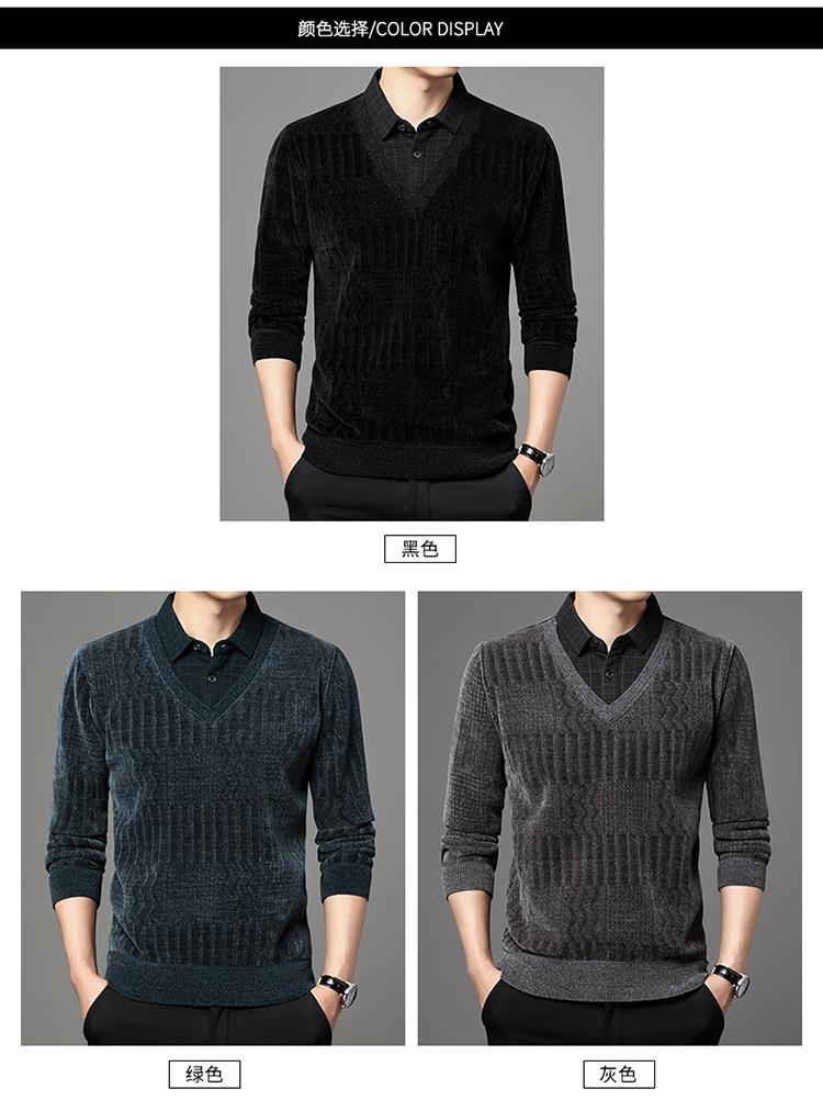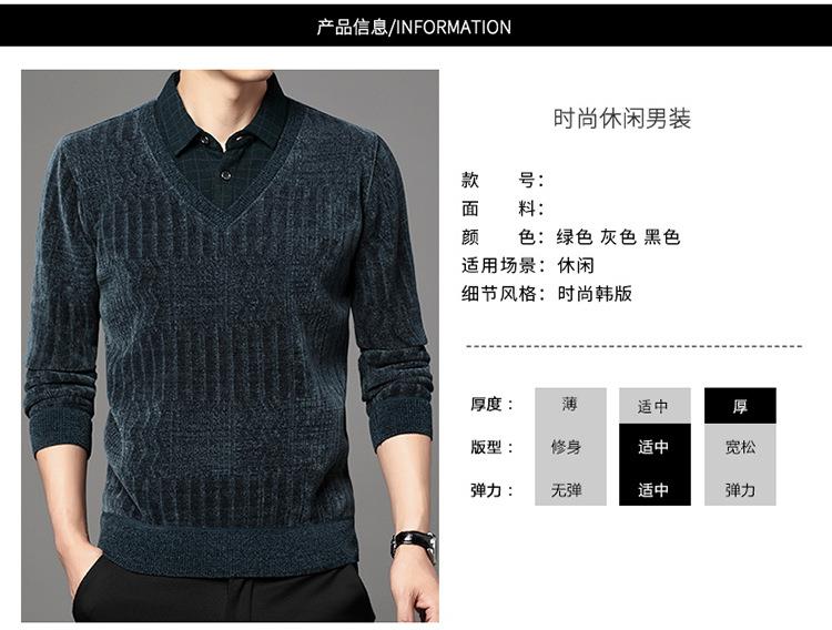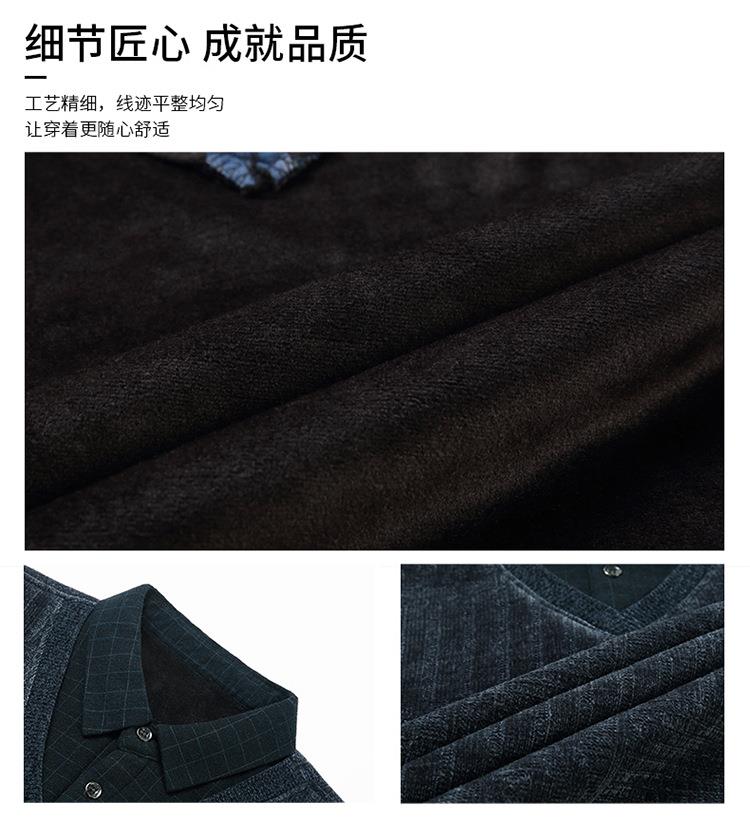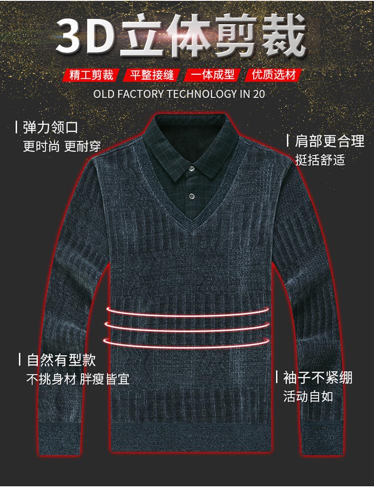 加绒加厚长袖假两件T恤衫男士秋冬季新款宽松保暖打底衫毛衣