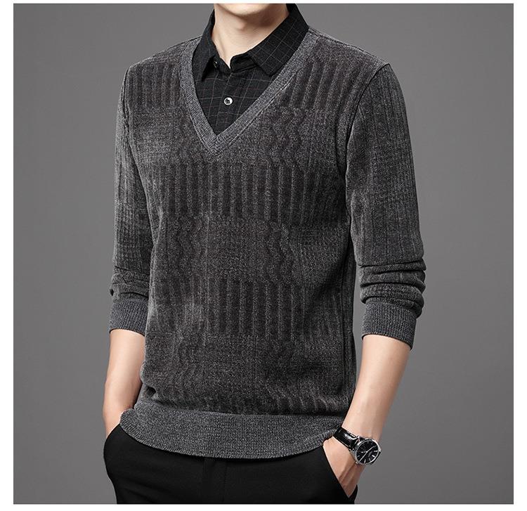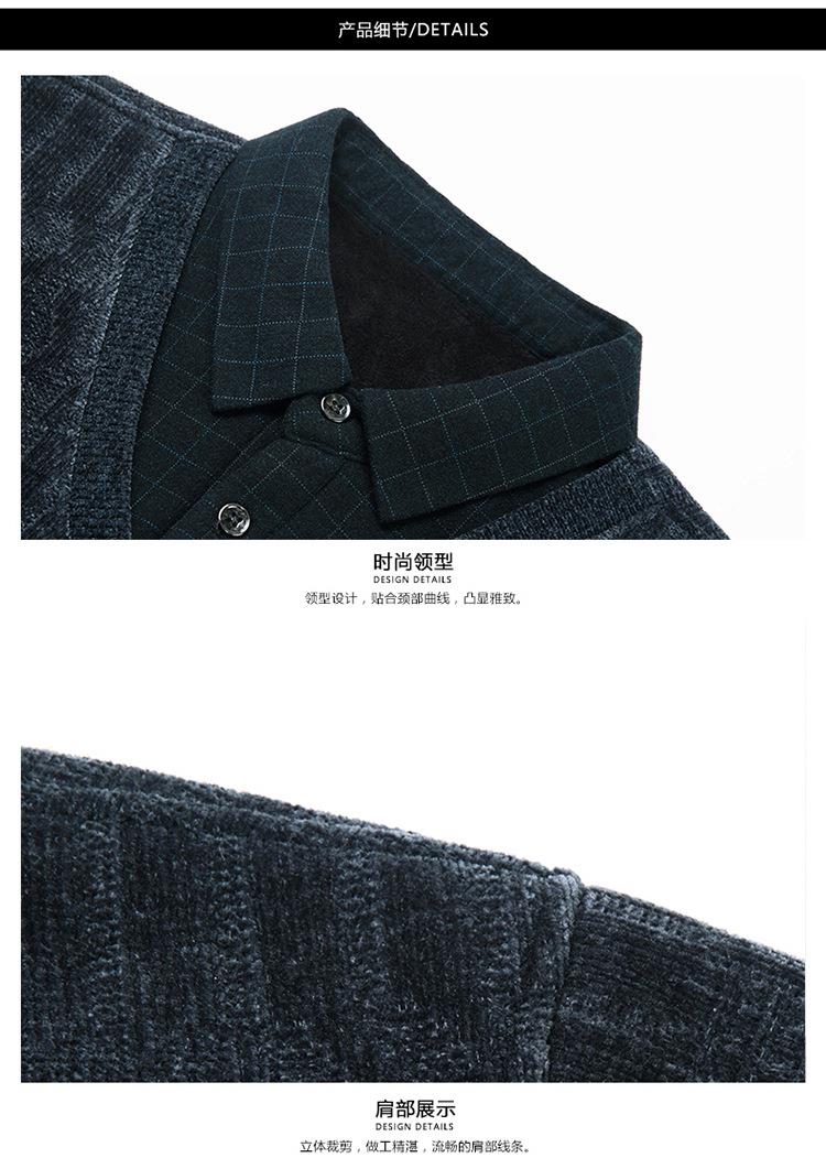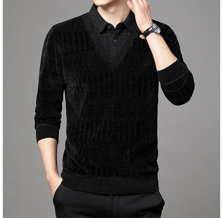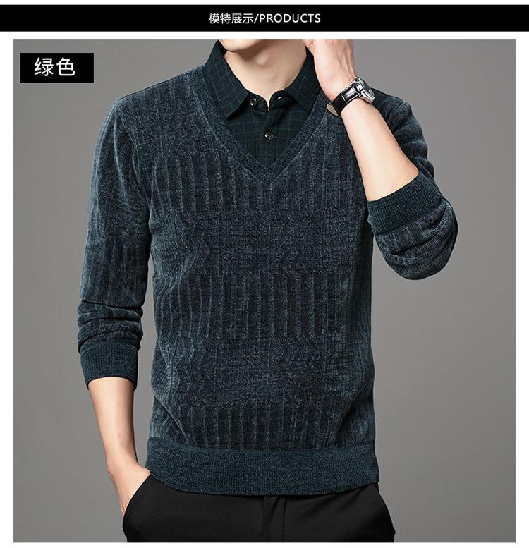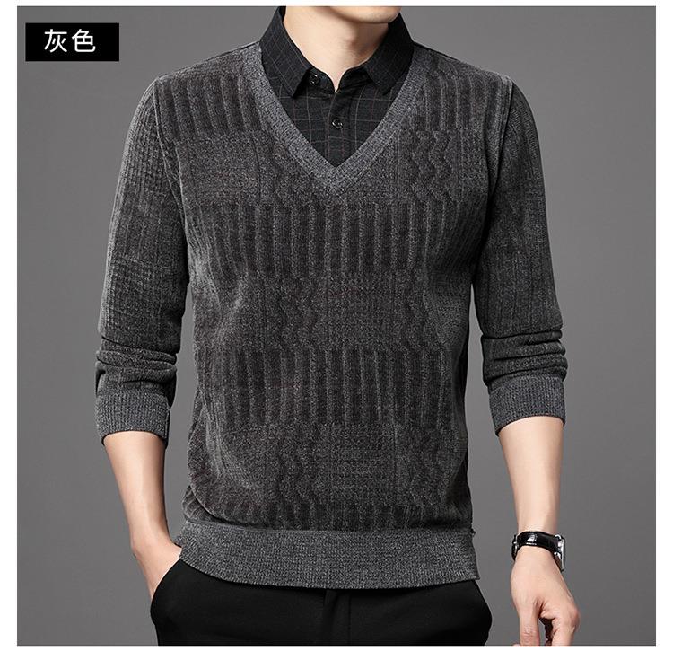 加绒加厚长袖假两件T恤衫男士秋冬季新款宽松保暖打底衫毛衣