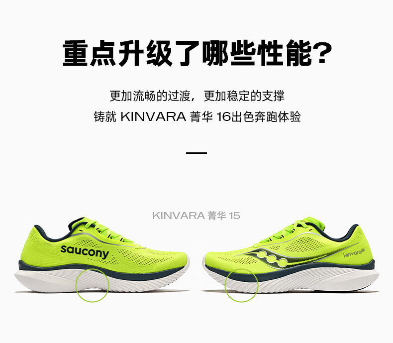 Saucony索康尼 男款菁华16轻量缓震透气专业运动训练跑步鞋Kinvara 16