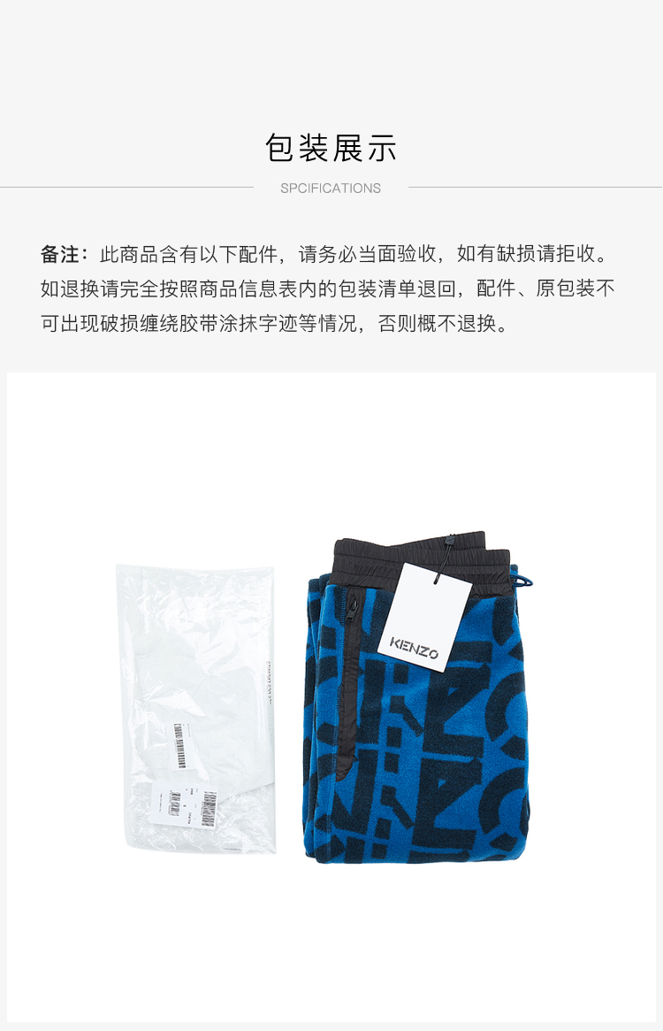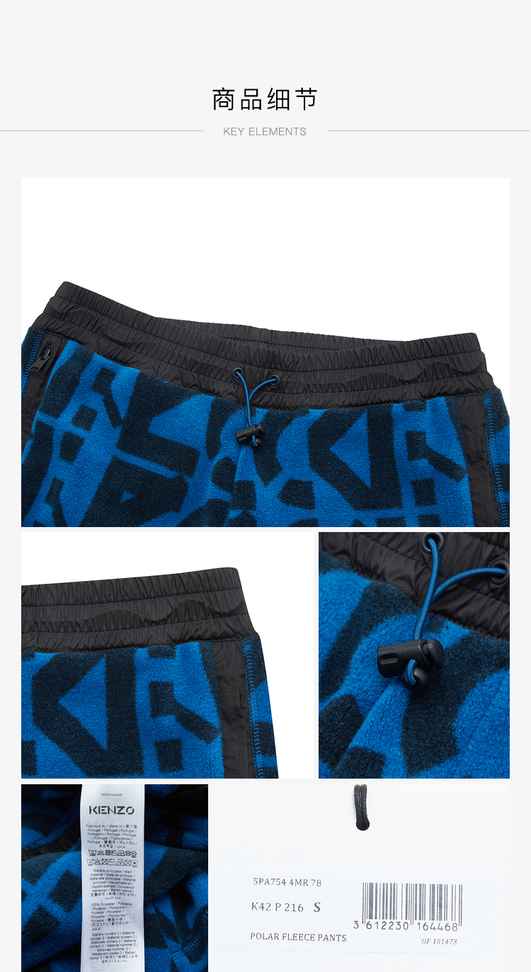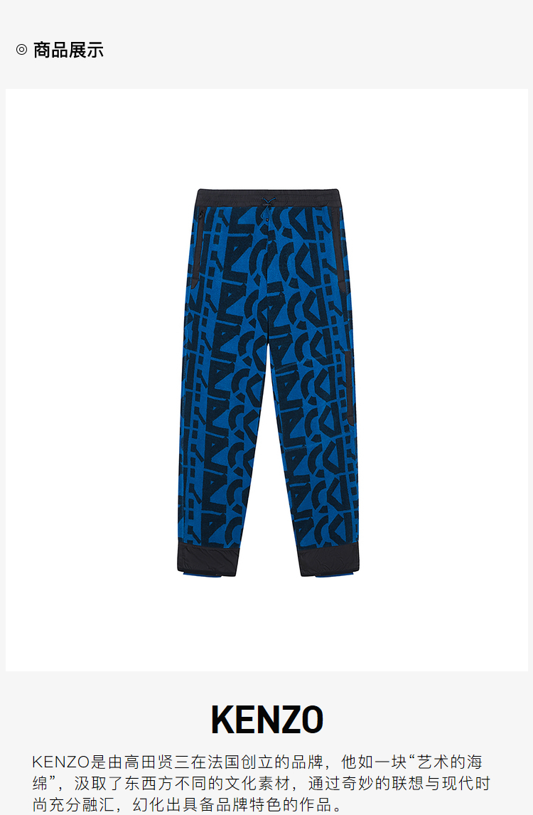 KENZO 高田贤三 男士KENZO Sport系列字母组合超大号休闲运动裤 FB65PA7544MR