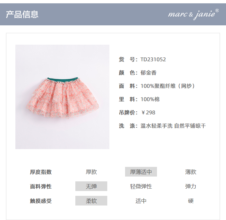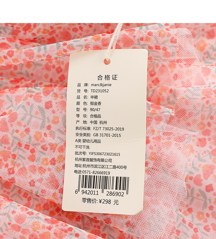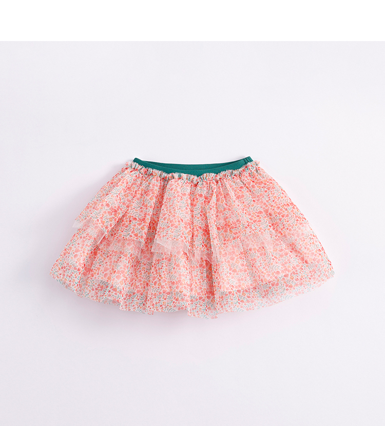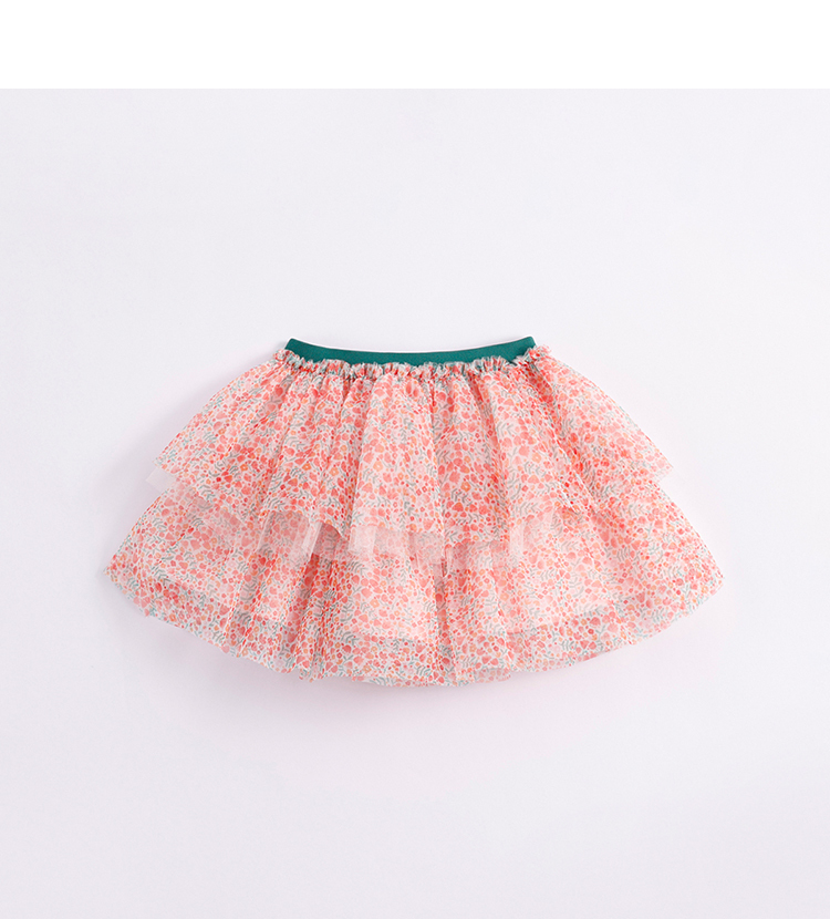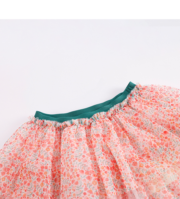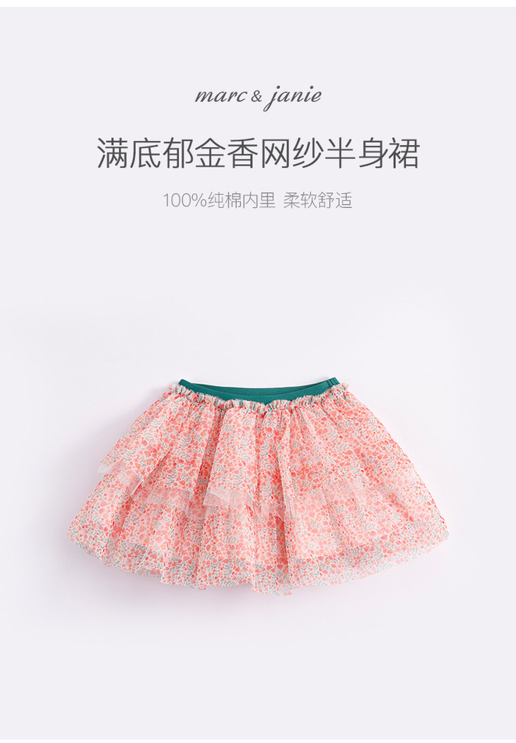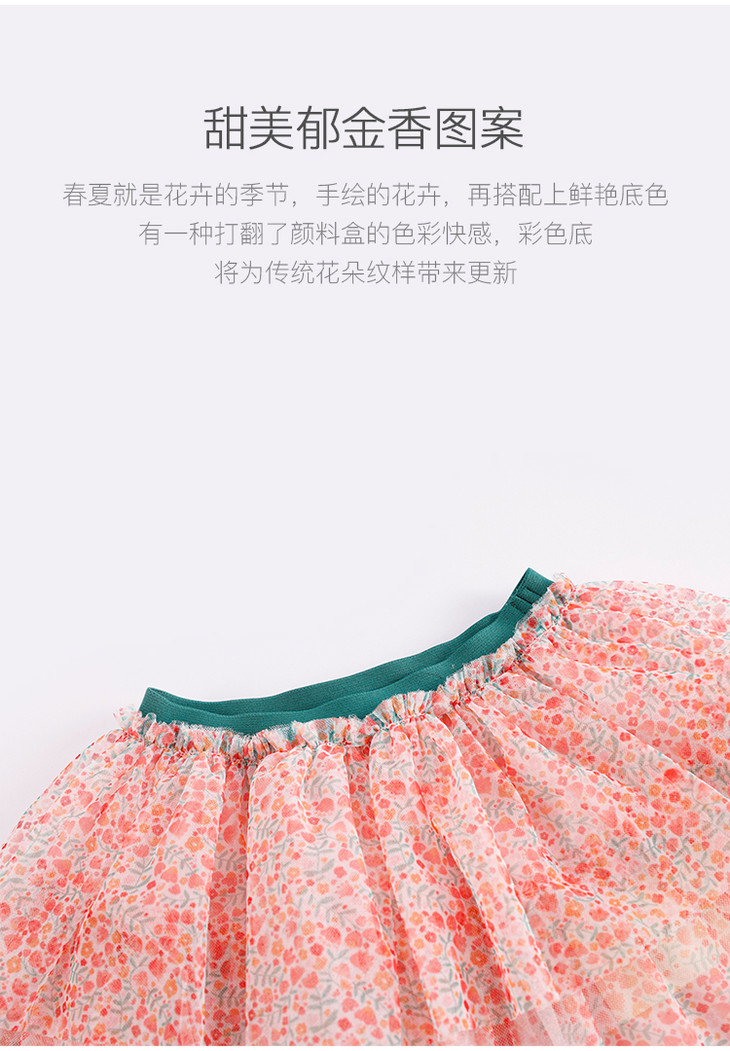 马克珍妮新款夏装 女童郁金香满印网纱半身裙231052