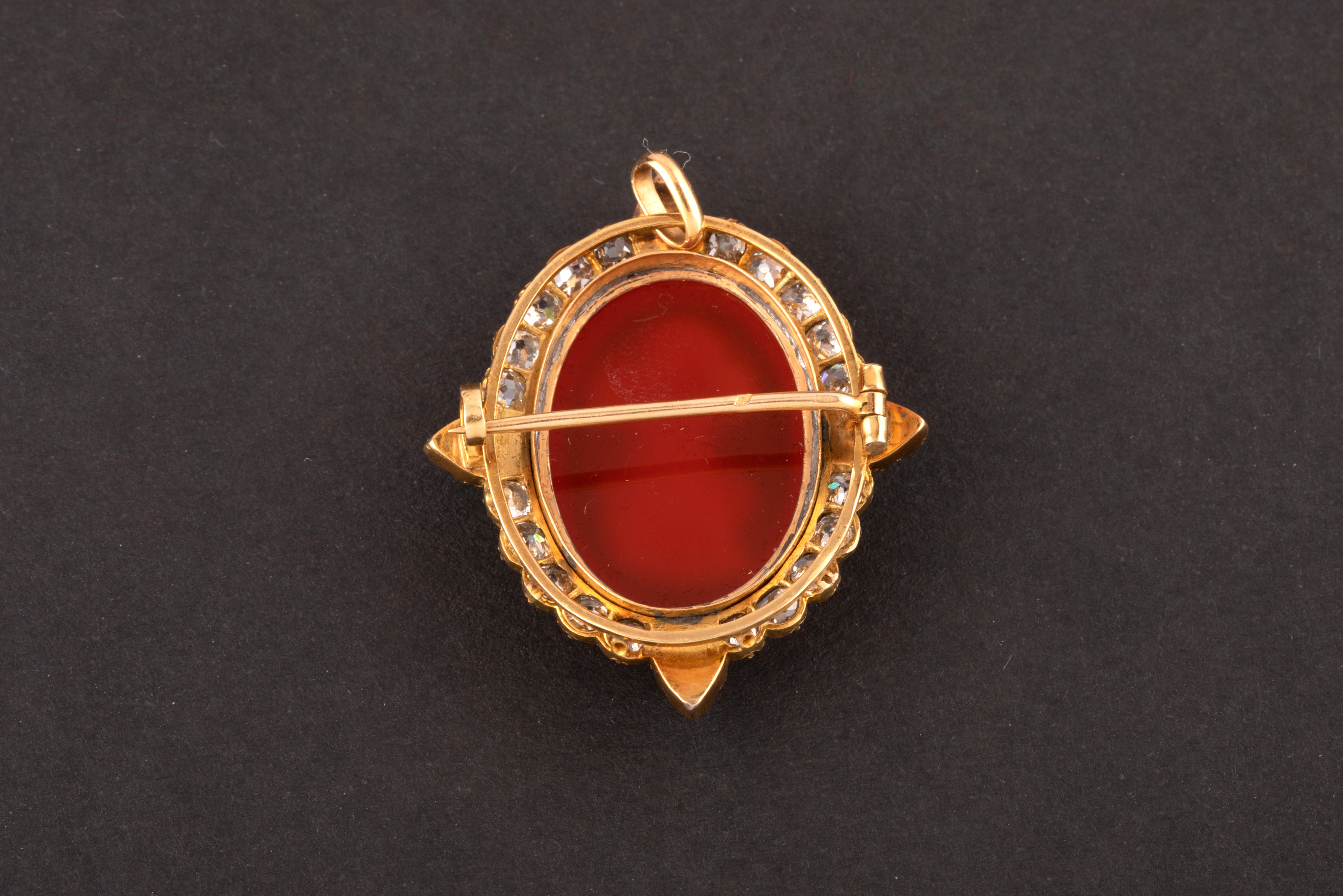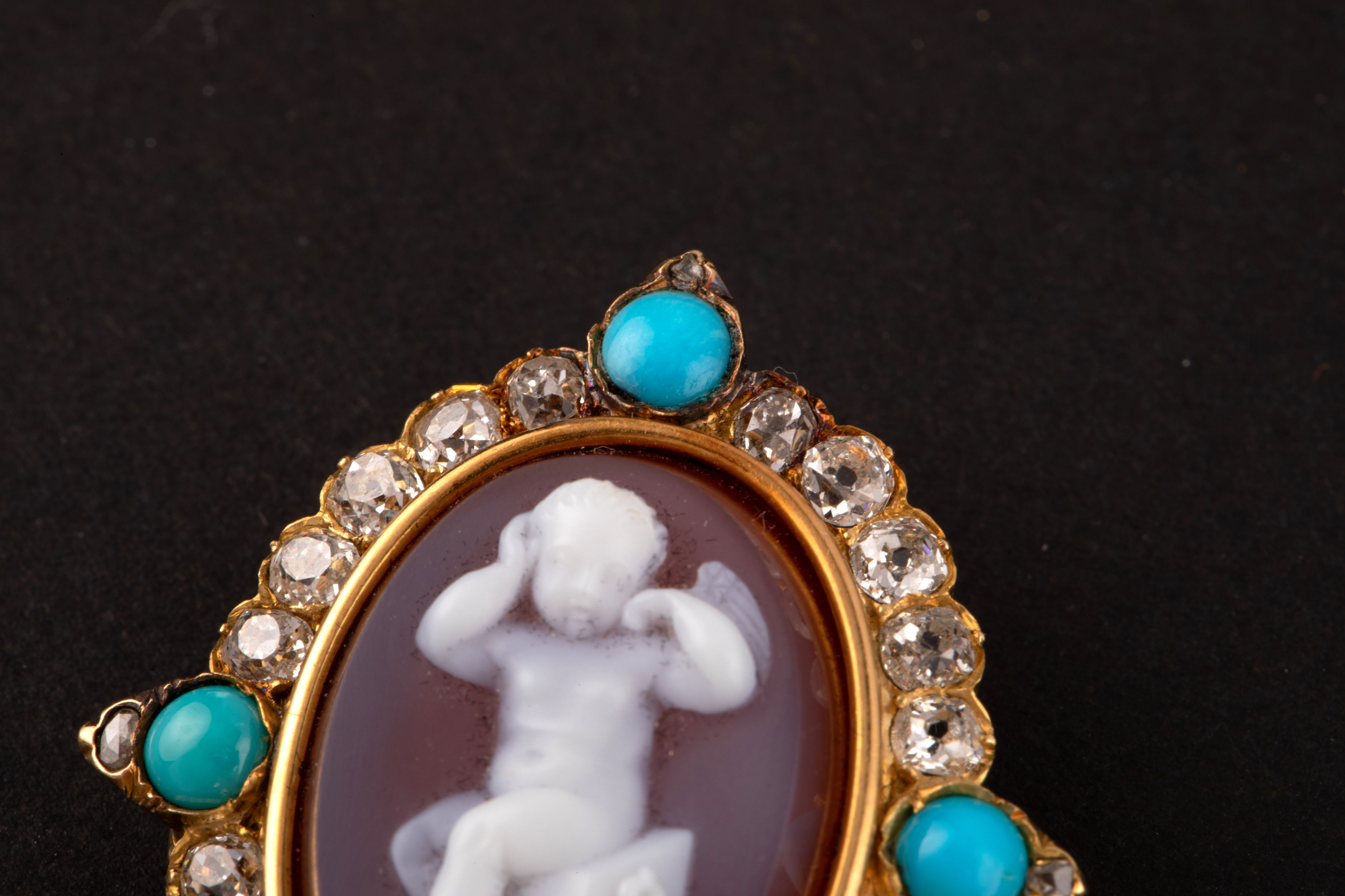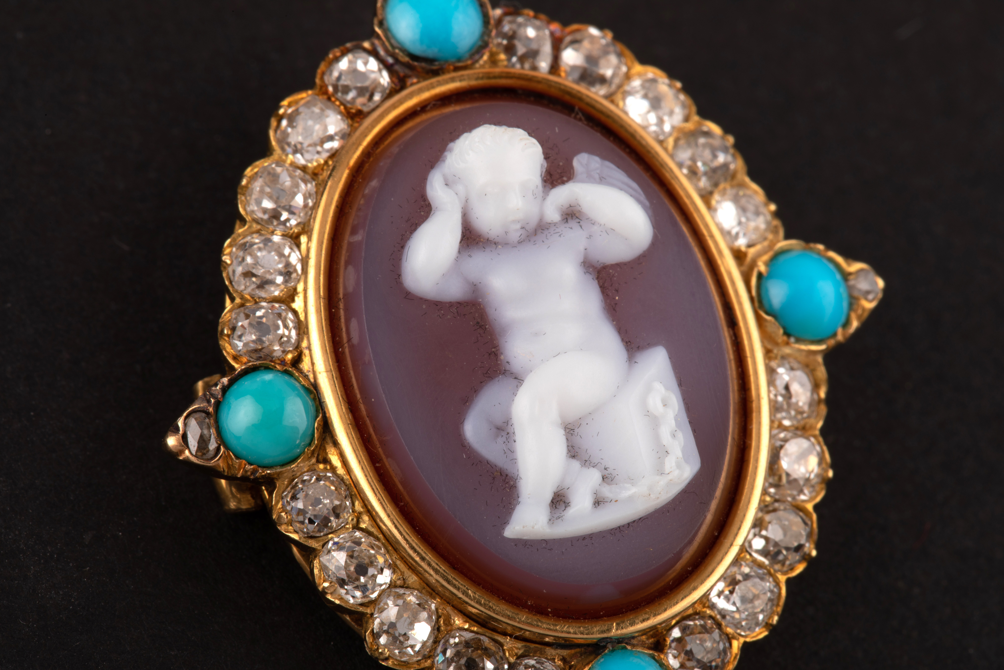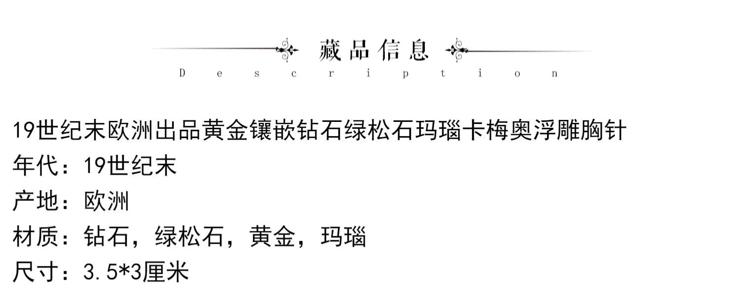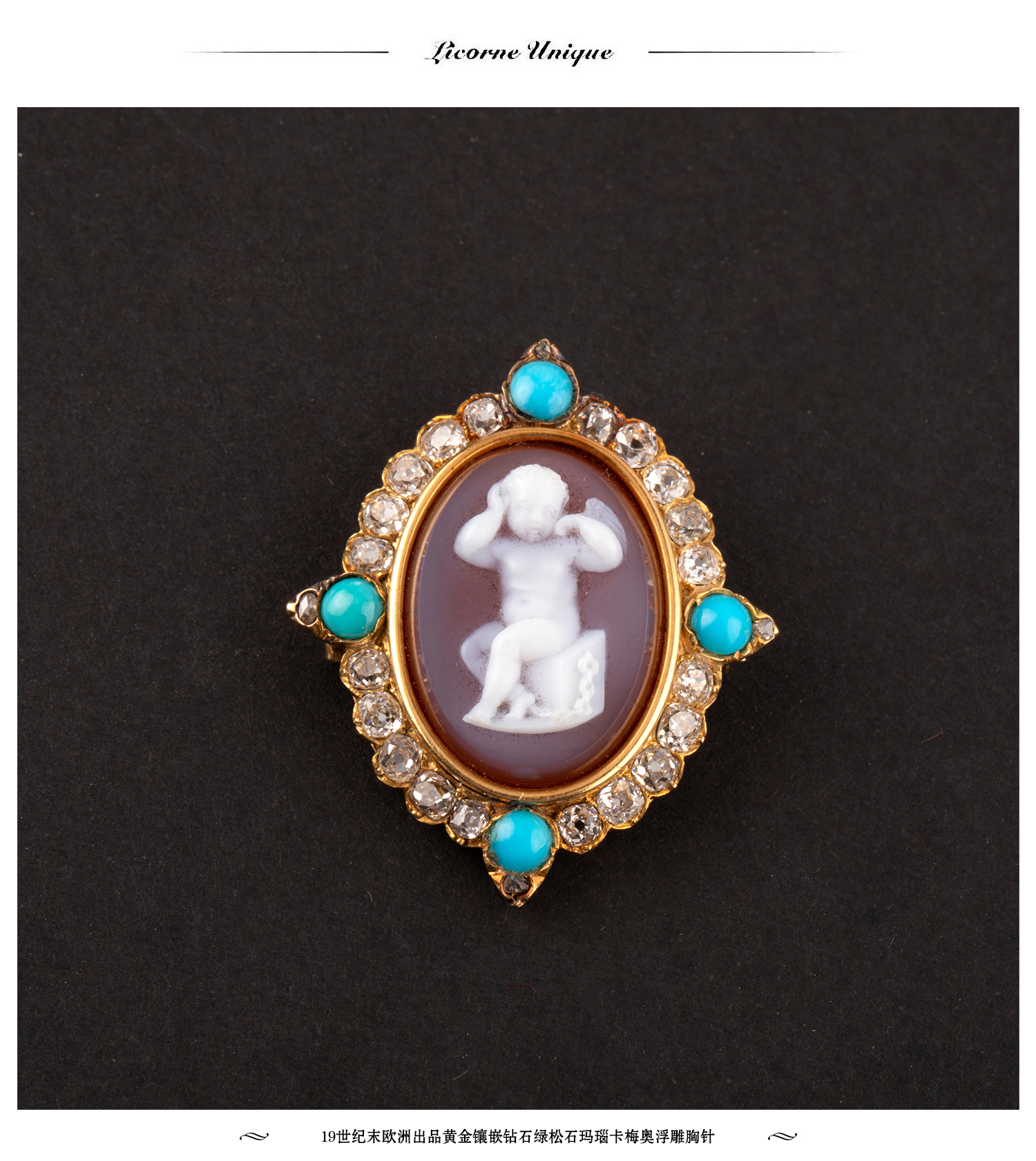 独角鹿西洋古董珠宝首饰黄金镶嵌钻石绿松石玛瑙卡梅奥浮雕胸针