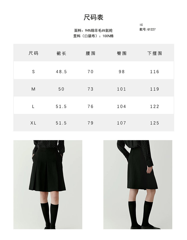 【高品质私服】【IC防缩毛条弹力斜纹花呢半身裙】手感丰厚有弹性,呢面温暖柔软,舒适有型G1227-CC【无标出货 介意慎拍】