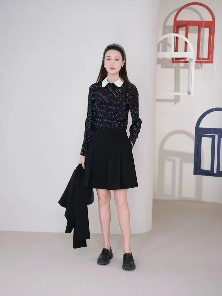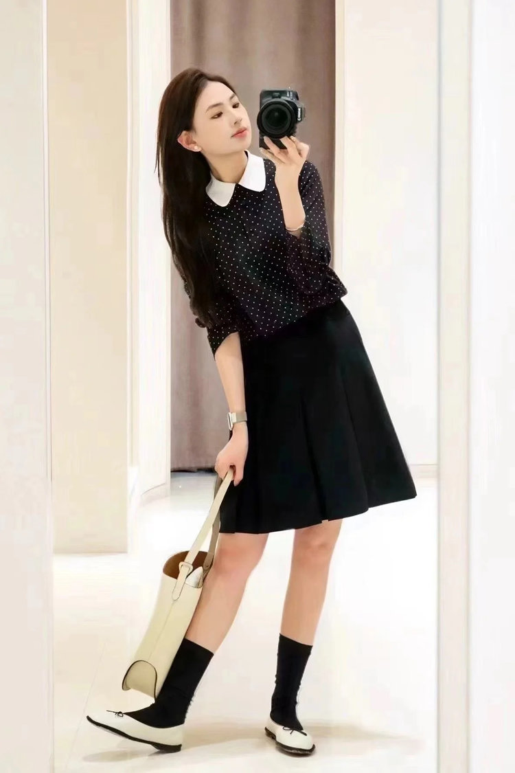搭配法式波点衬衫