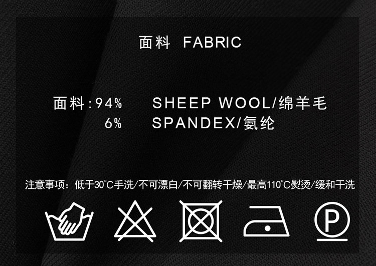 采用防缩毛条,布面光泽自然柔和