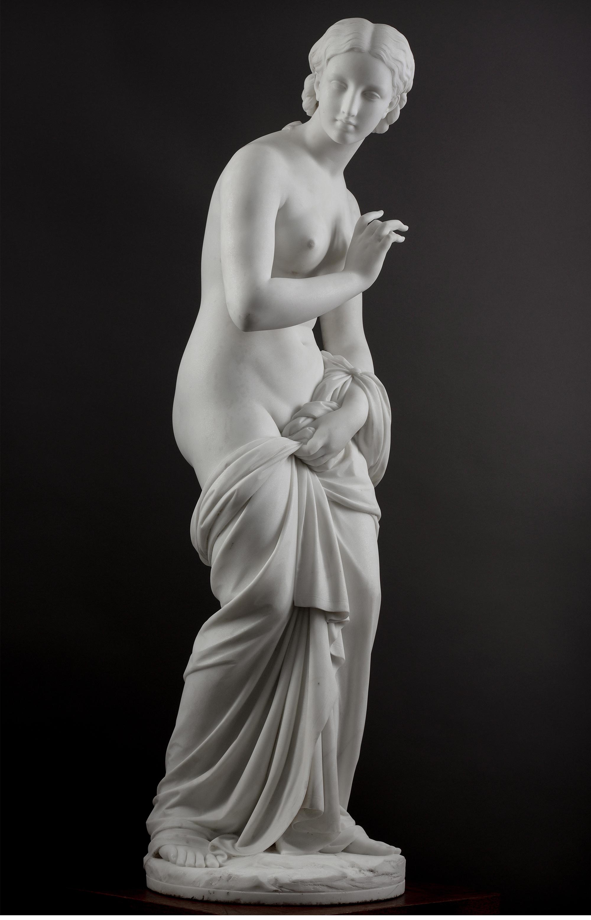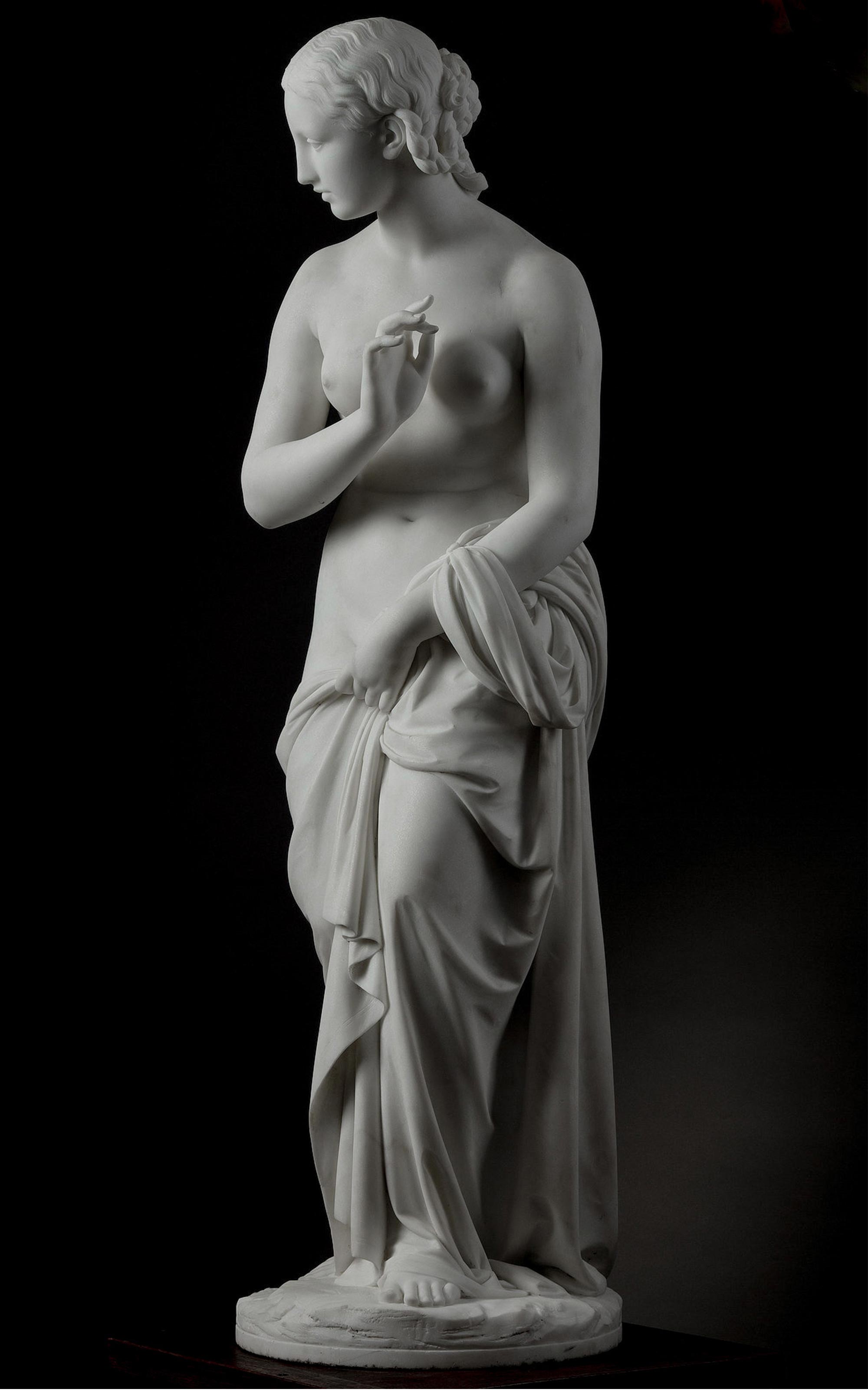 1860年代意大利雕塑名家Odoardo FANTACCHIOTTI签名创作卡拉拉大理石雕塑作品《Musidora 穆西多拉》