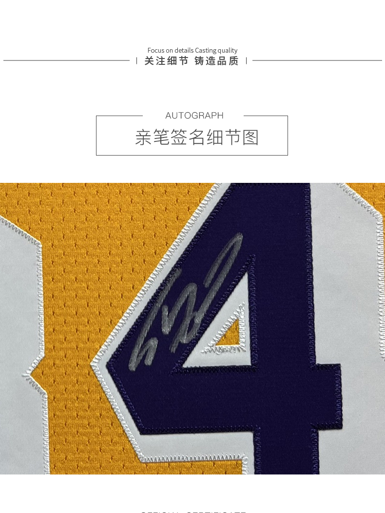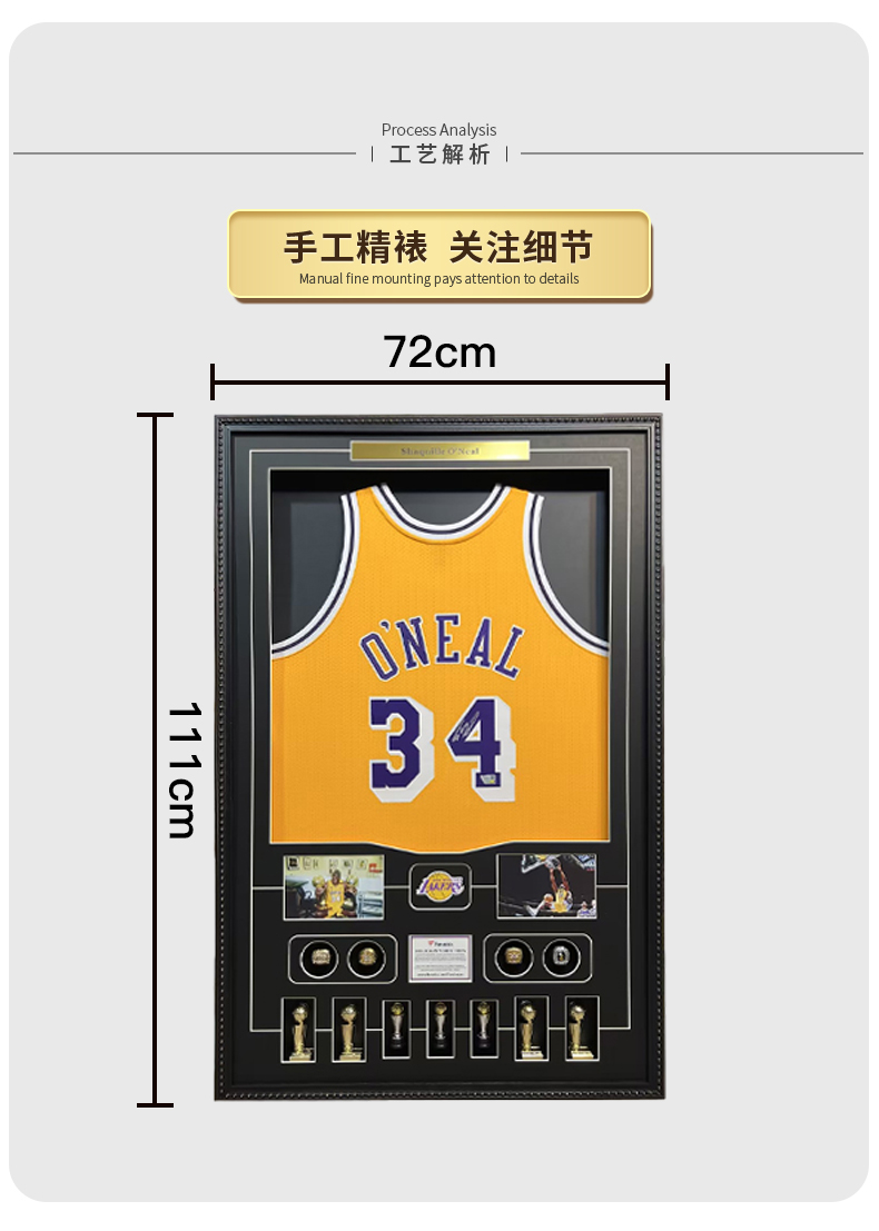 收藏系列 奥尼尔 湖人队34号复古黄色 亲笔签名球衣