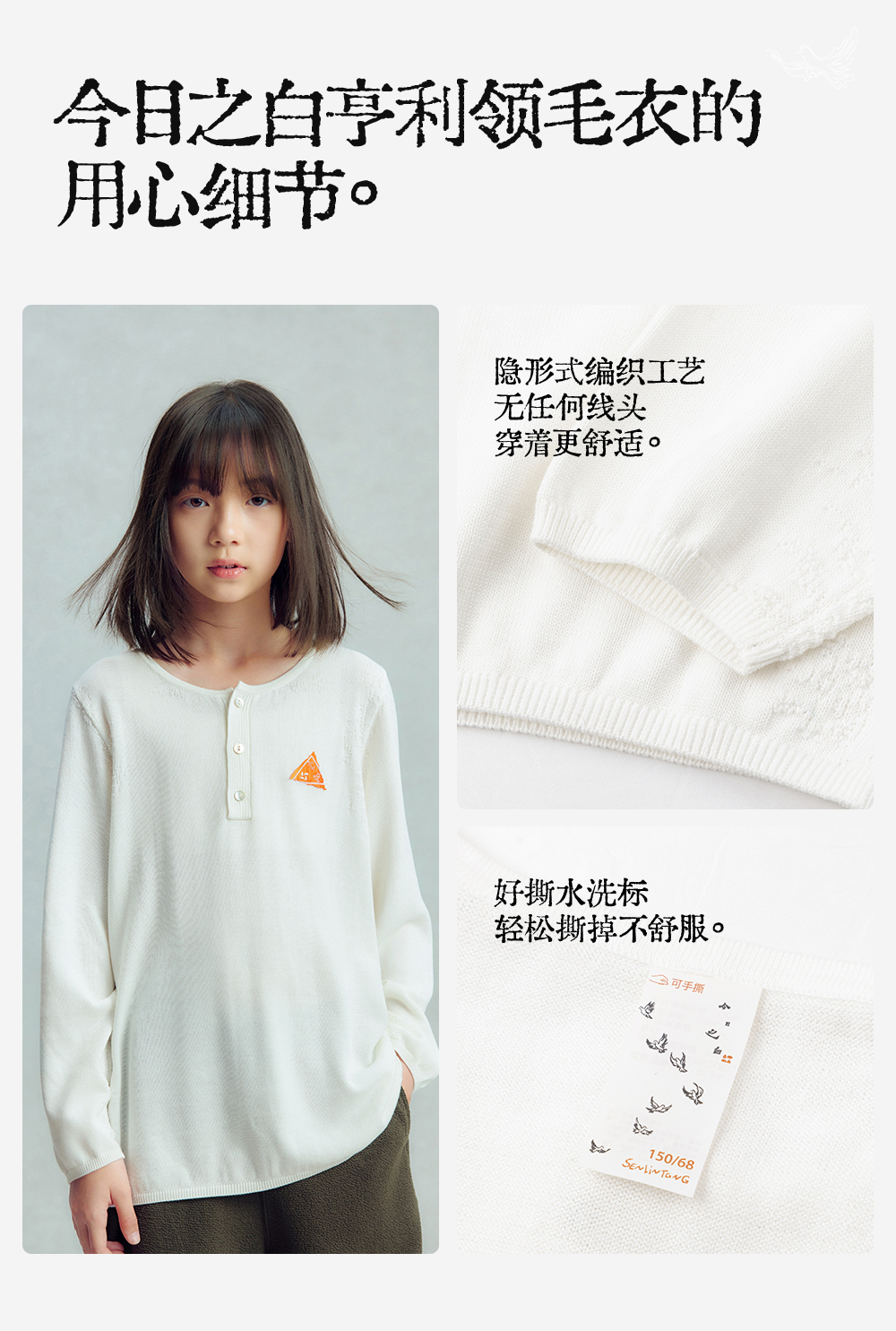【今日之白系列】森林棠26新款秋冬儿童亨利领棉柔亲肤可机洗保暖毛衣60225309【HZ】