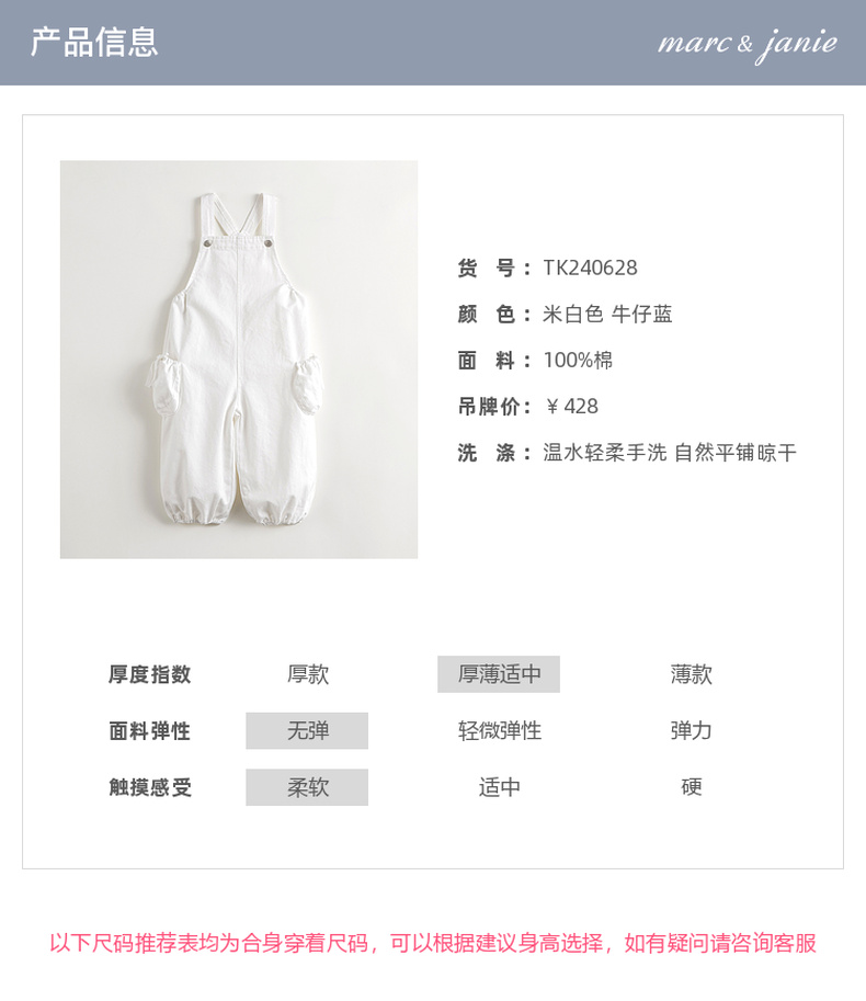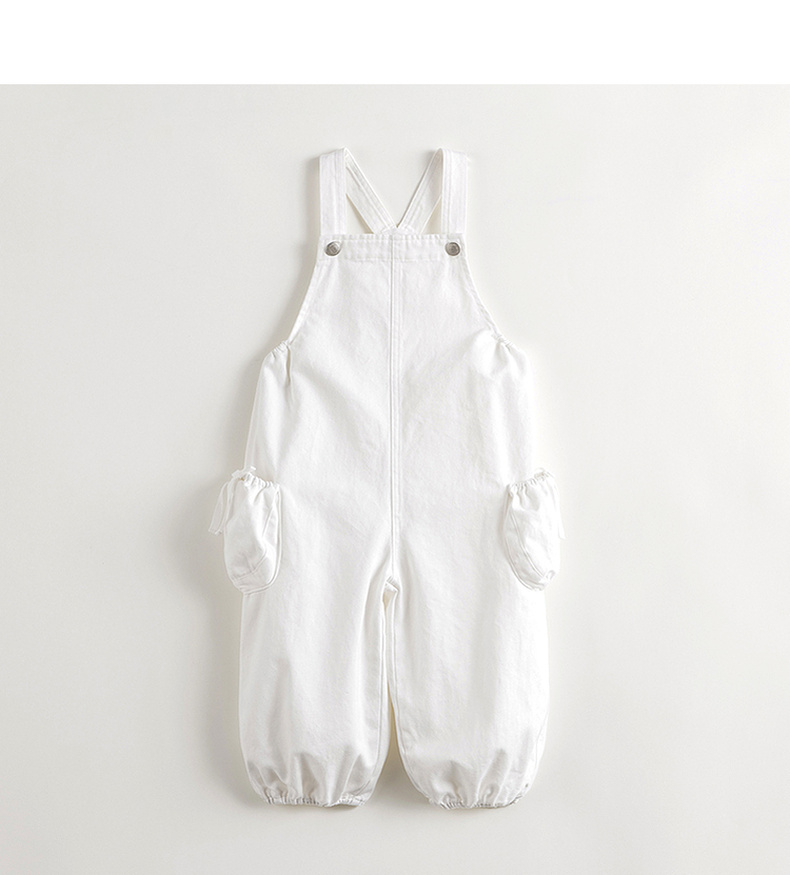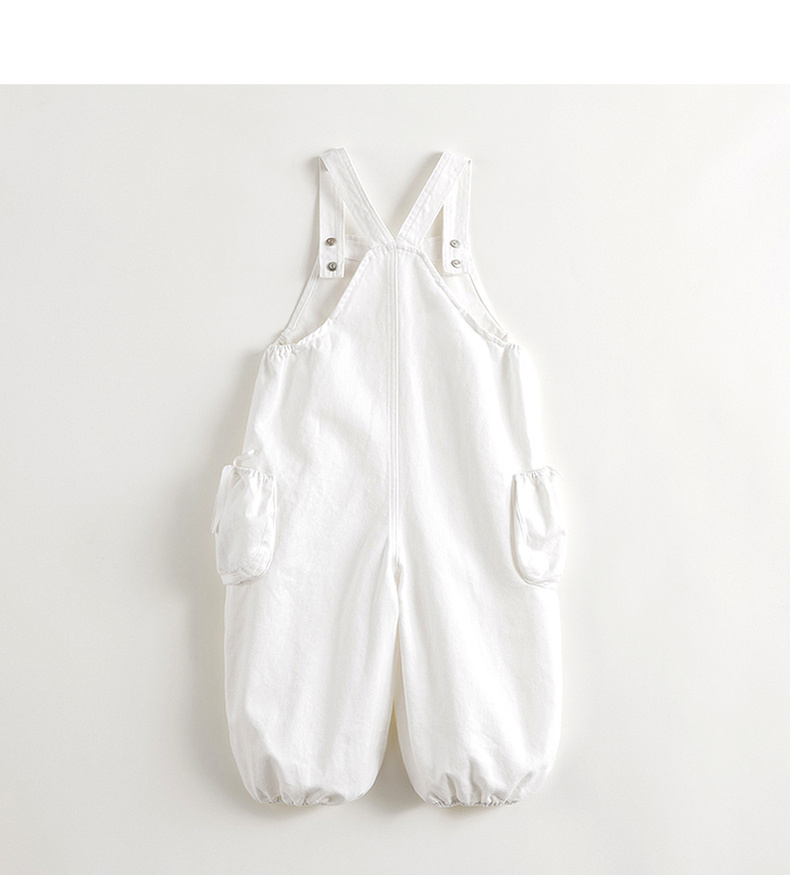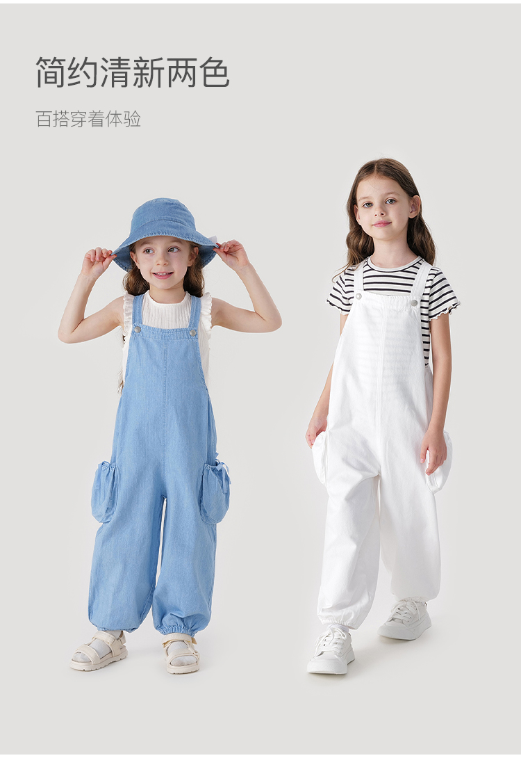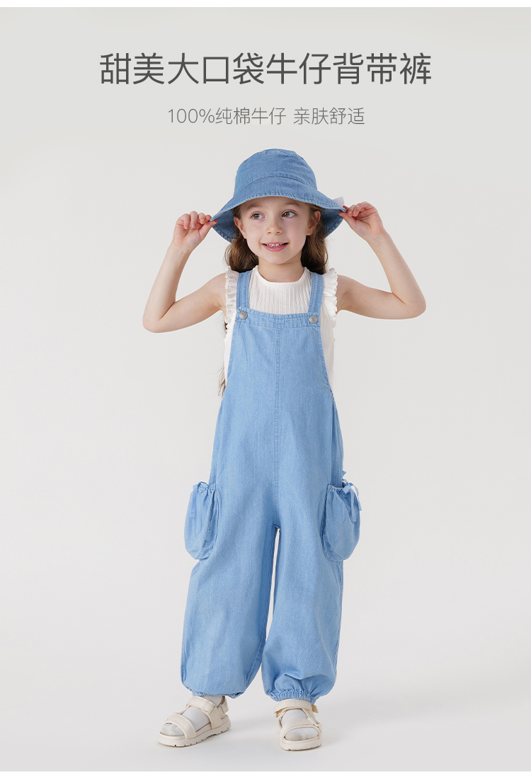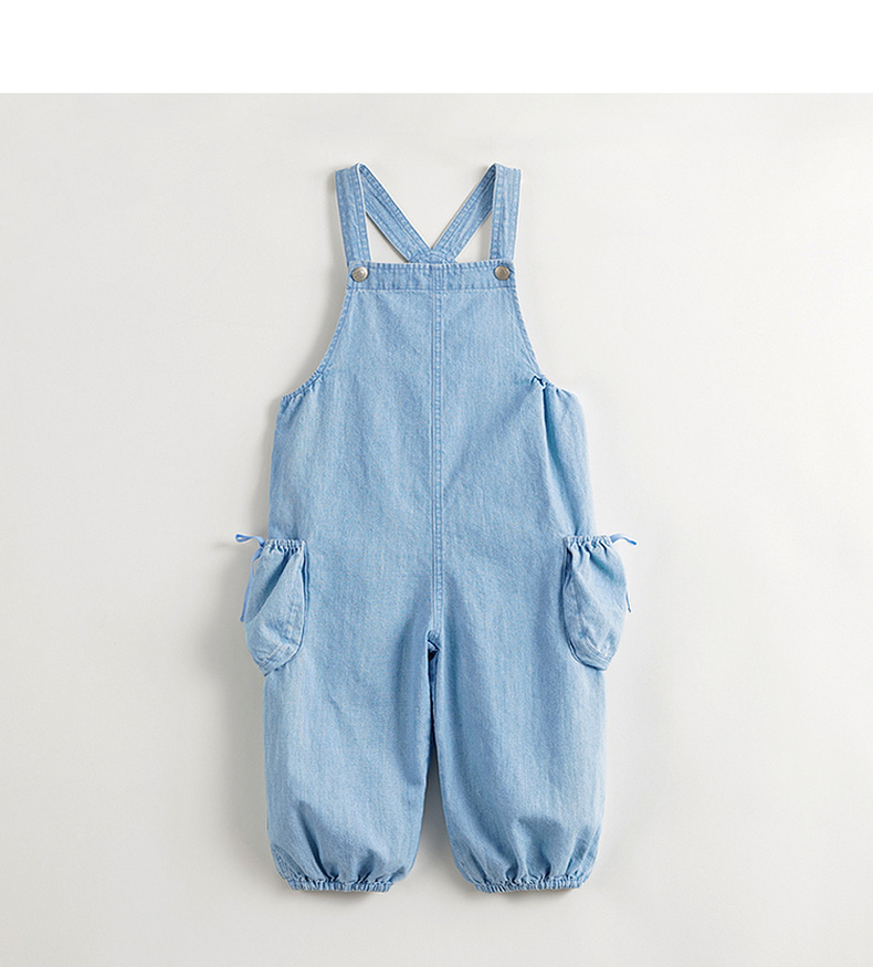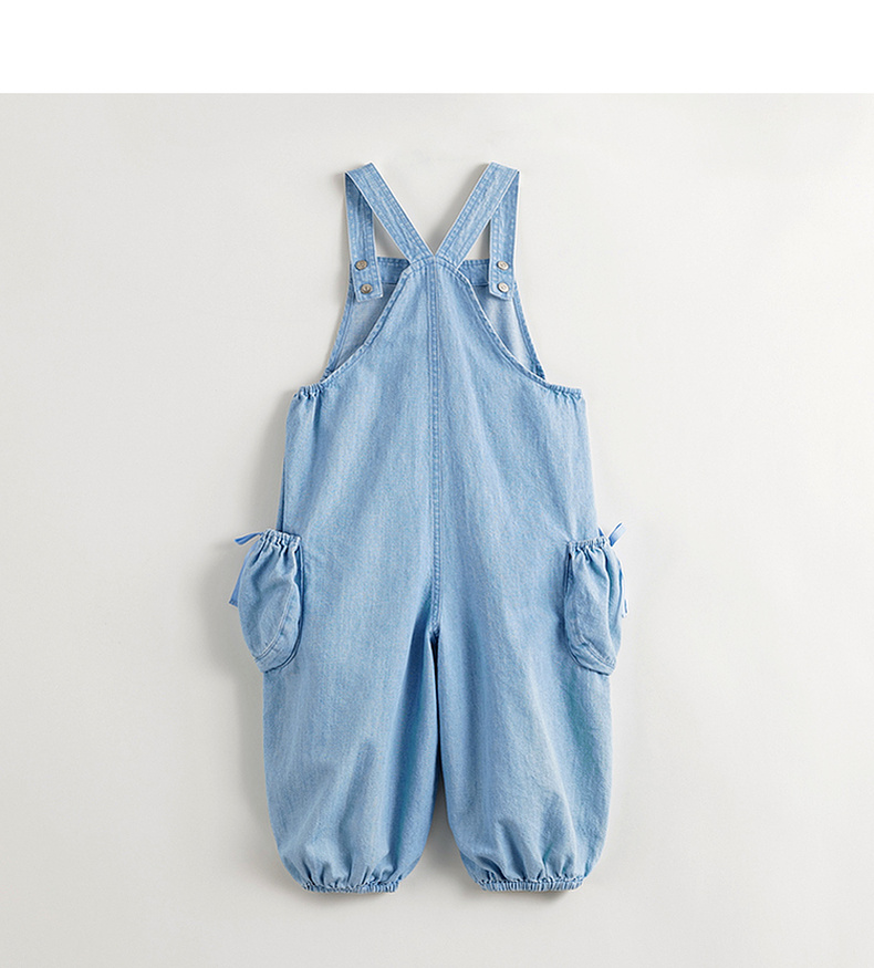 马克珍妮女童蝴蝶结大口袋牛仔背带裤儿童纯棉裤子春夏新款240628