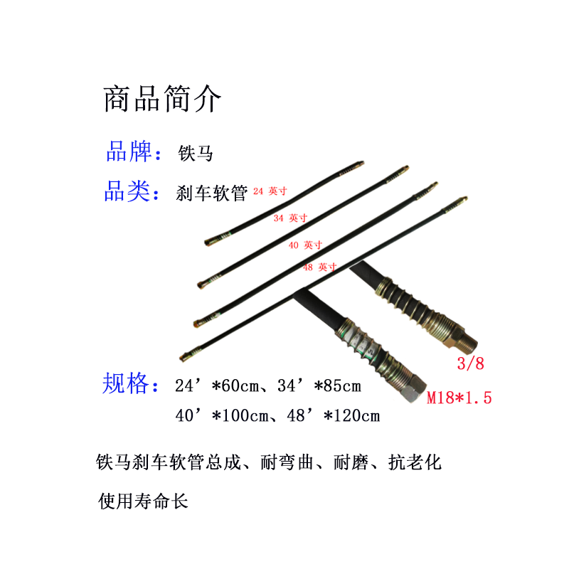 刹车软管橡胶制动管3/8接头 M18螺帽24'34'40'48'铁马 (包邮)