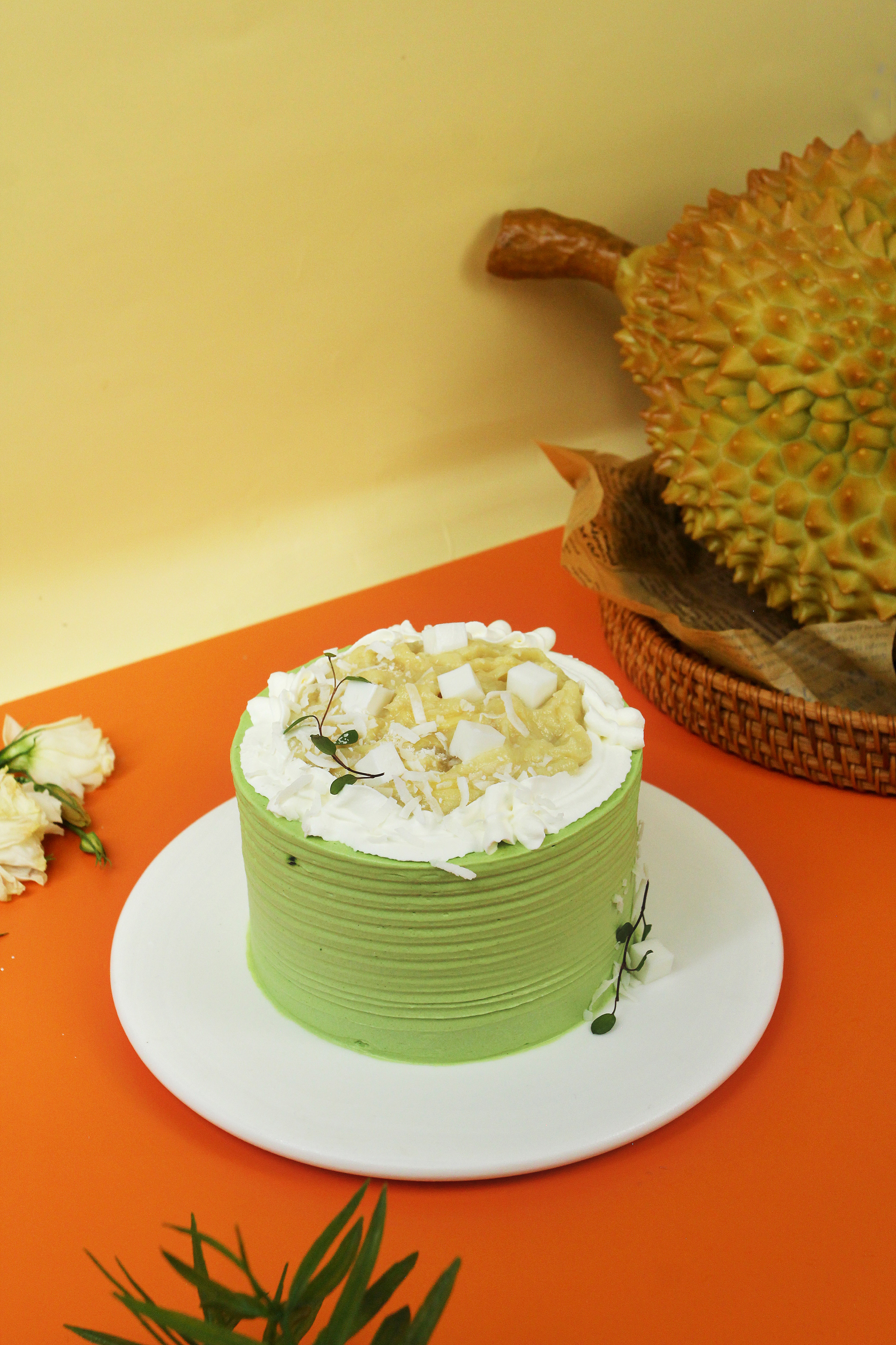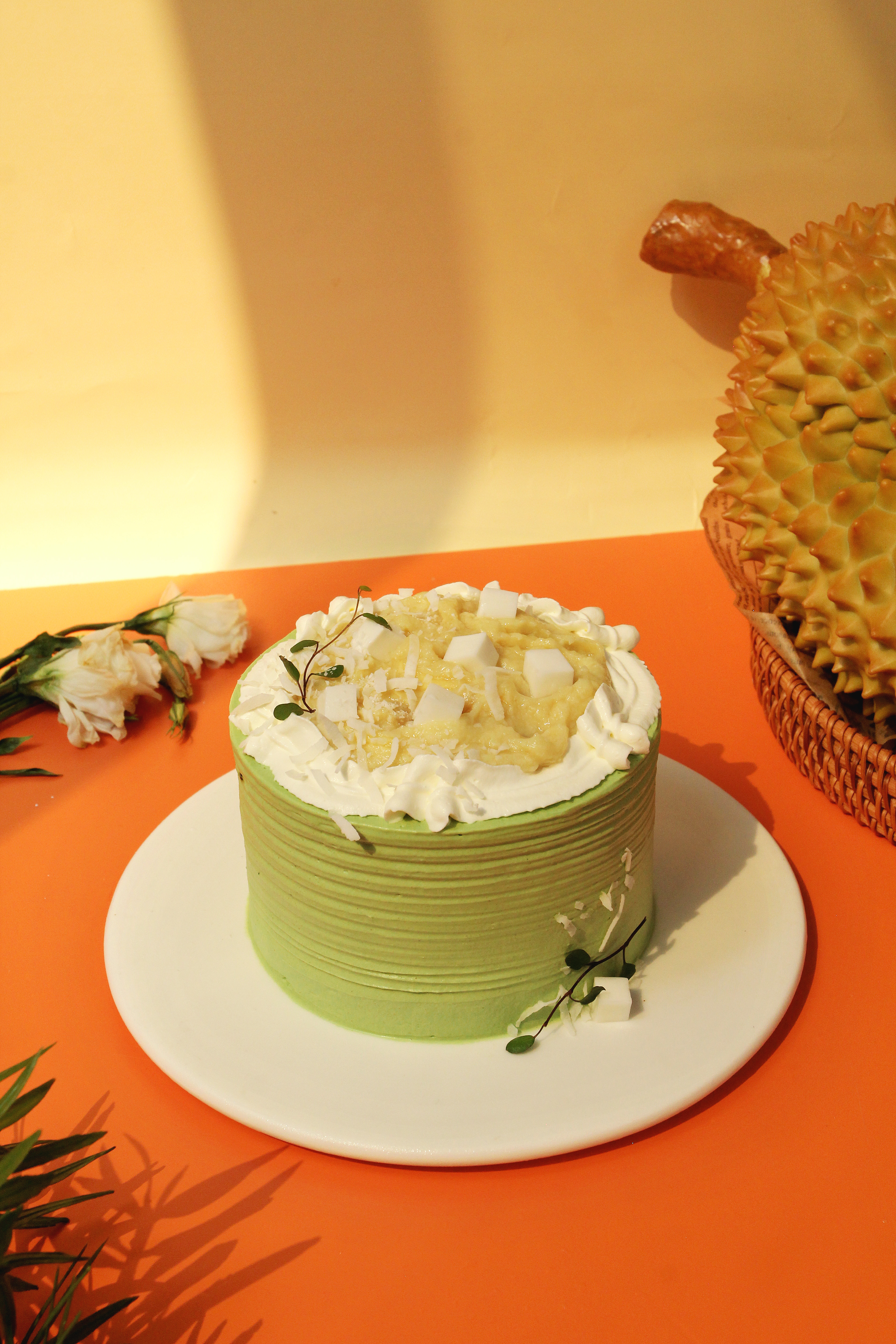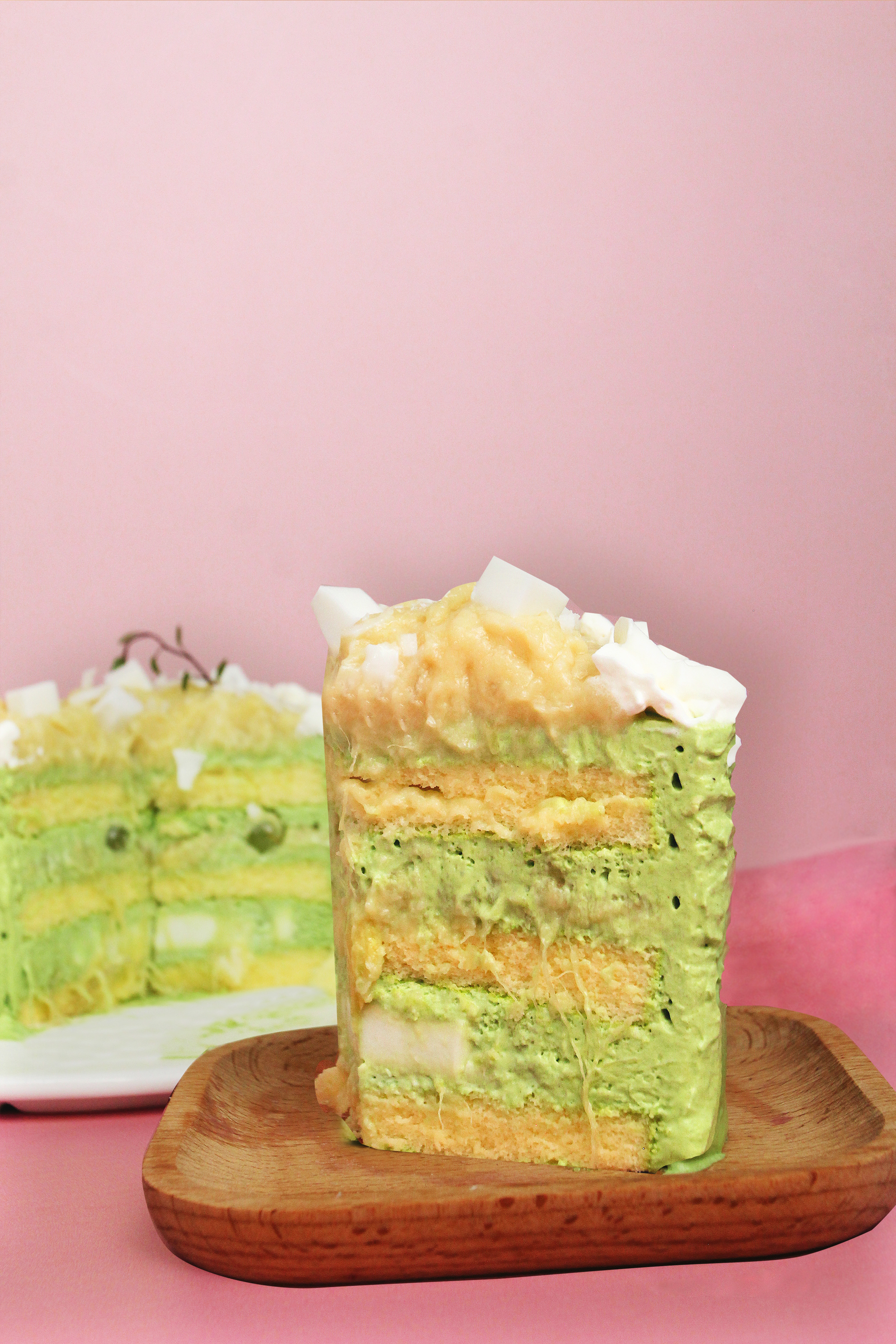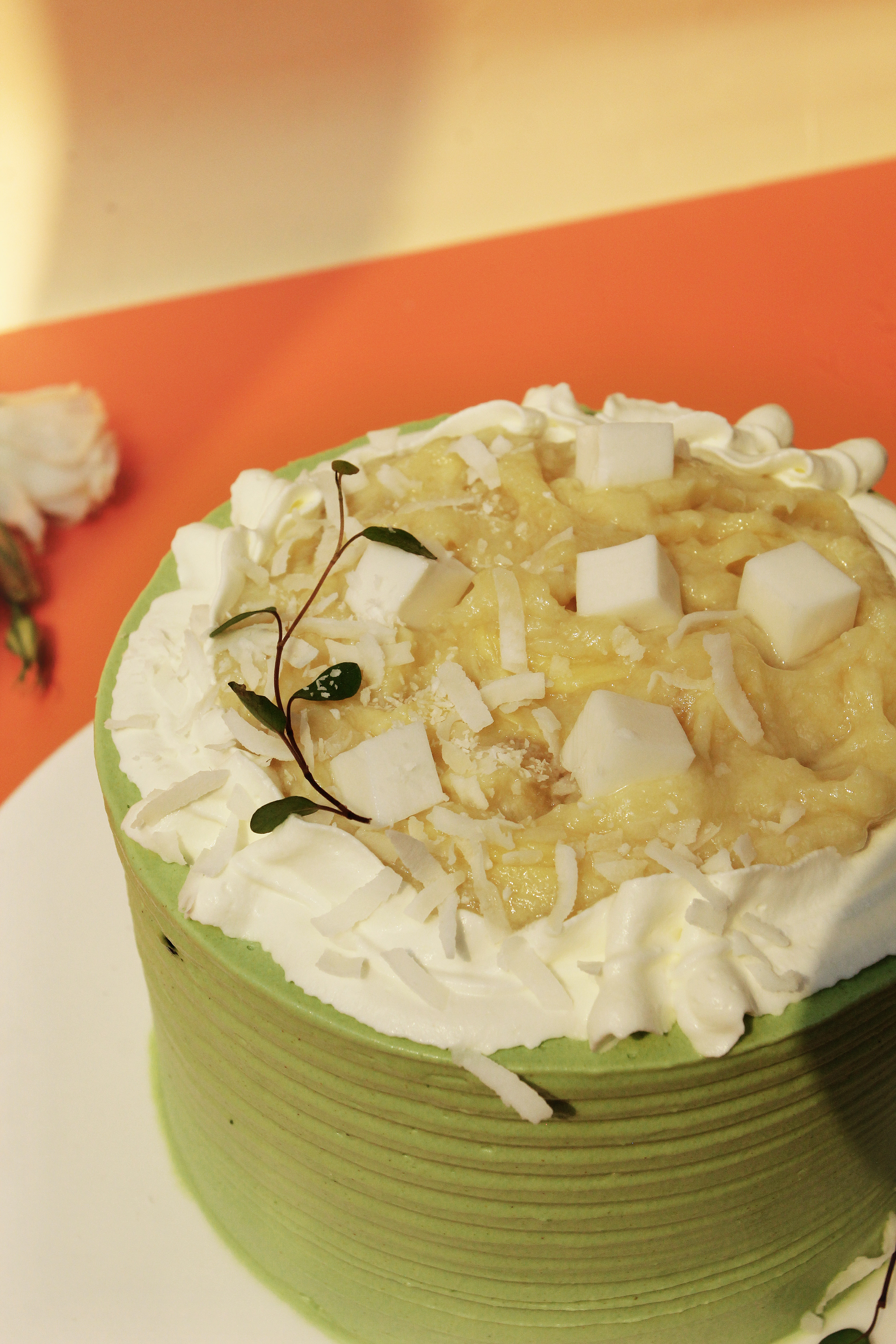 榴莲果肉+开心果铁塔动物淡奶油,中间的椰奶冻低甜嫩滑, 浓香四溢、入口即化