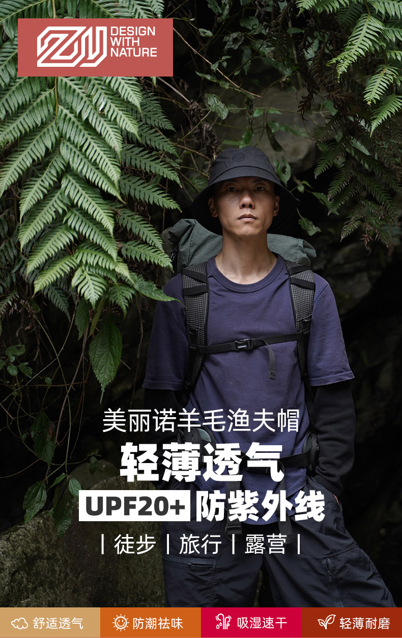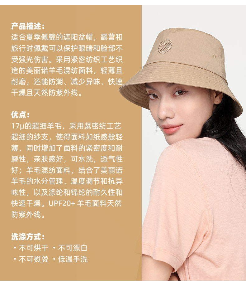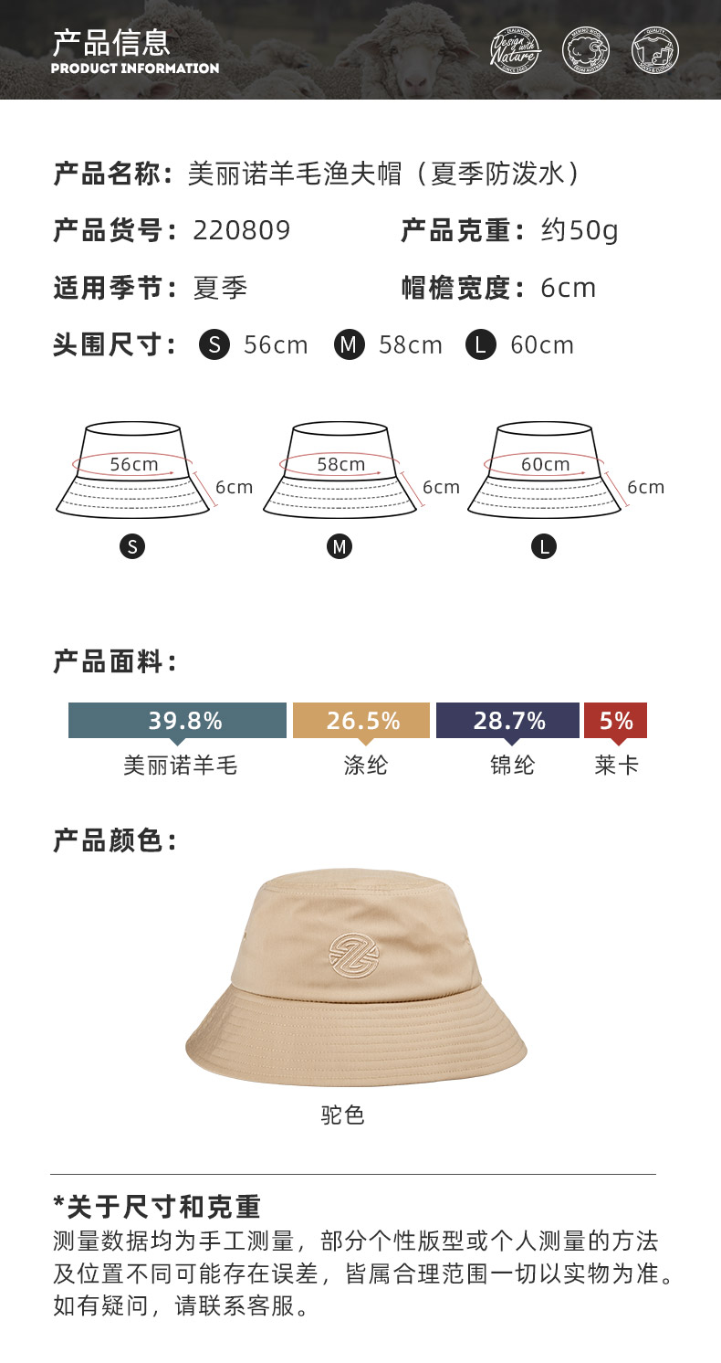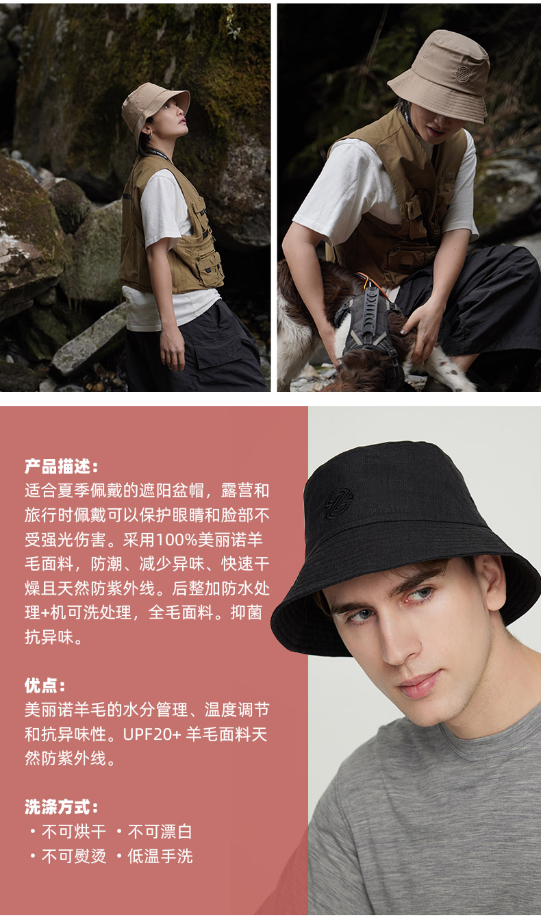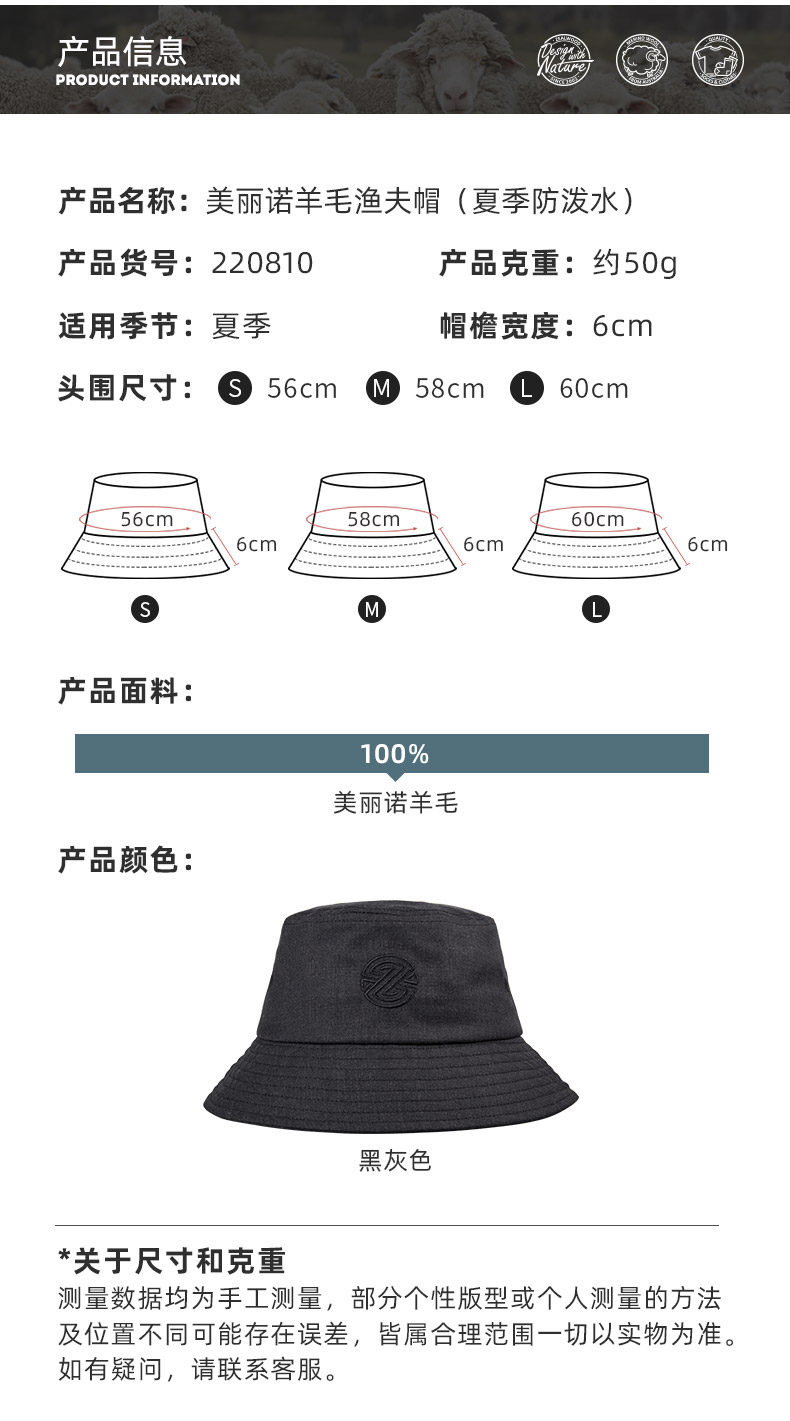 赛乐ZEALWOOD美丽诺羊毛渔夫帽男女款夏季薄款百搭透气遮阳帽防晒帽防紫外线