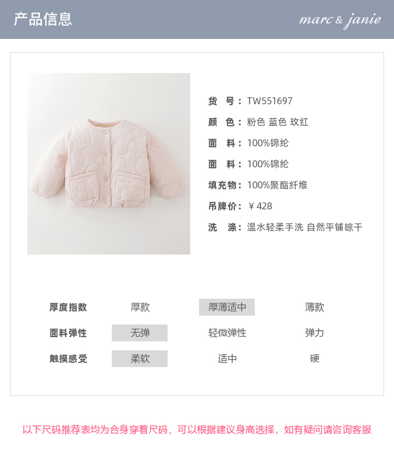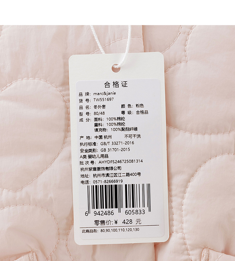 马克珍妮女童爱心绗棉保暖外套2025年秋冬新款551697