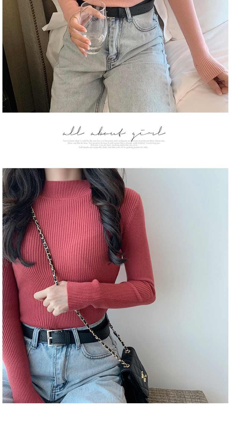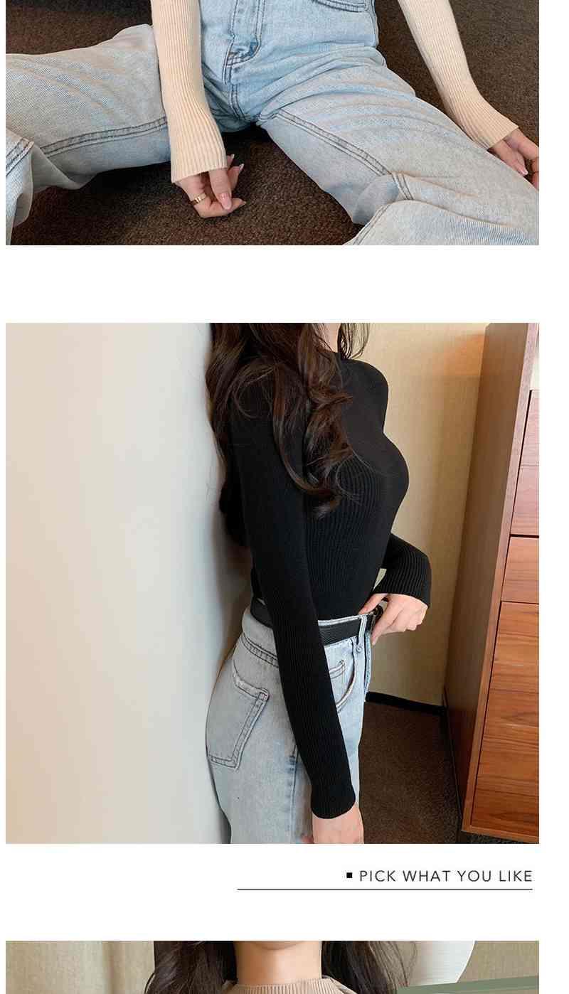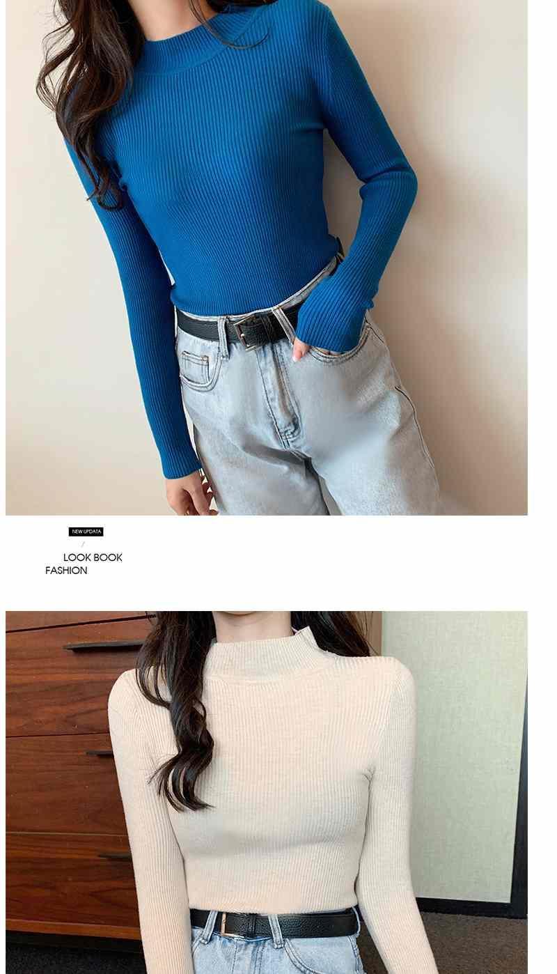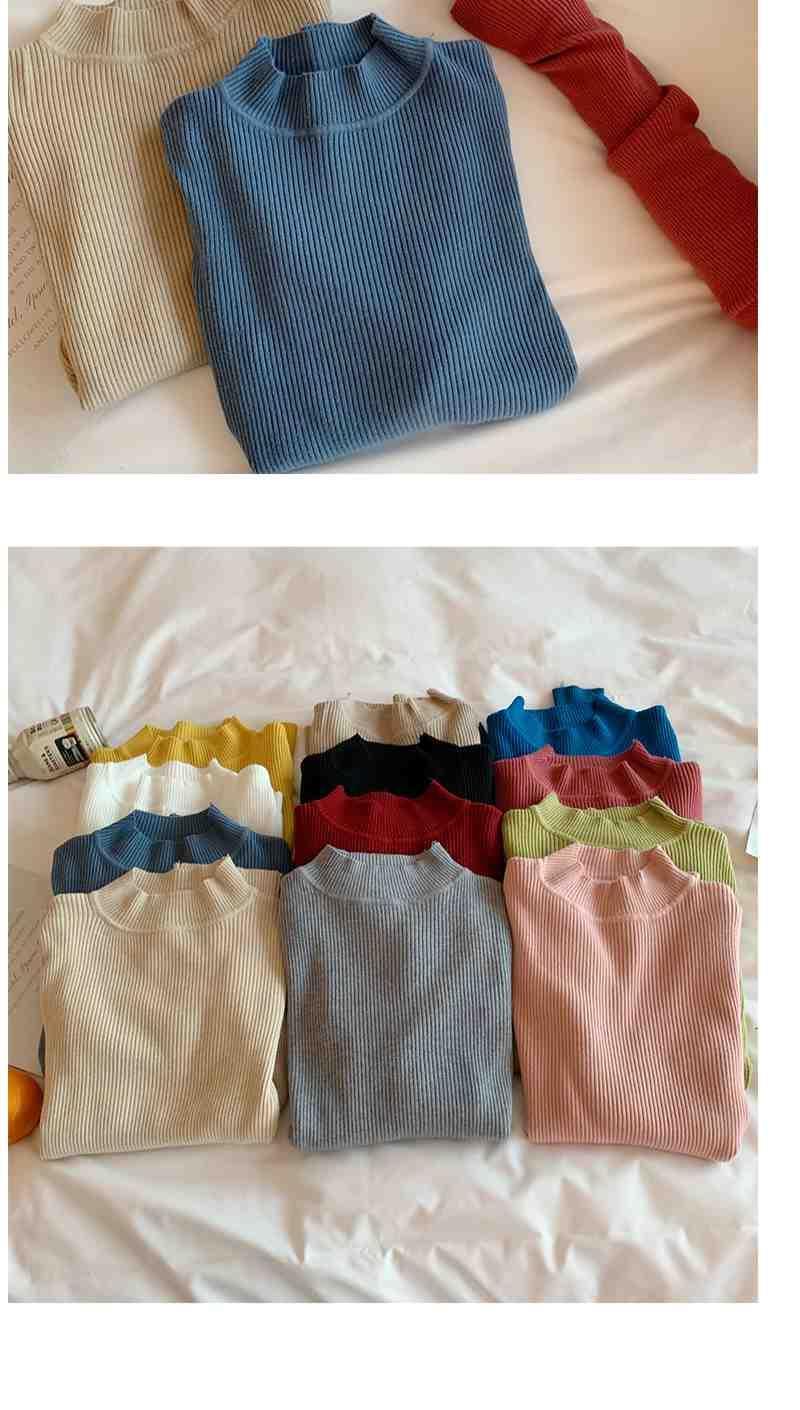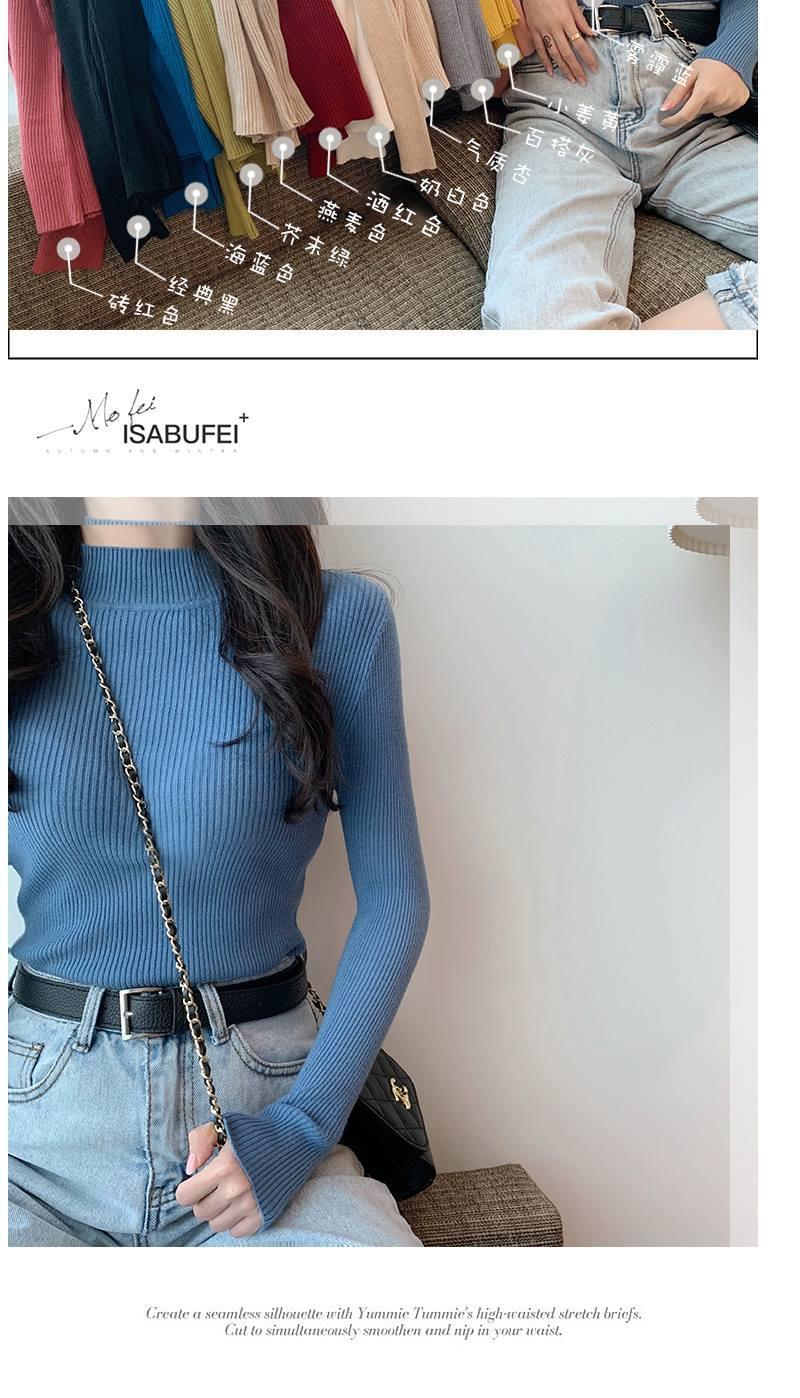 买一送一!秋冬新款长袖套头百搭纯色韩版半高领学生修身针织打底衫上衣女装