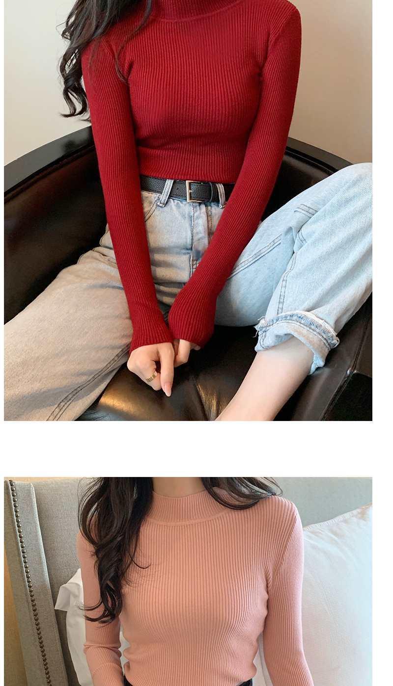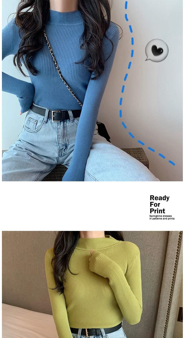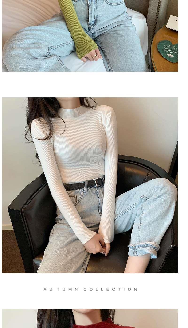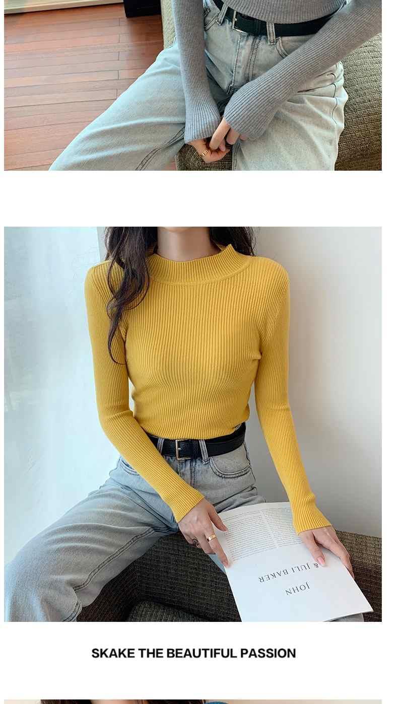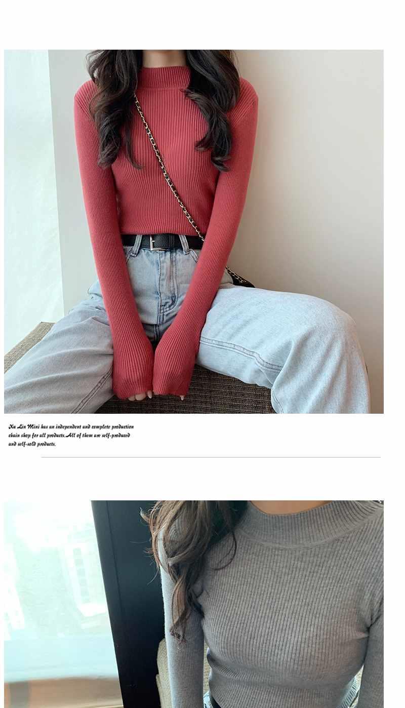 买一送一!秋冬新款长袖套头百搭纯色韩版半高领学生修身针织打底衫上衣女装